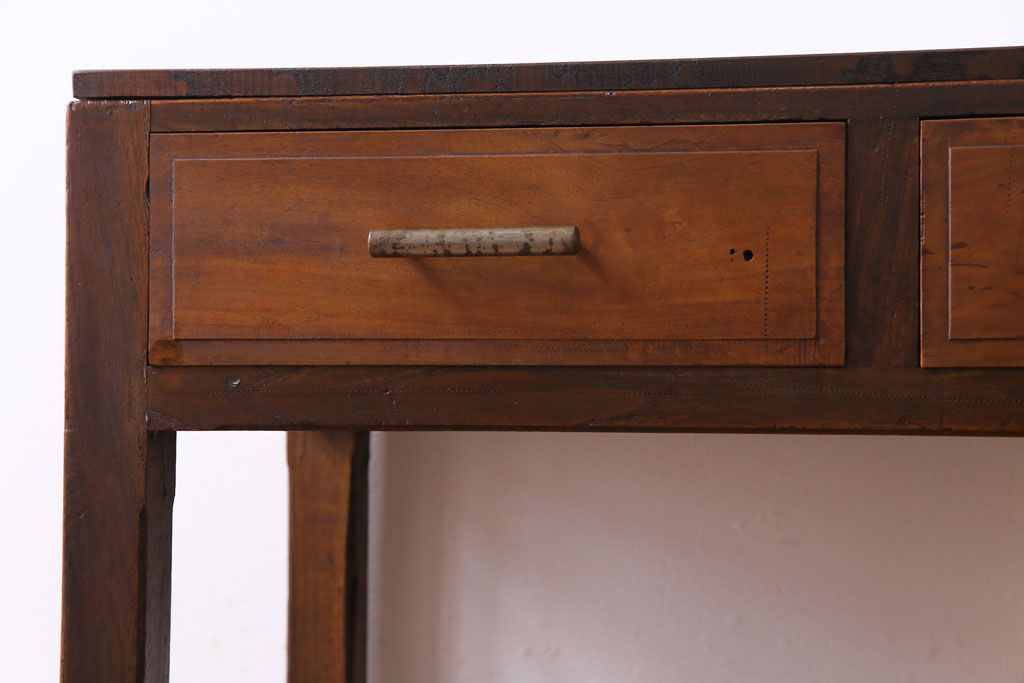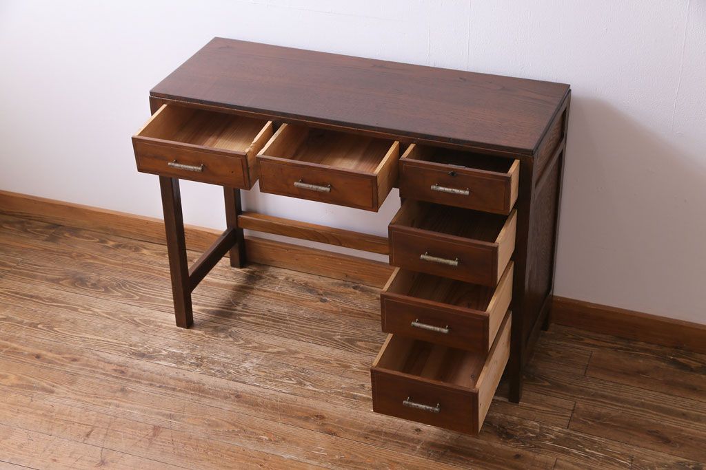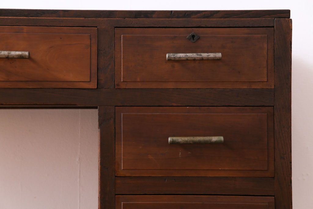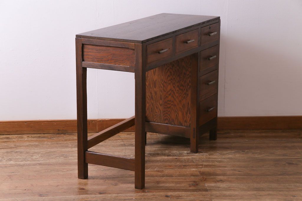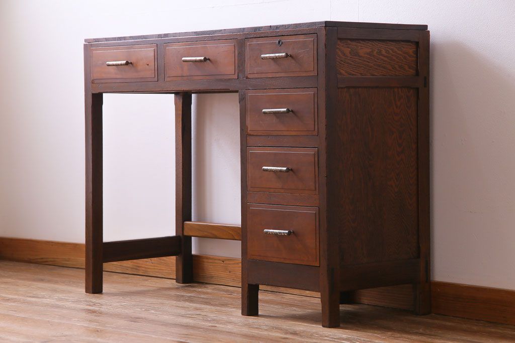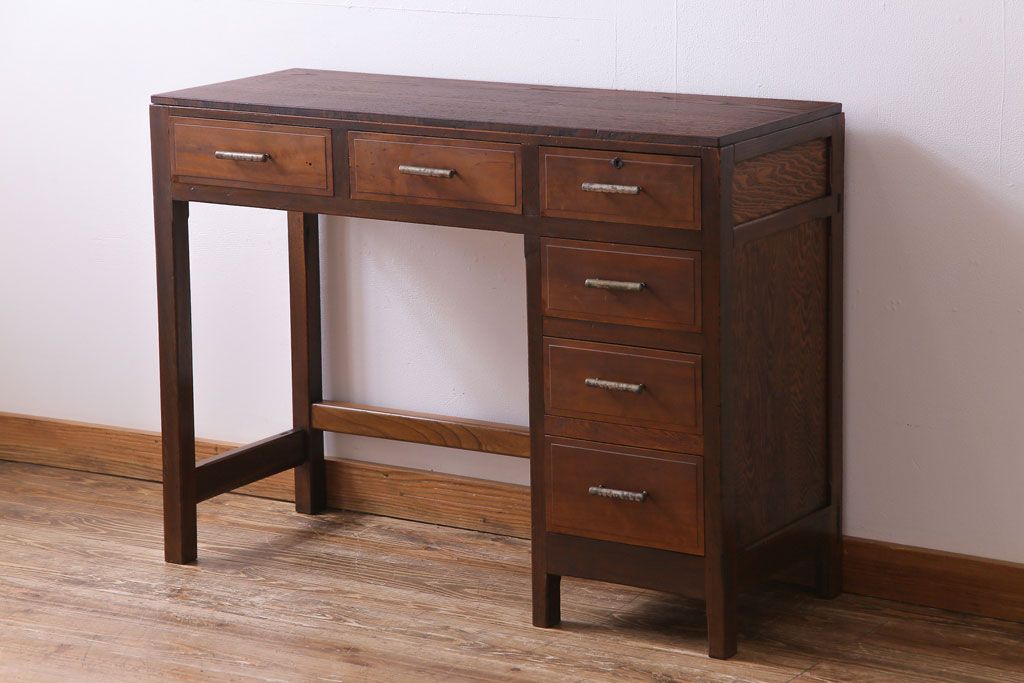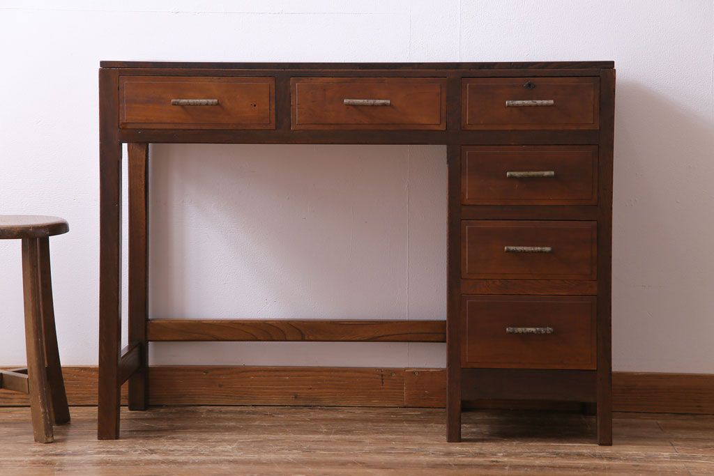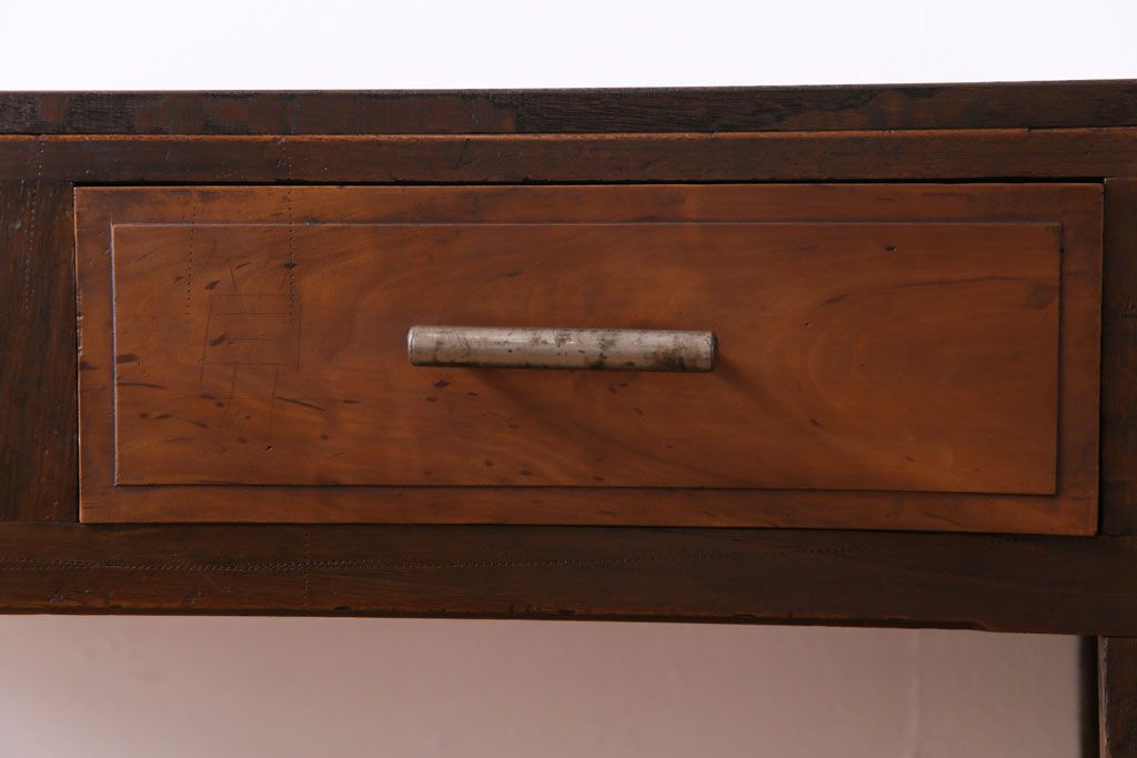 レトロ家具 昭和レトロ 栗・樺材 味わいのある趣が魅力の薄型ワークデスク(片袖机、在宅ワーク、在宅用)
