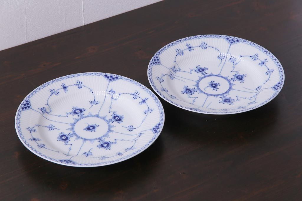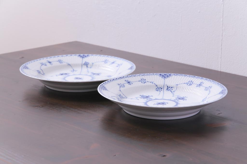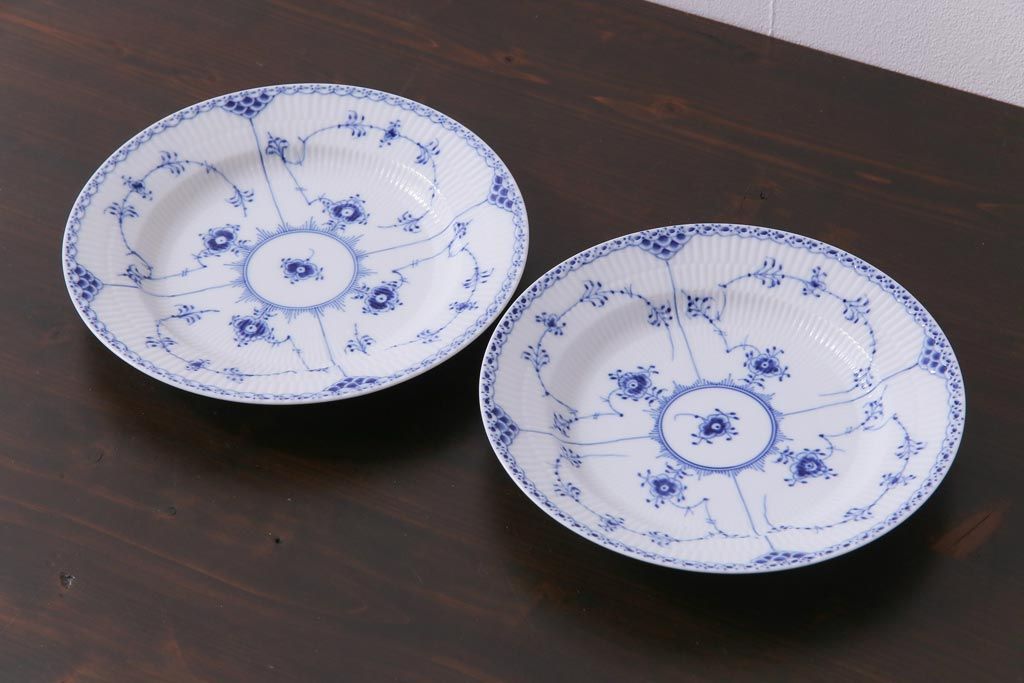 中古 ROYAL COPENHAGEN(ロイヤルコペンハーゲン) ブルーフルーテッド ハーフレース プレート2枚セット(皿、洋食器)(定価約4万3千円)