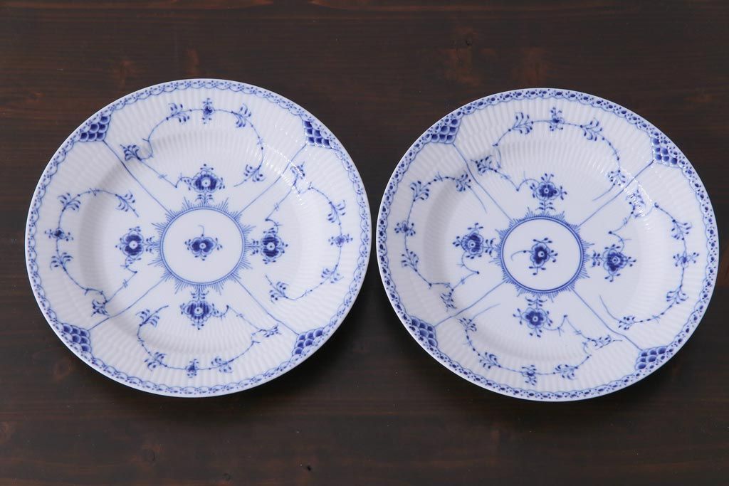 ラフジュ工房> 洋食器・キッチン用品> 皿・プレート > 中古 ROYAL COPENHAGEN(ロイヤルコペンハーゲン) ブルーフルーテッド ハーフレース プレート2枚セット(皿、洋食器)(定価約4万3千円)