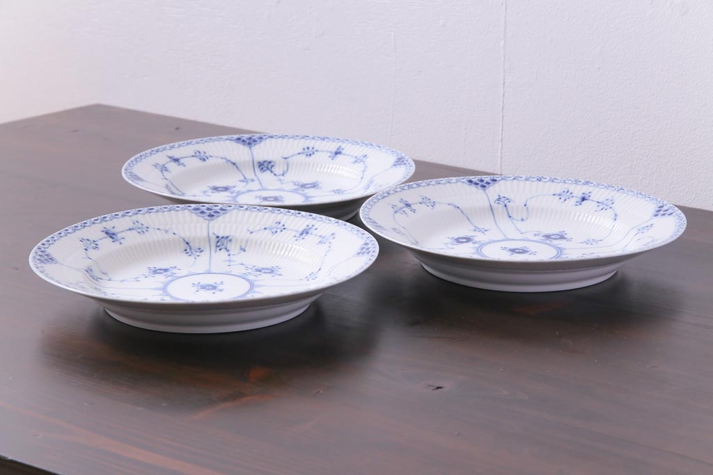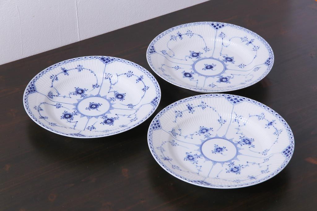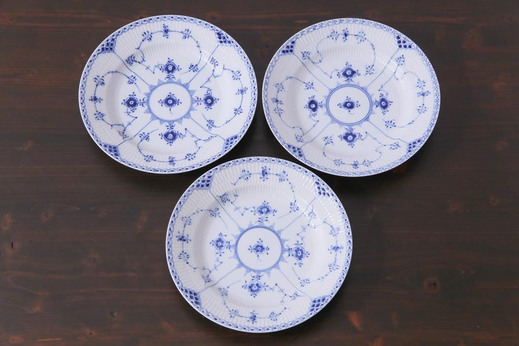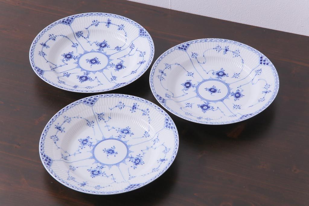 中古 ROYAL COPENHAGEN(ロイヤルコペンハーゲン) ブルーフルーテッド ハーフレース プレート3枚セット(皿、洋食器)(定価約6万5千円)