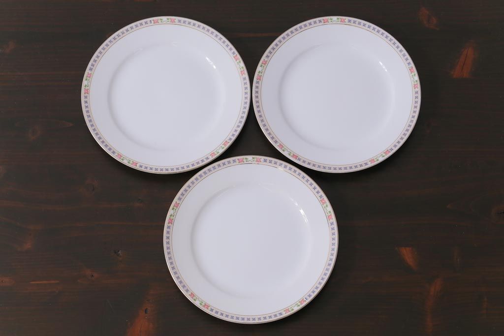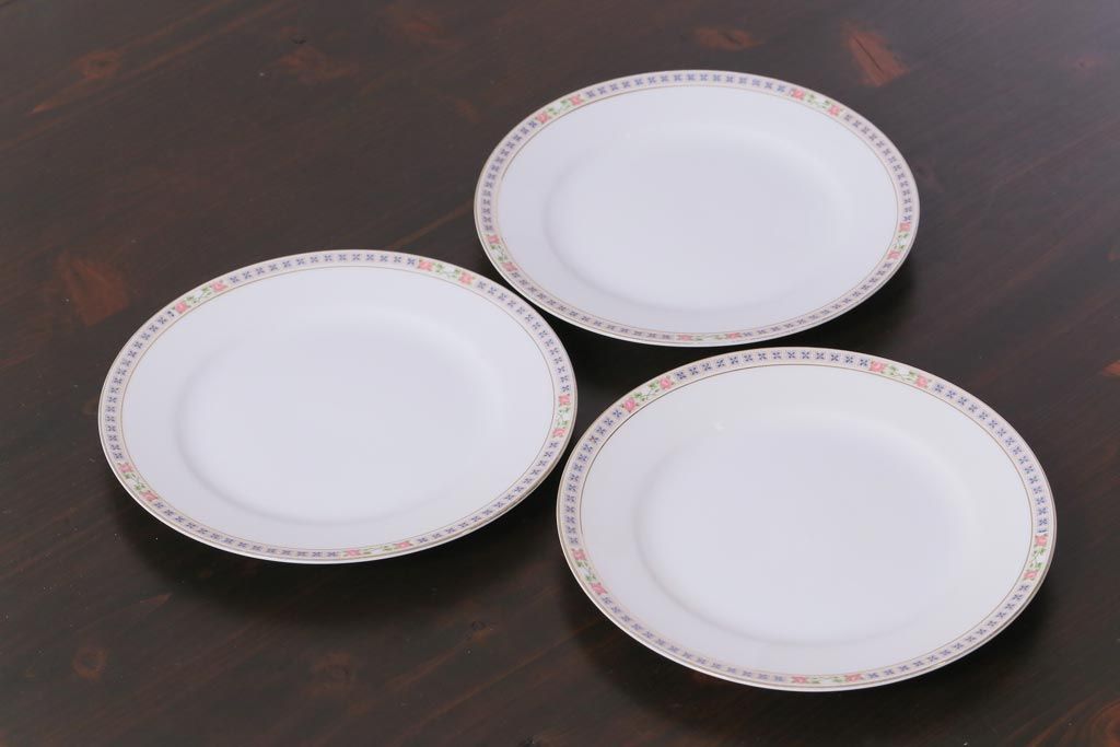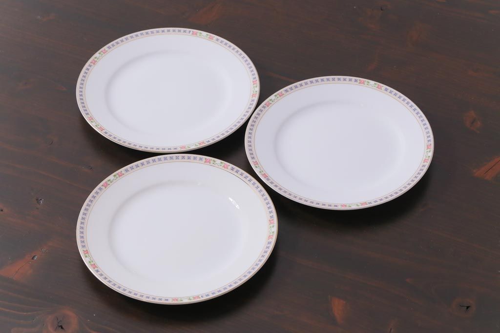 日本陶器 オールドノリタケ(Noritake、則武) 淡い色の小花が愛らしいプレート(皿)3枚セット(1)