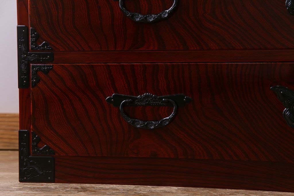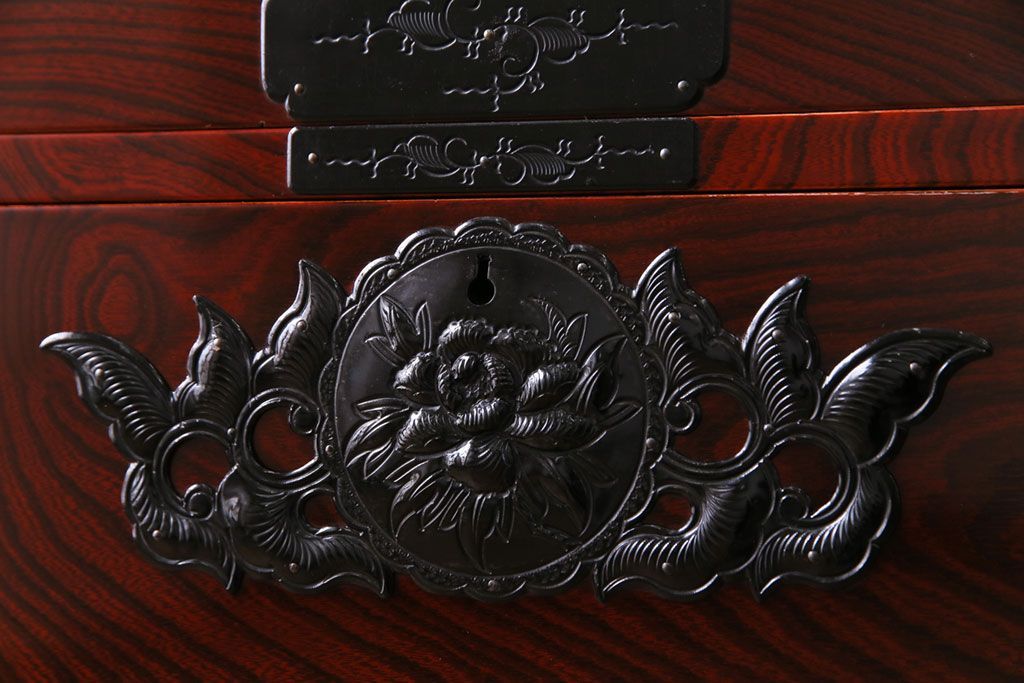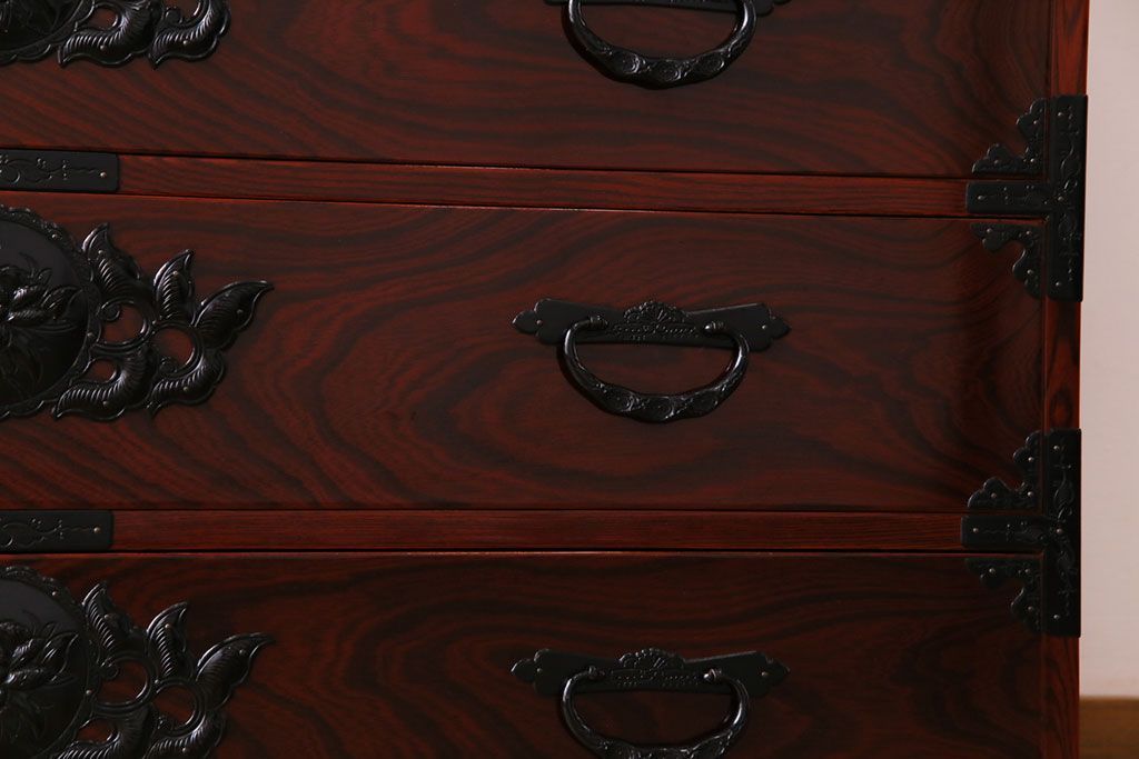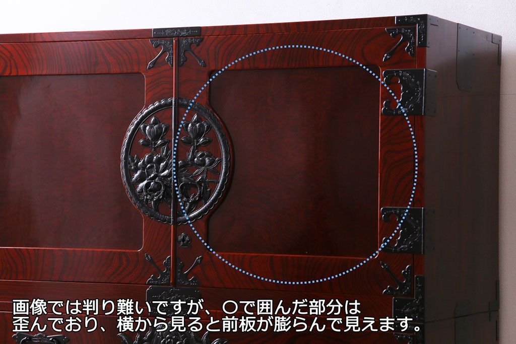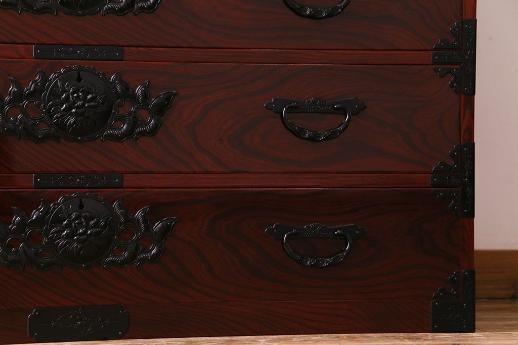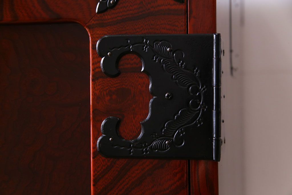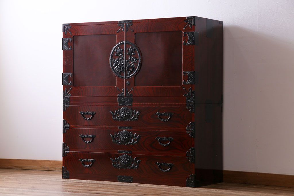 極美品 手打ち金具 厚みのある漆塗りが美しい観音開き戸付き仙台箪笥(衣装箪笥、和タンス)