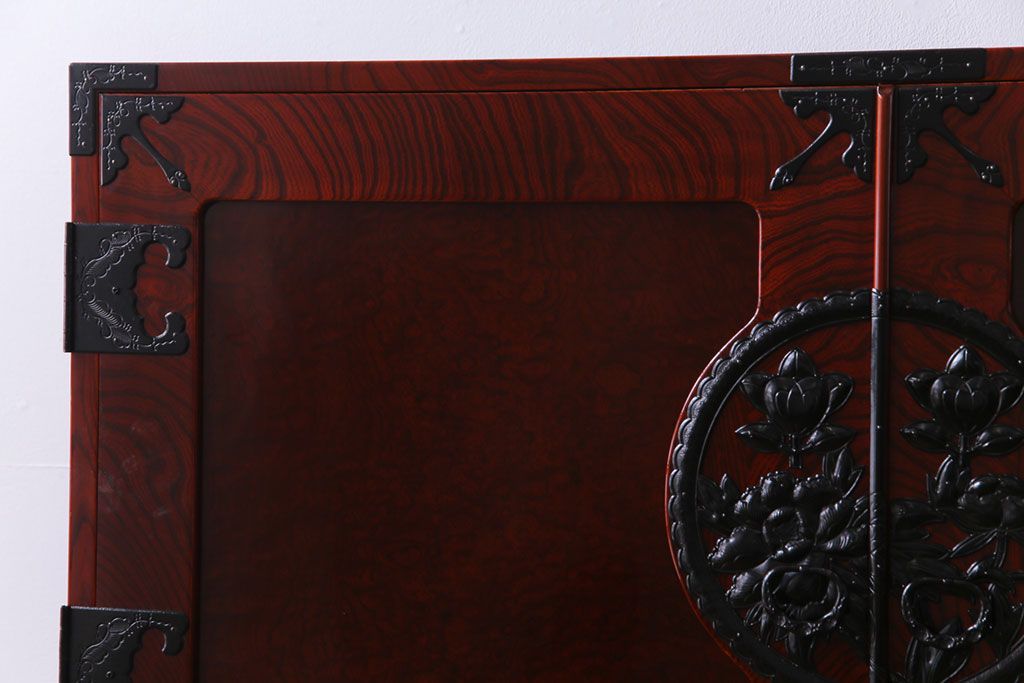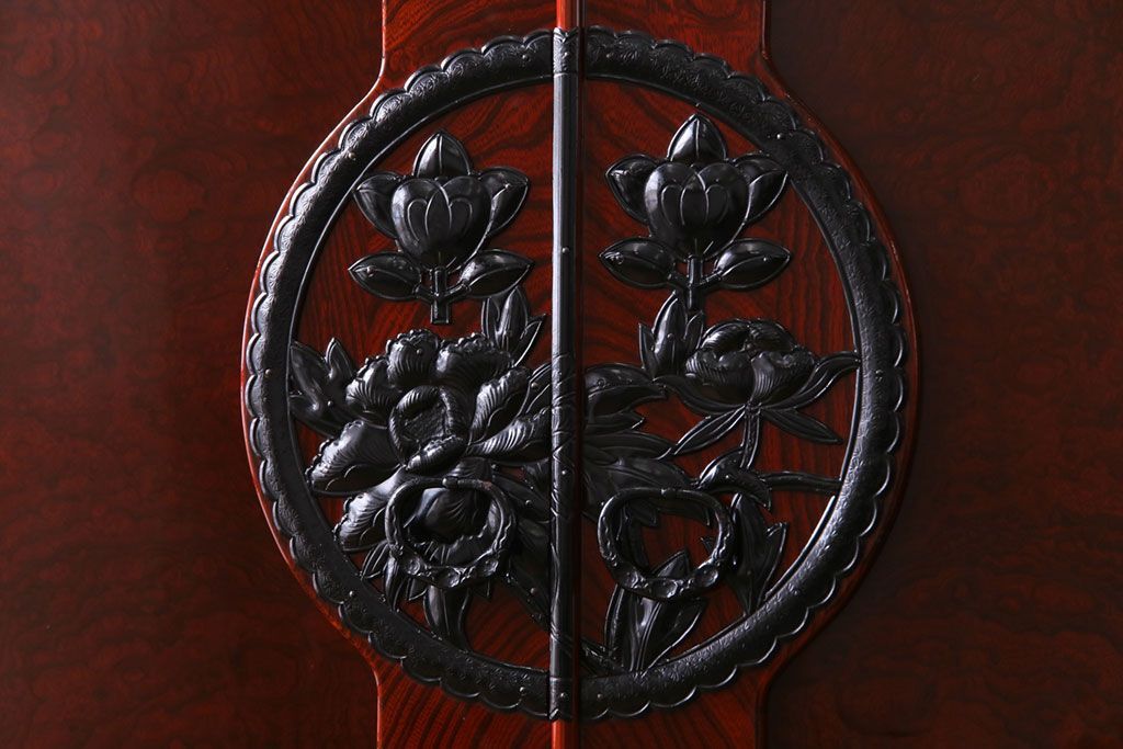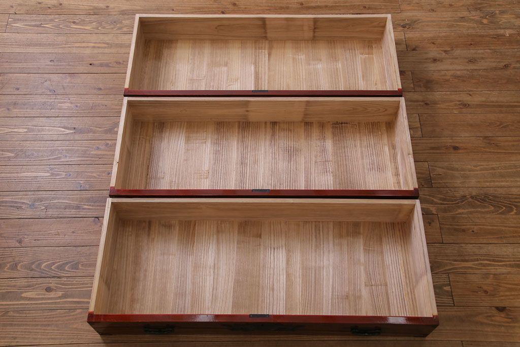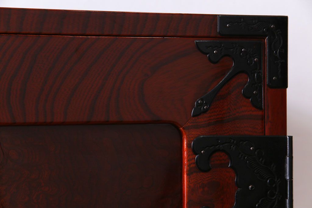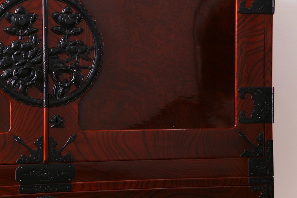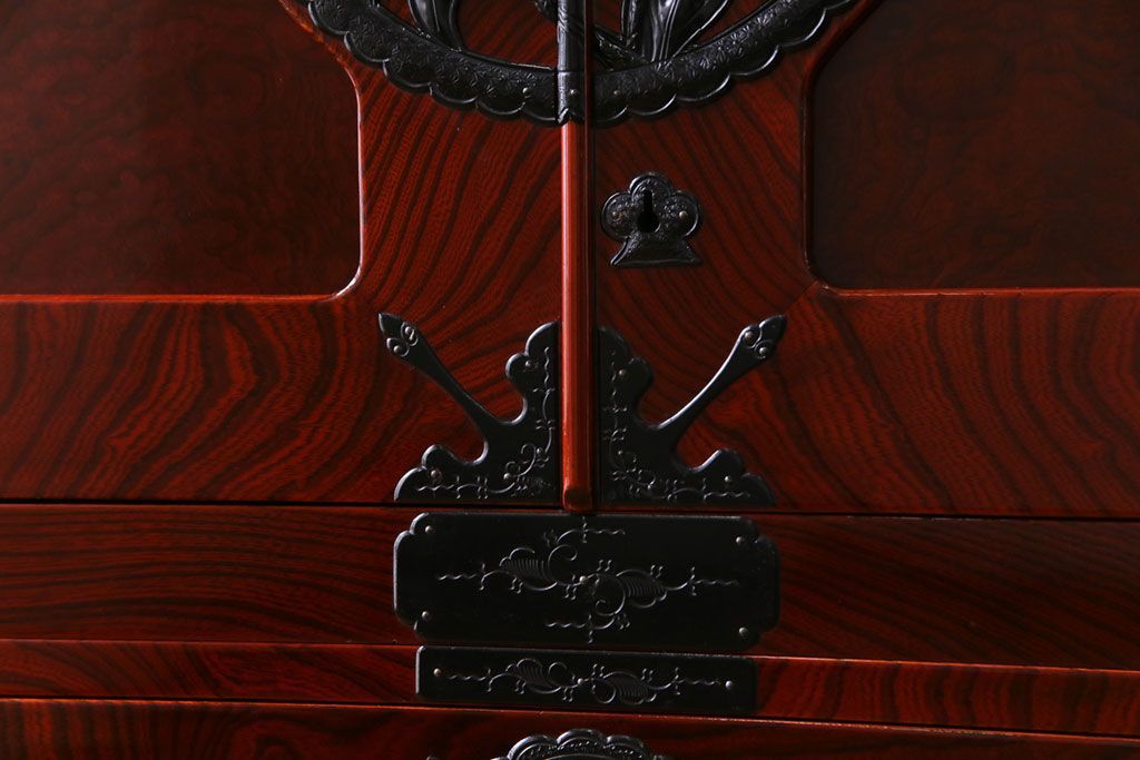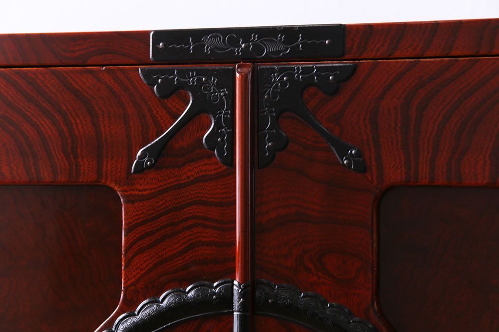 極美品 手打ち金具 厚みのある漆塗りが美しい観音開き戸付き仙台箪笥(衣装箪笥、和タンス)