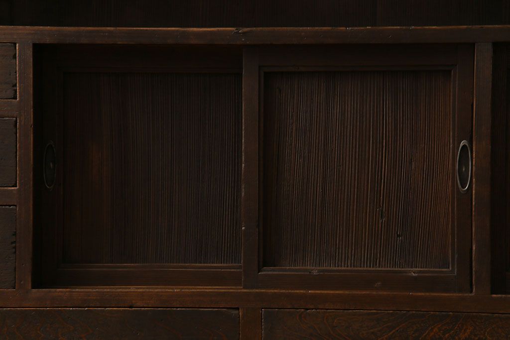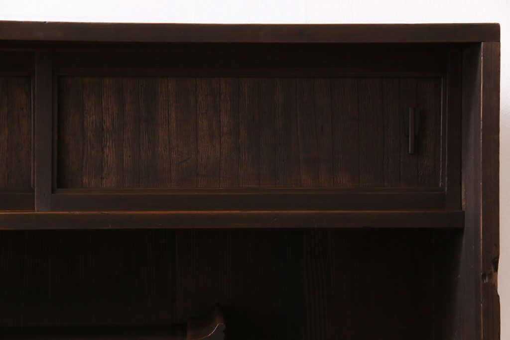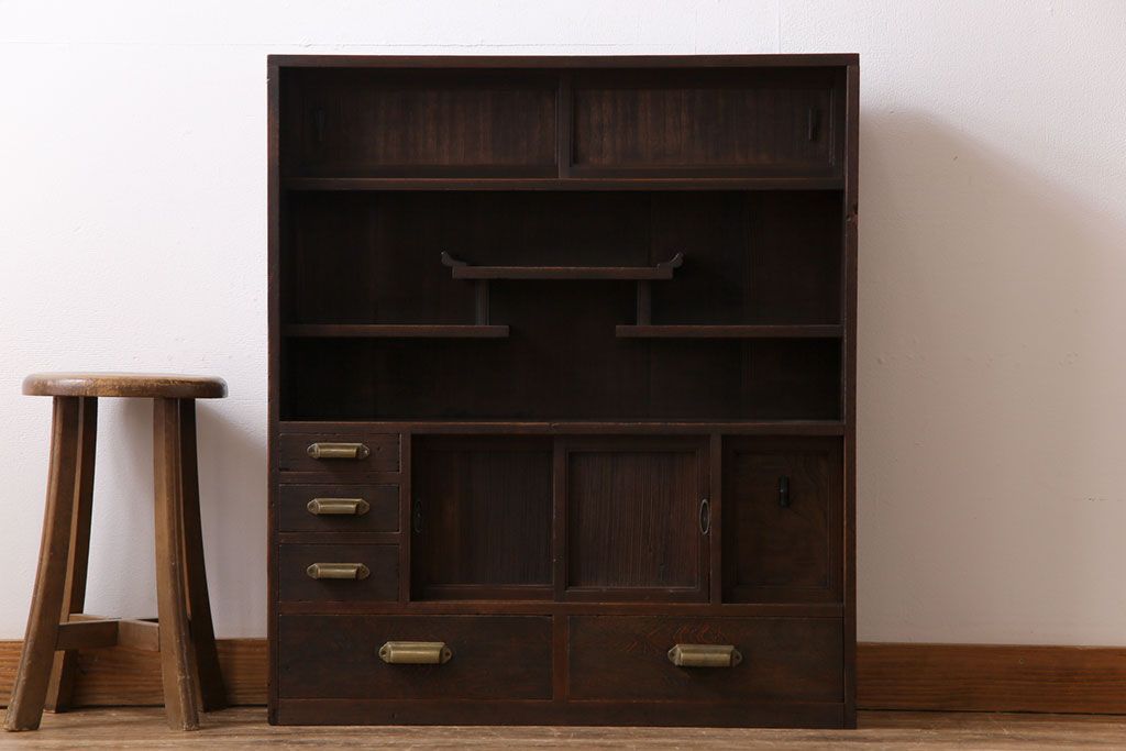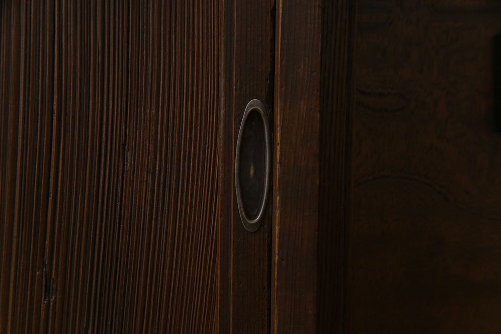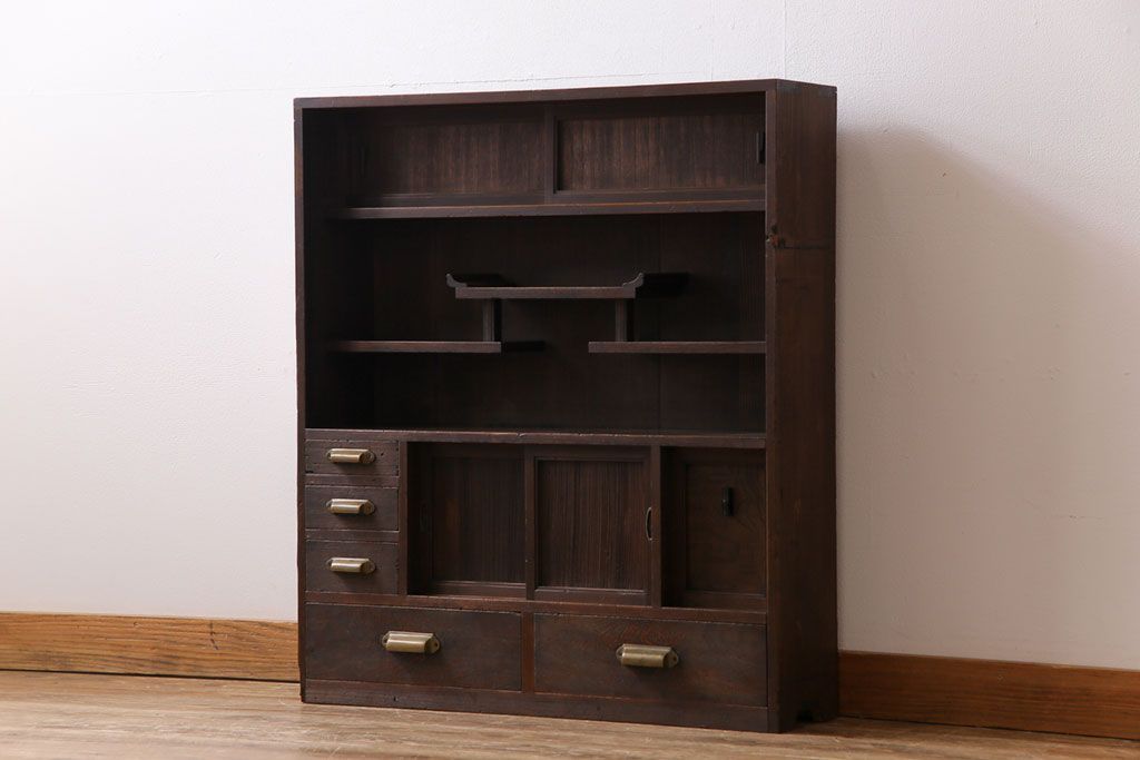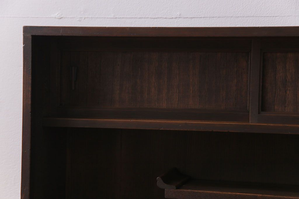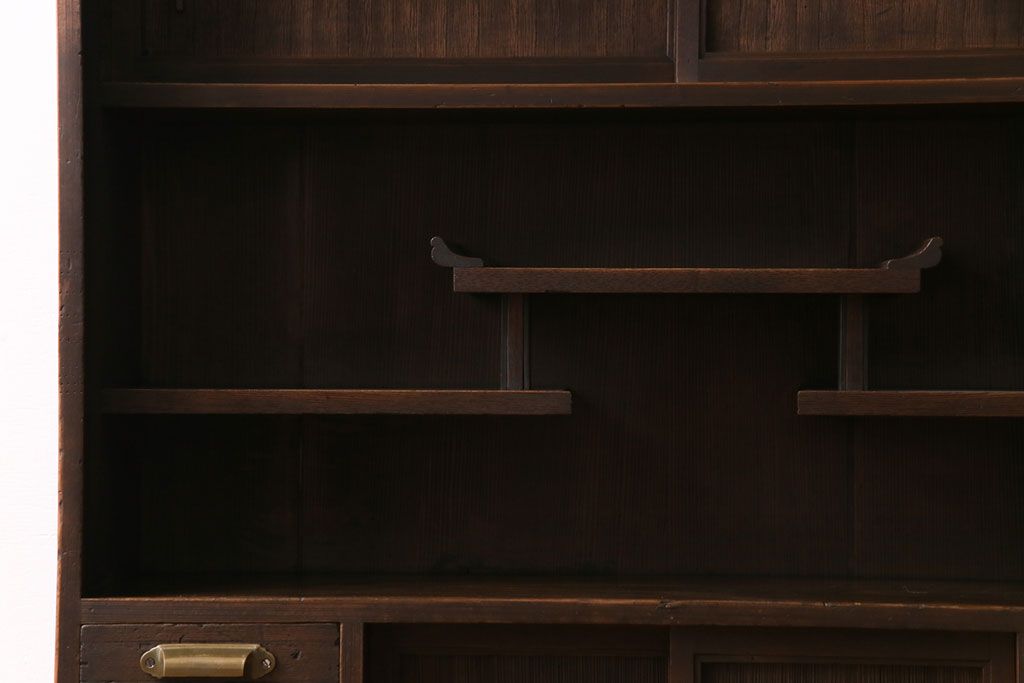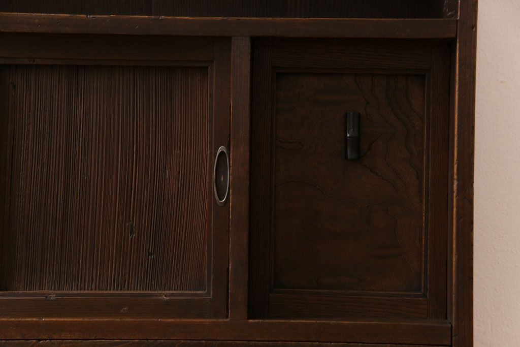 ラフジュ工房> 和箪笥> 茶箪笥・茶棚 > アンティーク家具 和製アンティーク 倹飩付き 経年により味わいを増したヒノキ材製の茶棚(茶箪笥、飾り棚、収納棚)