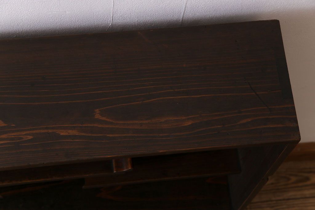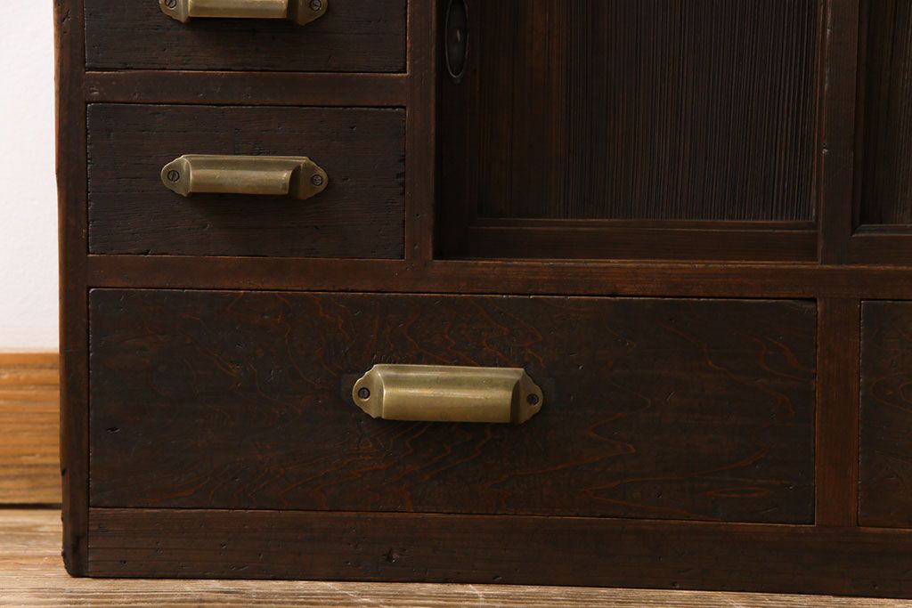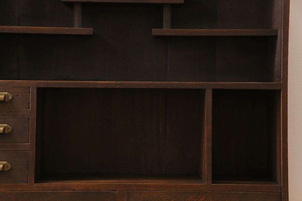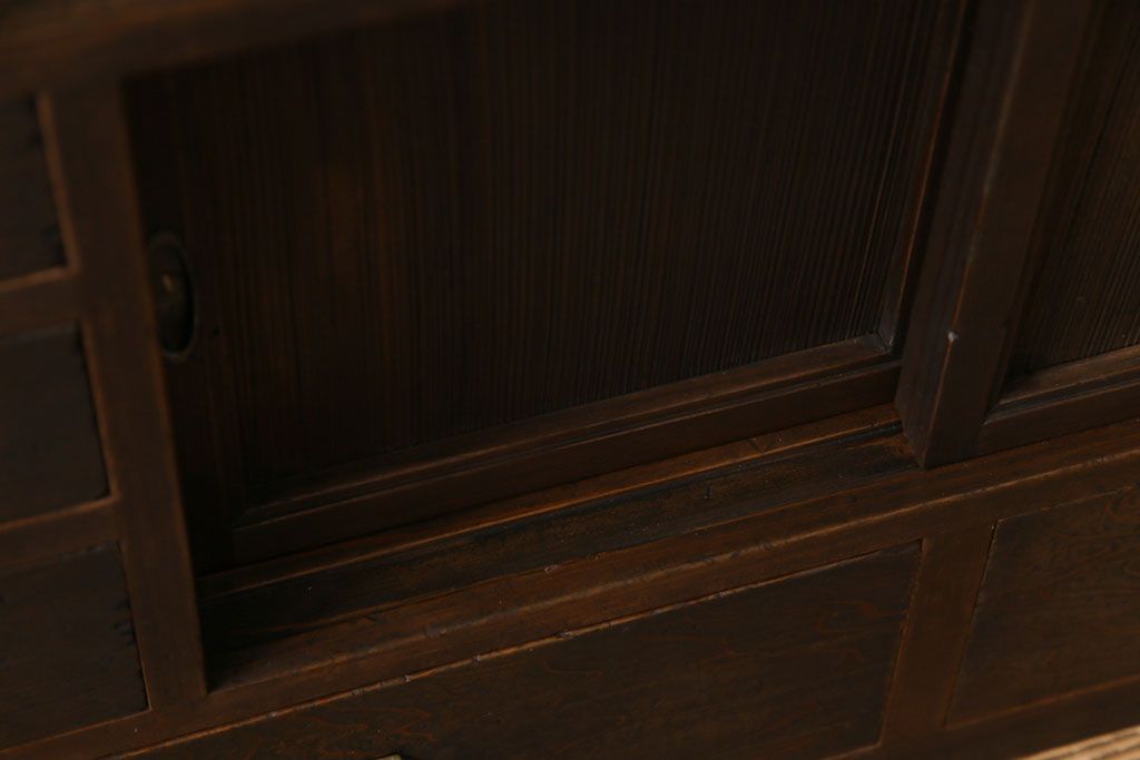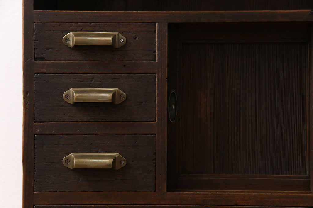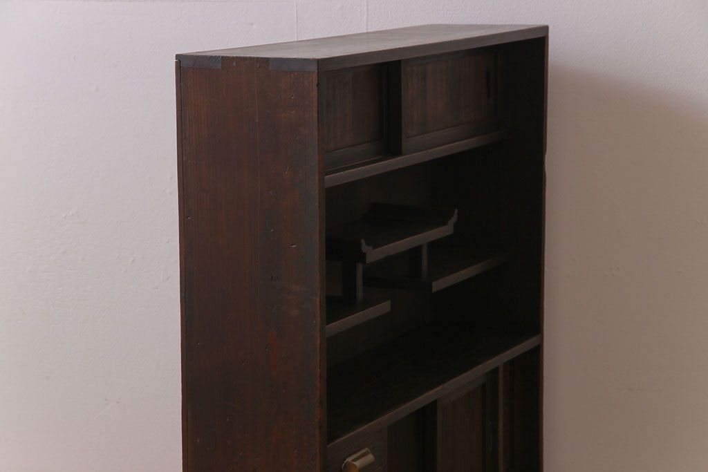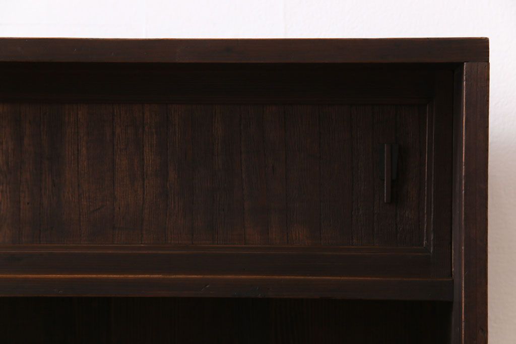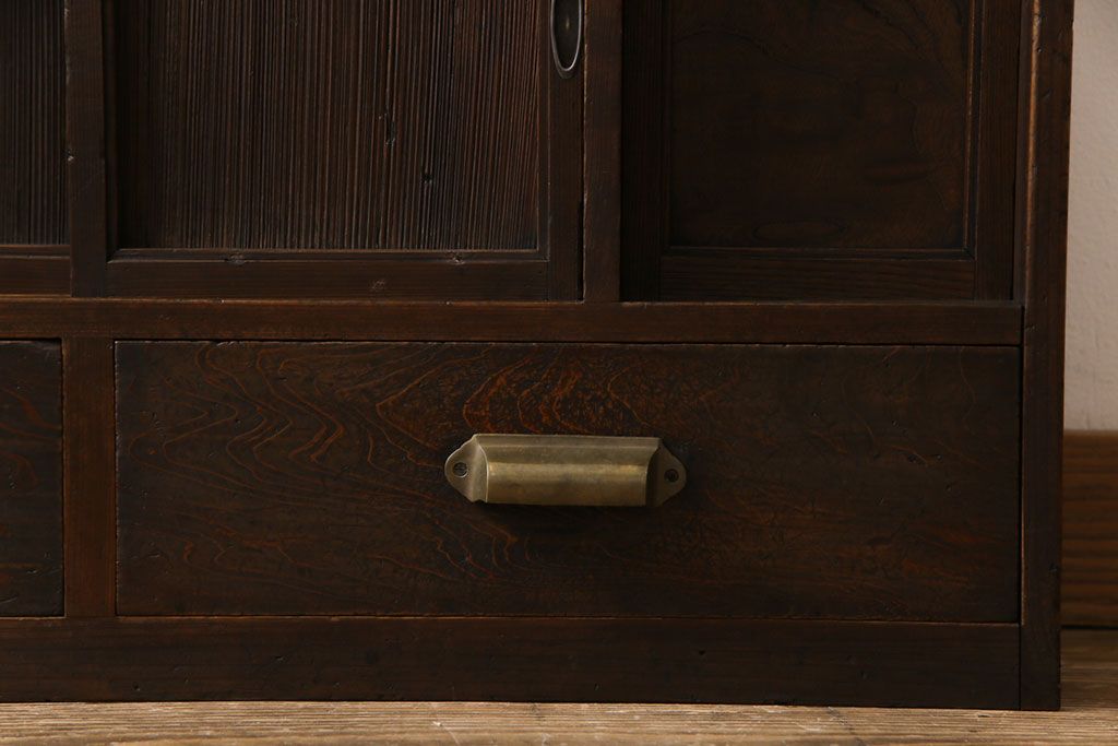 ラフジュ工房> 和箪笥> 茶箪笥・茶棚 > アンティーク家具 和製アンティーク 倹飩付き 経年により味わいを増したヒノキ材製の茶棚(茶箪笥、飾り棚、収納棚)
