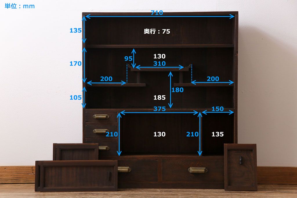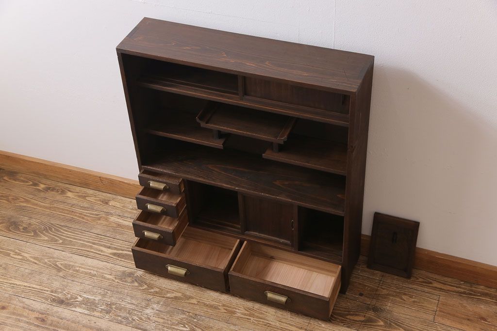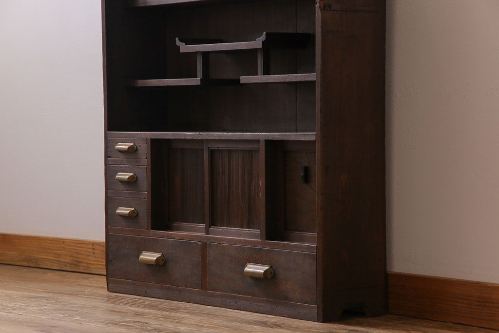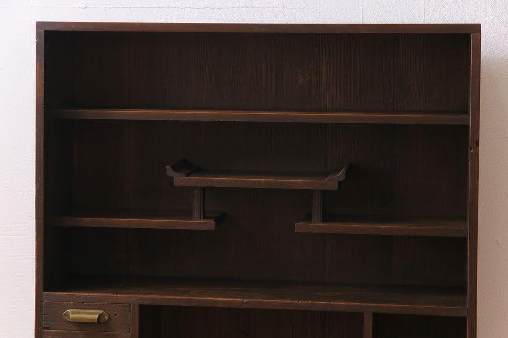 アンティーク家具 和製アンティーク 倹飩付き 経年により味わいを増したヒノキ材製の茶棚(茶箪笥、飾り棚、収納棚)