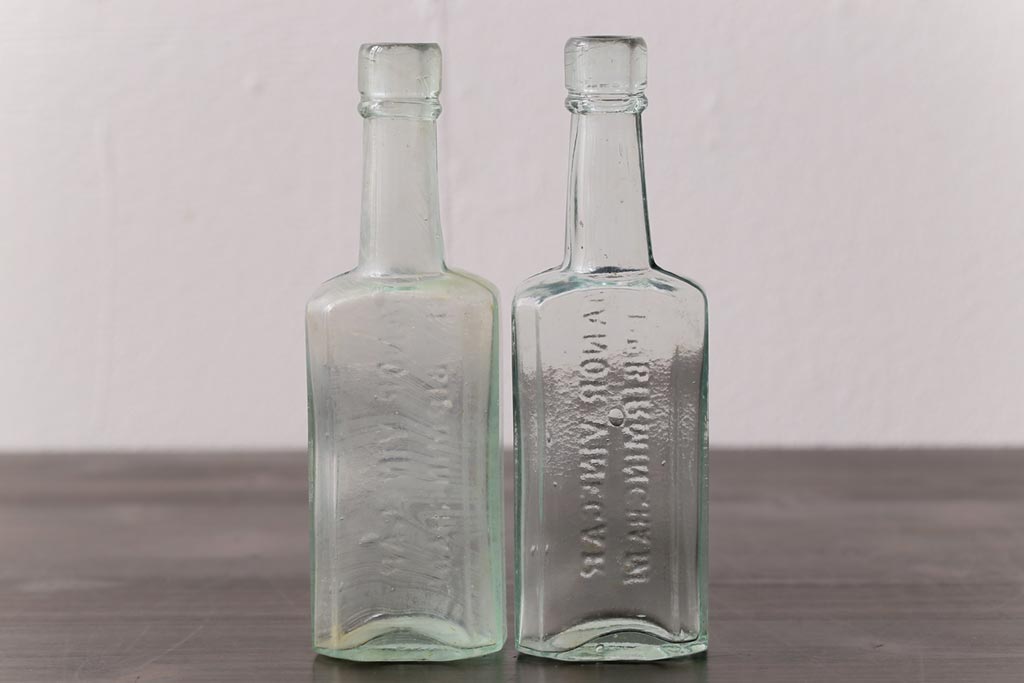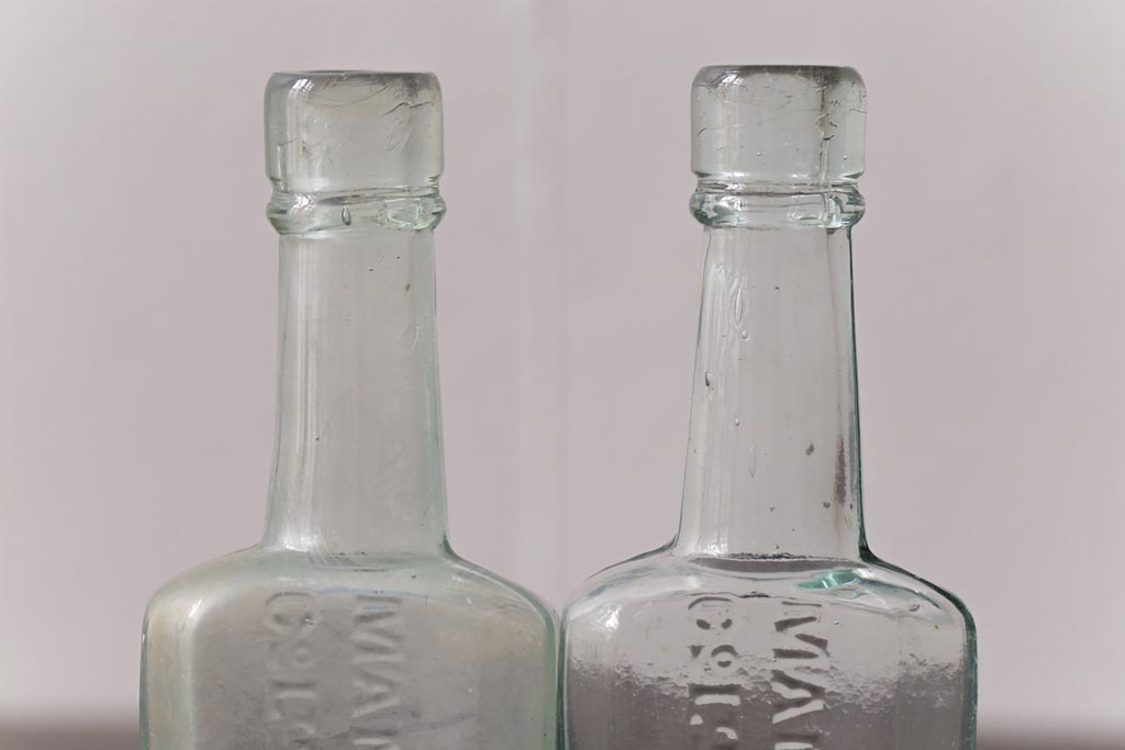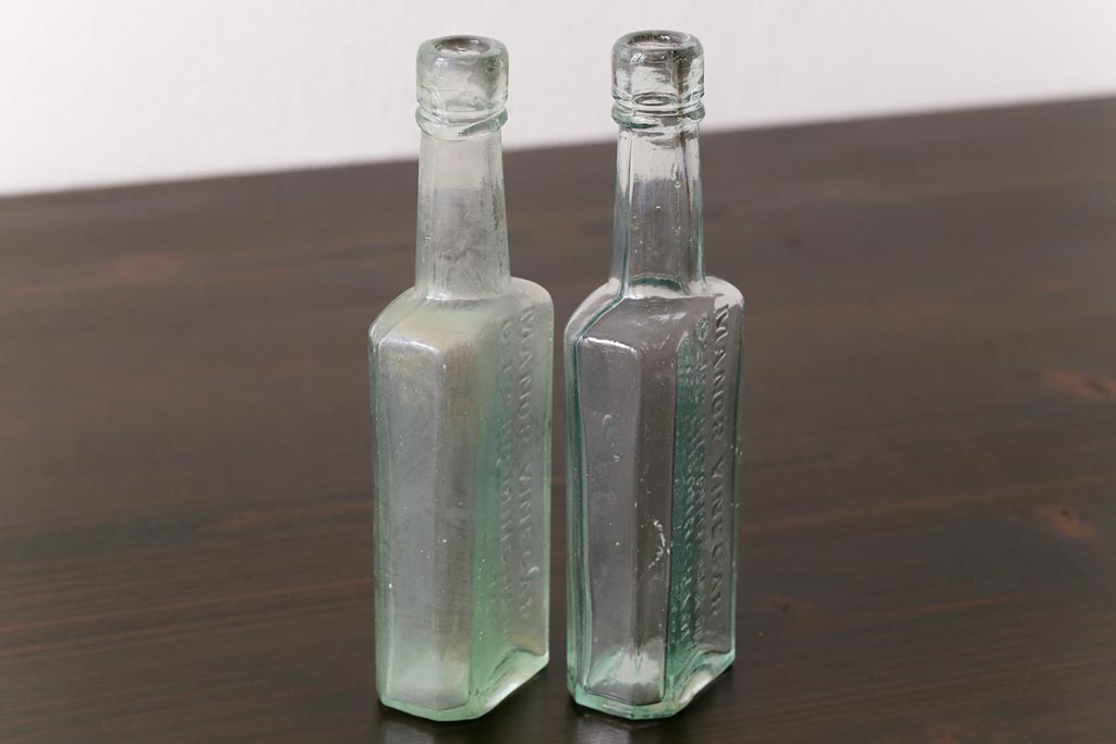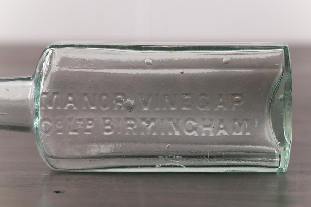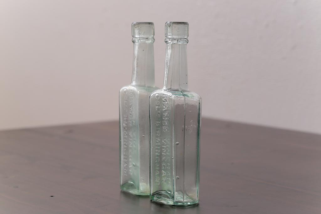 アンティーク雑貨 イギリスビンテージ MANOR VINEGAR エンボスが格好いいお酢のガラスビン(ボトル、瓶)2個セット