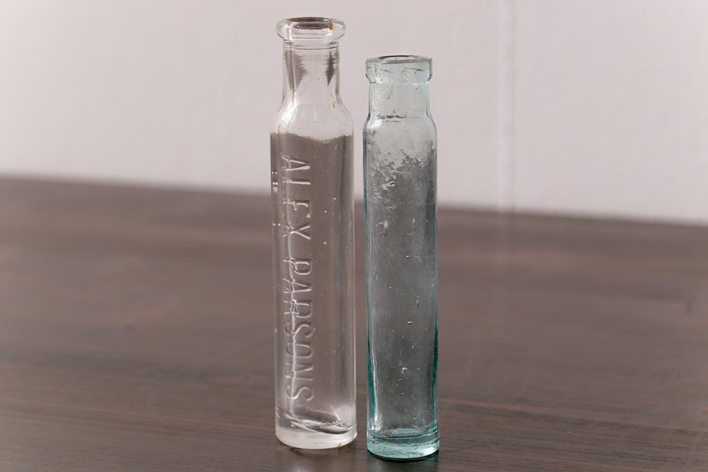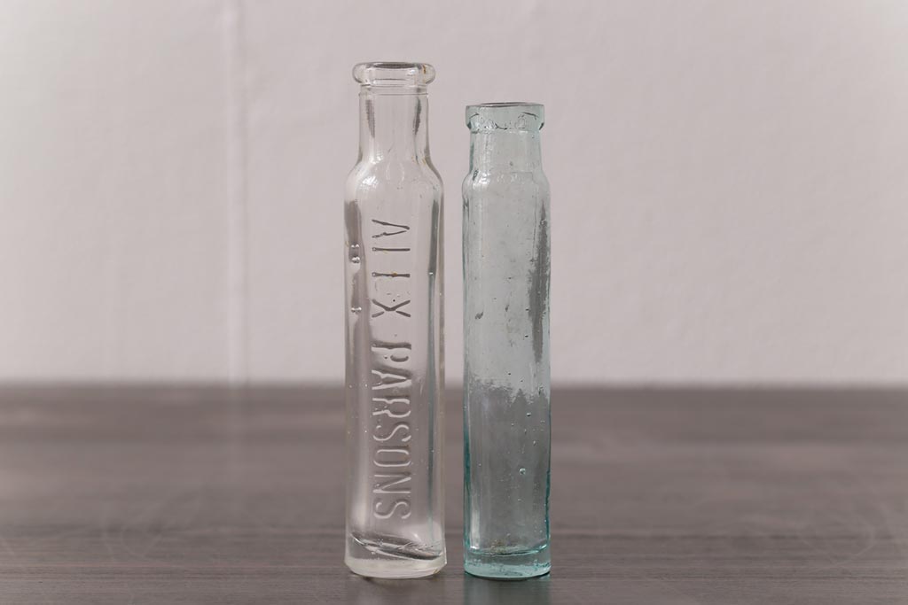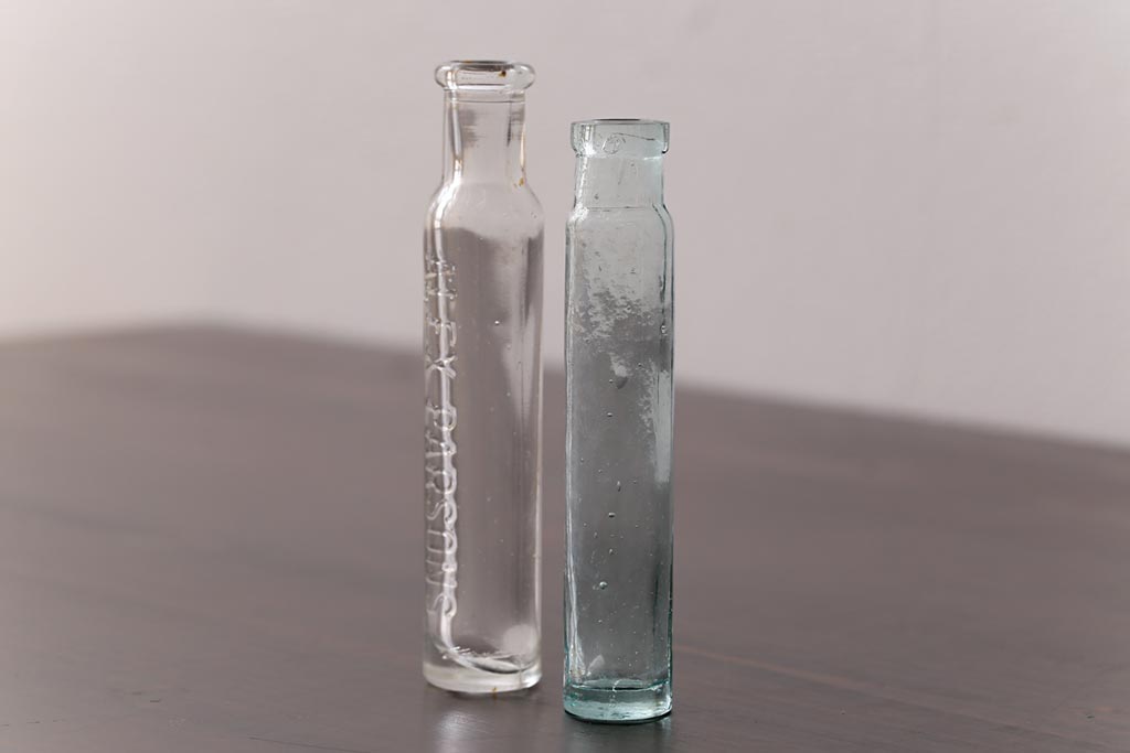 アンティーク雑貨 イギリスビンテージ スリムで格好良いボトル(ガラスビン、瓶)2本セット