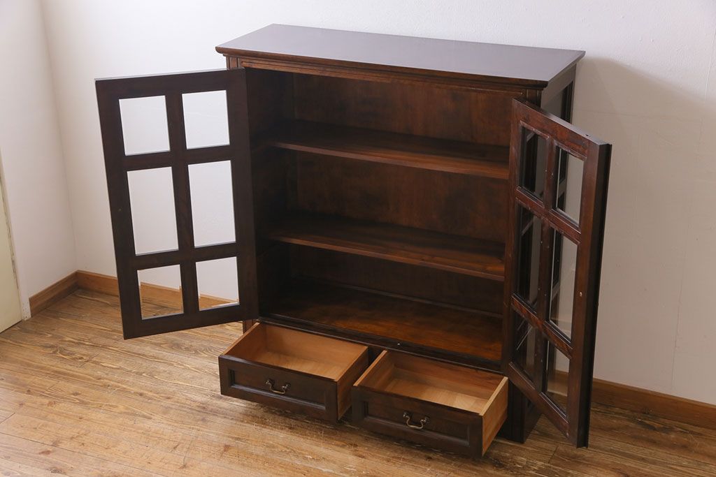 ラフジュ工房> 民芸家具 > 中古 松本民芸家具 洋の雰囲気を感じるA型面取書棚(ブックケース、本箱、キャビネット)(定価約44万7000円)