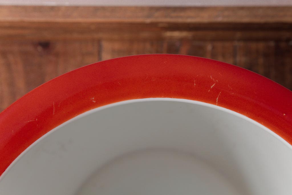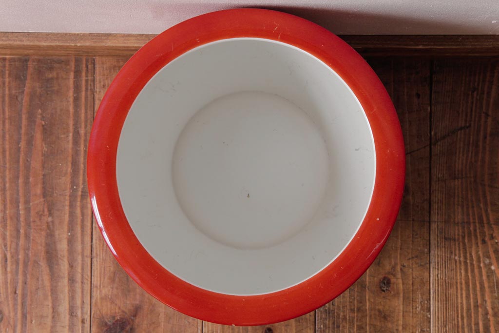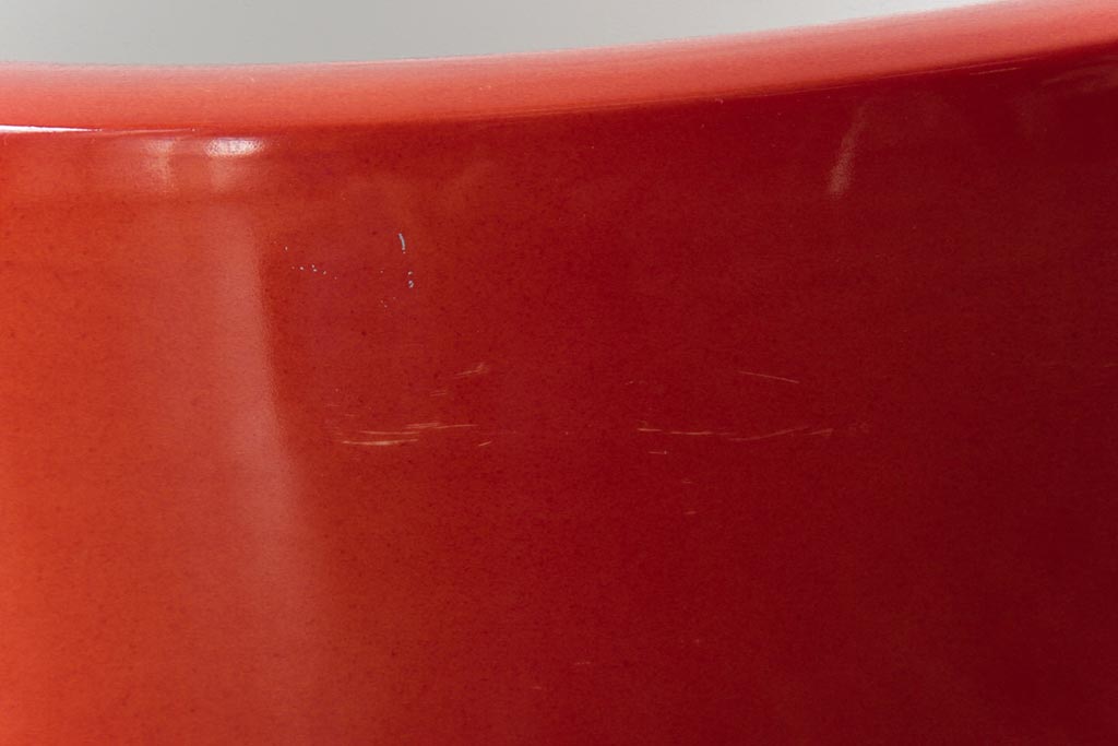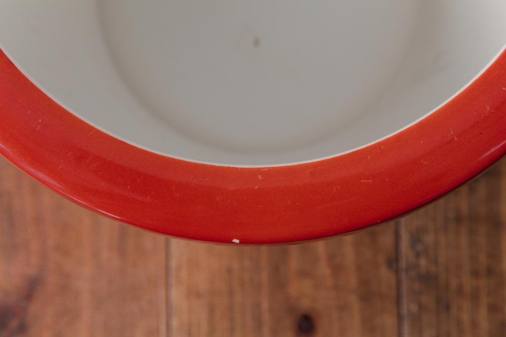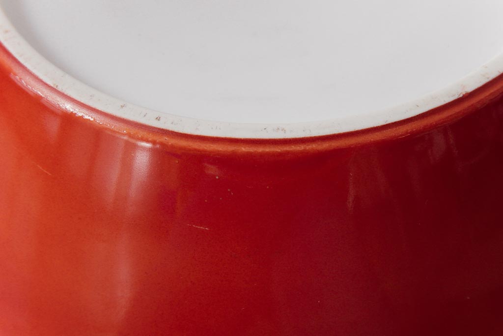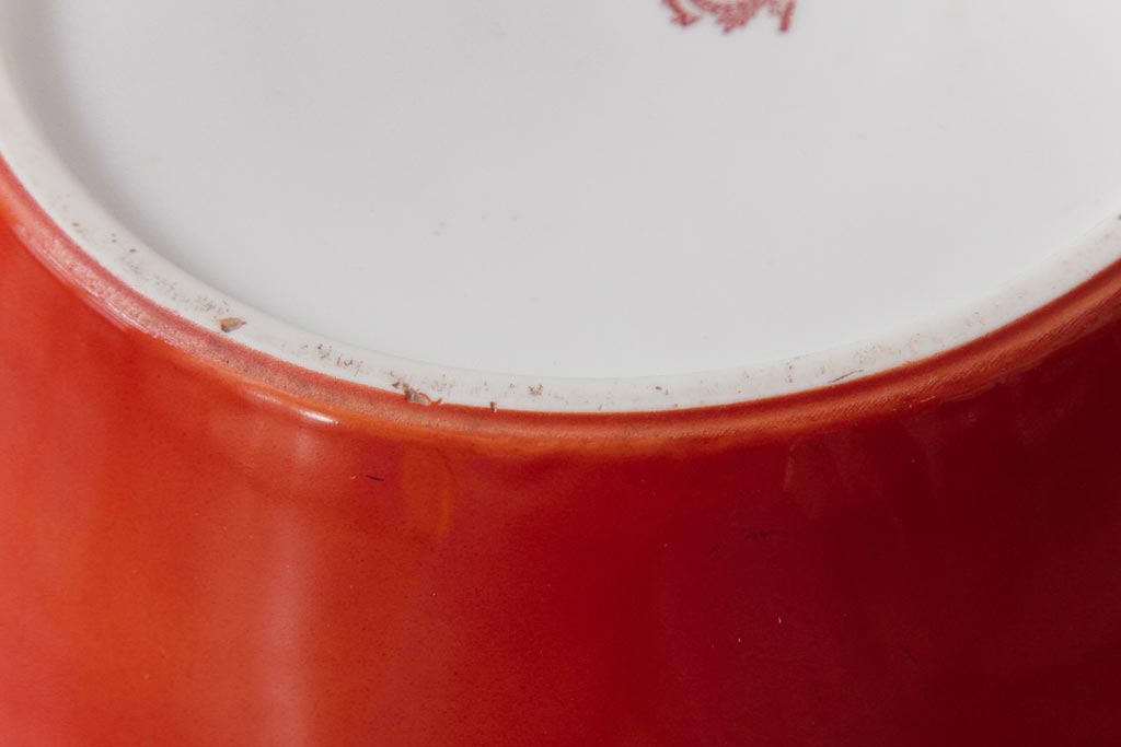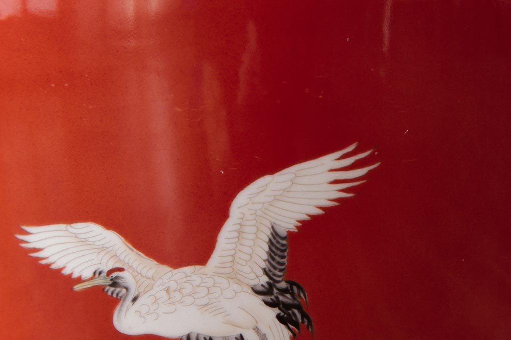 火鉢> 瀬戸火鉢 > アンティーク雑貨 ノリタケ・則武(日陶) 鶴の図 朱色が目を引く小振りの瀬戸火鉢(手あぶり、鉢カバー)(1)