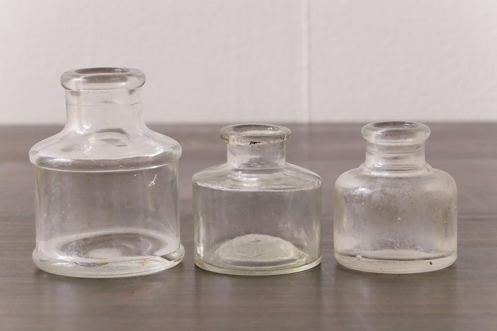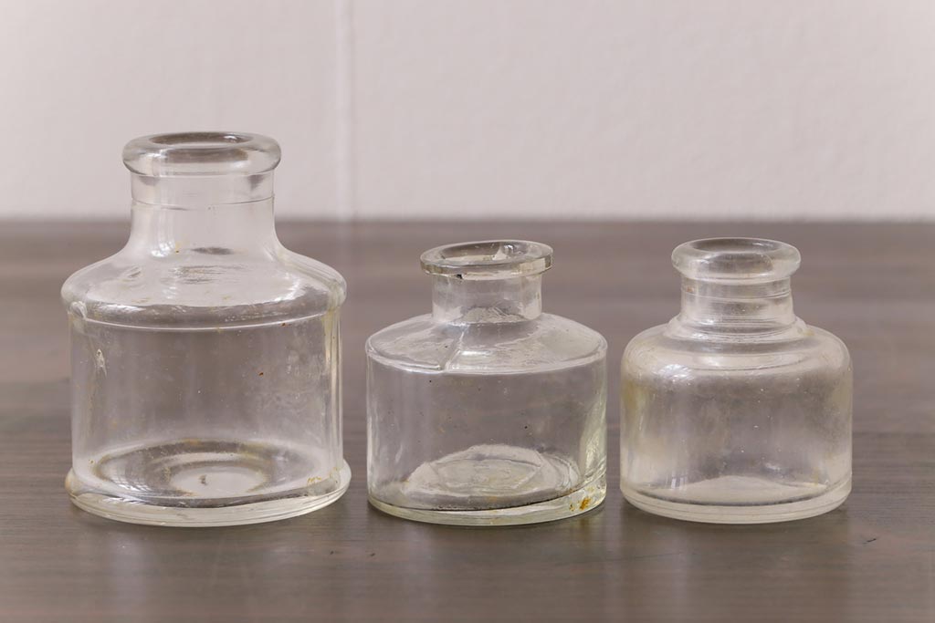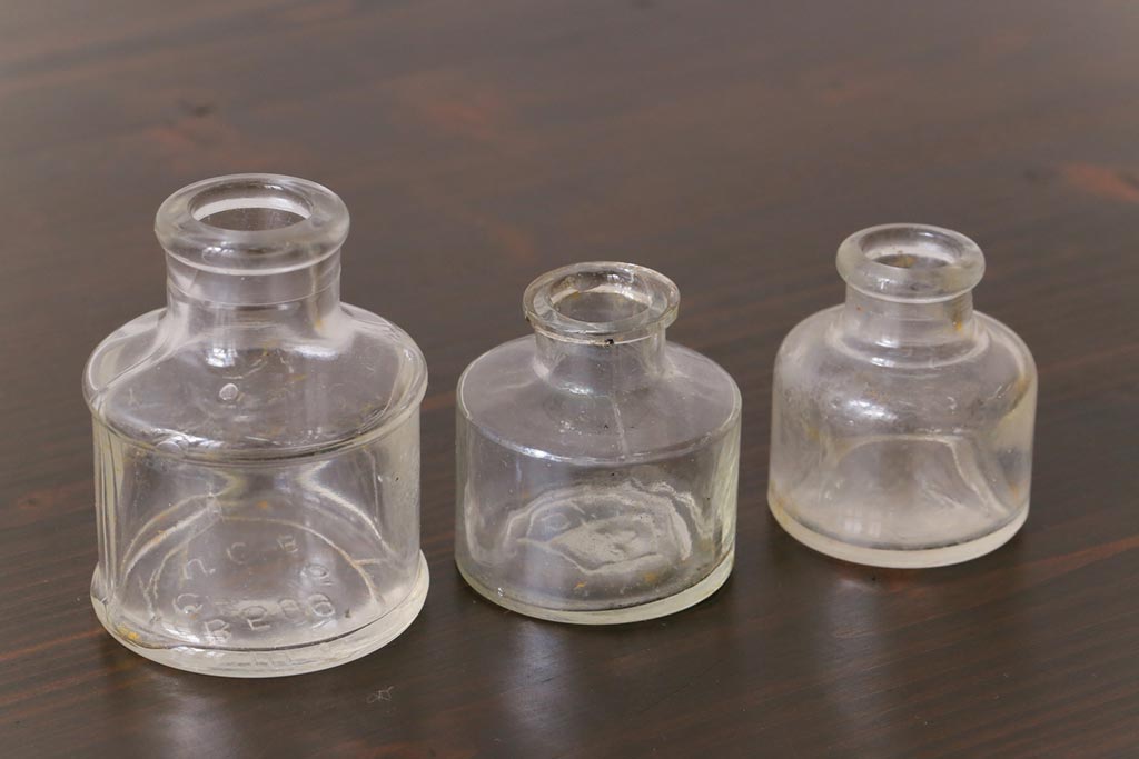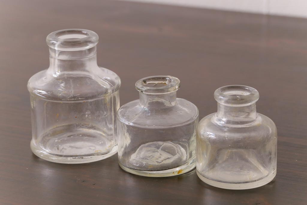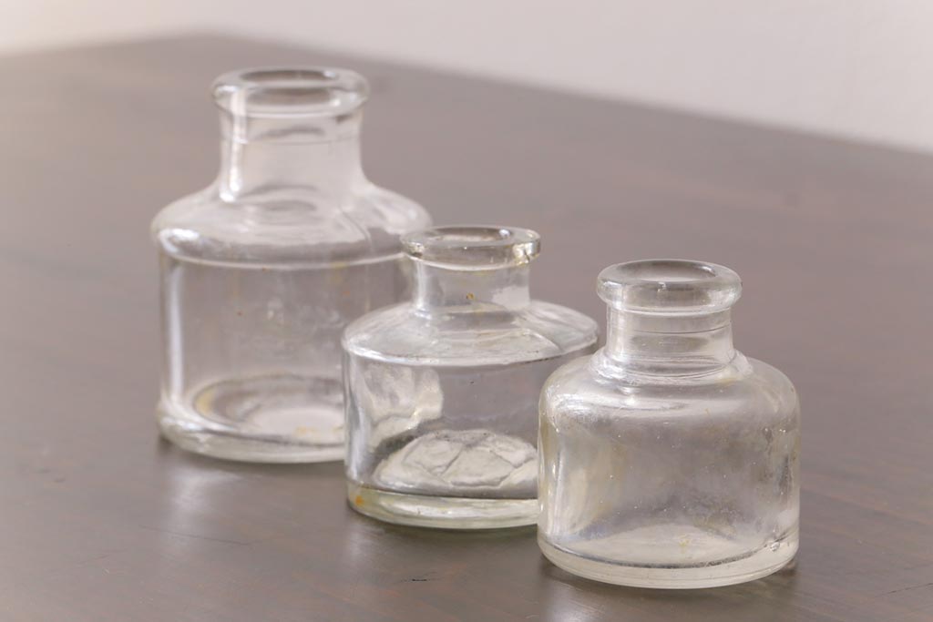 アンティーク雑貨 イギリスビンテージ 古びた質感が味わい深い小瓶(ガラスビン)3個セット
