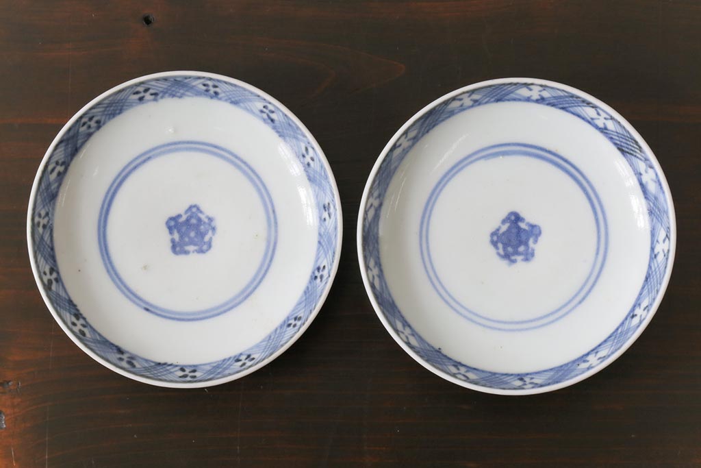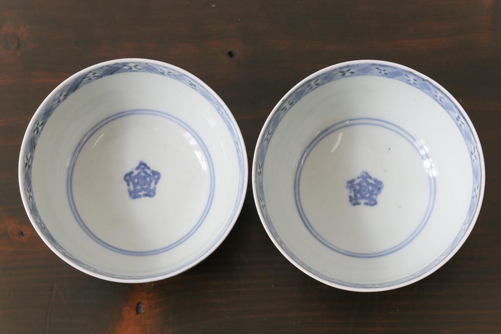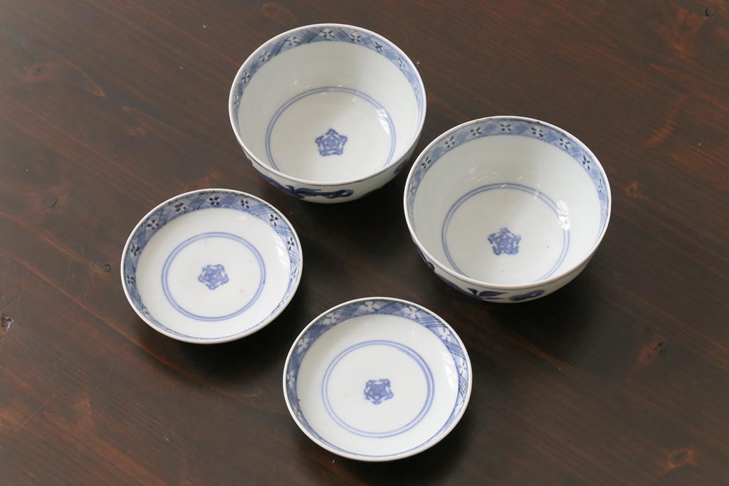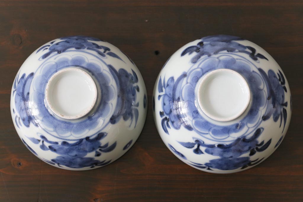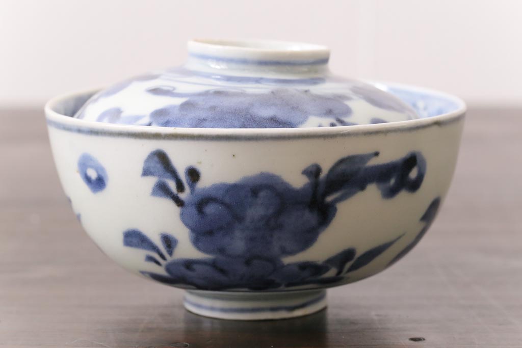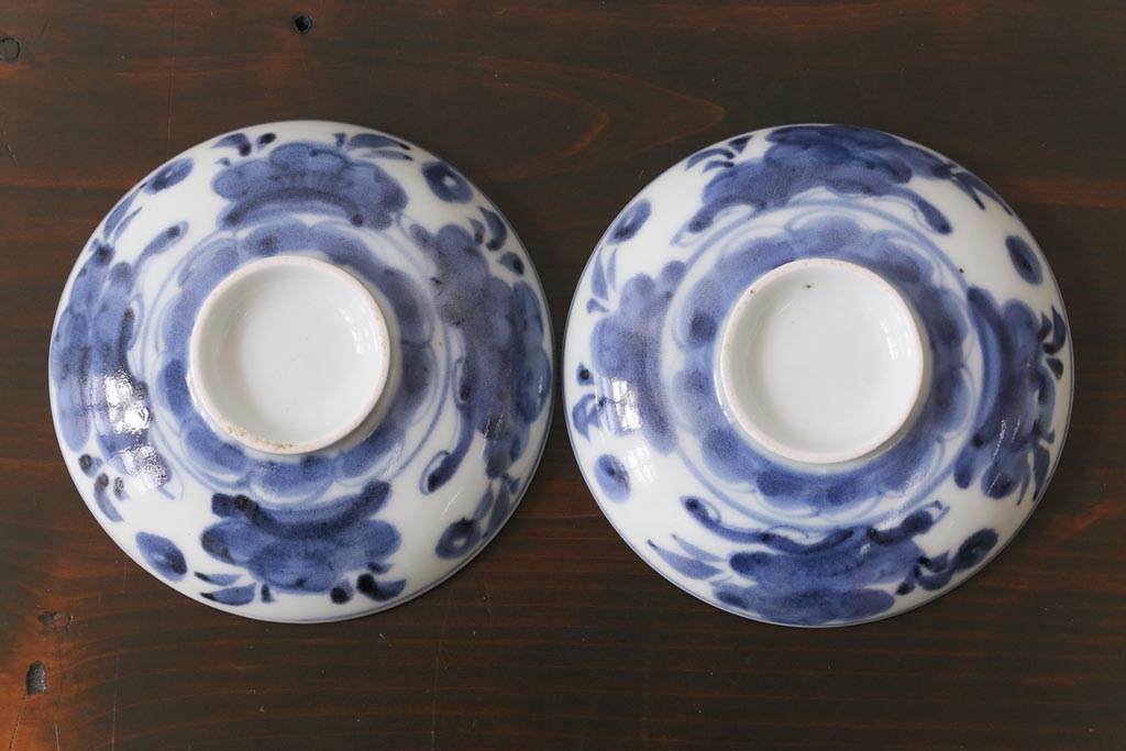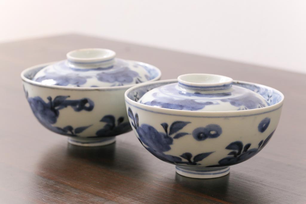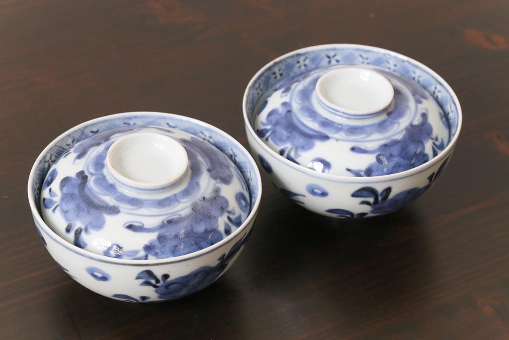 ラフジュ工房> 和食器・茶道具 > 和製アンティーク 江戸期 染付 優しい色合いが親しみ感じる蓋茶碗2客セット(和食器)