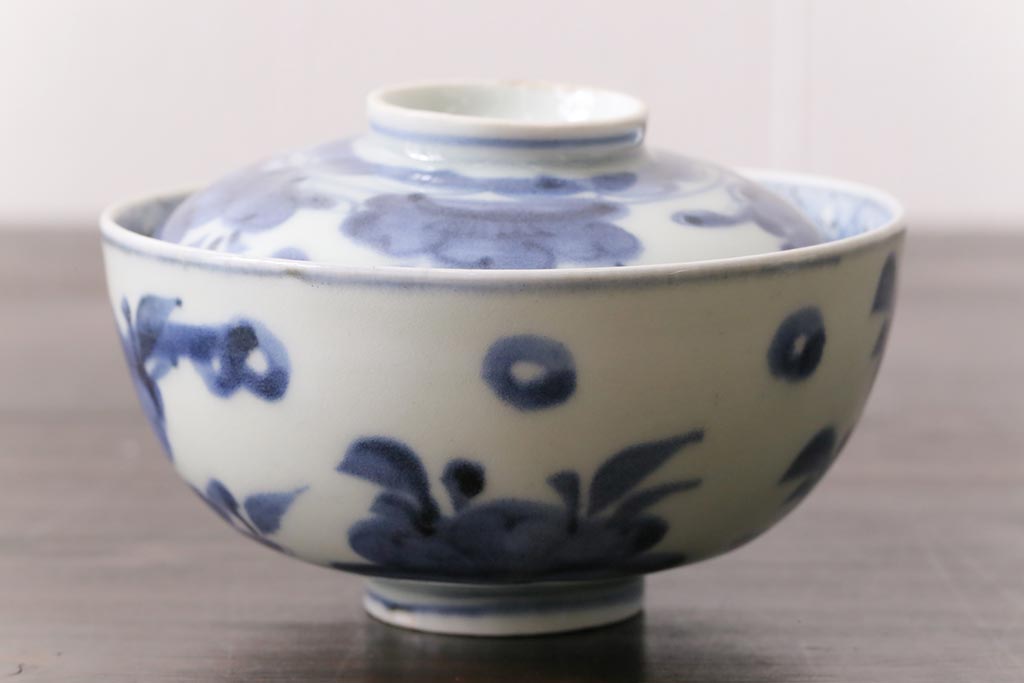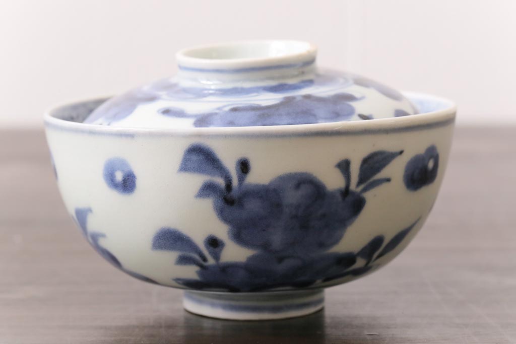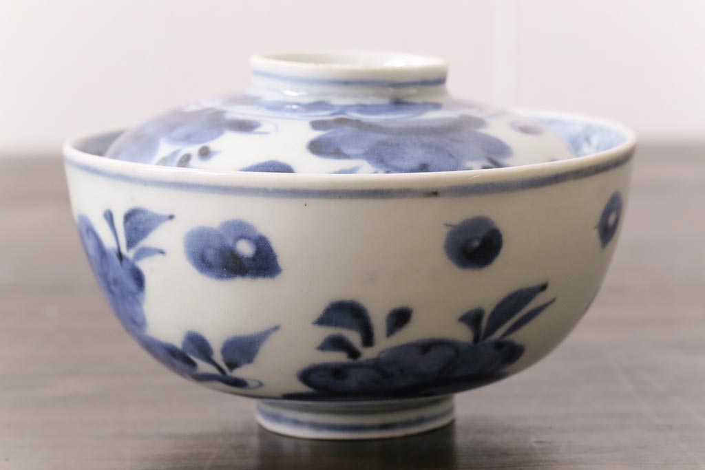 ラフジュ工房> 和食器・茶道具> お椀・茶碗 > 和製アンティーク 江戸期 染付 優しい色合いが親しみ感じる蓋茶碗2客セット(和食器)