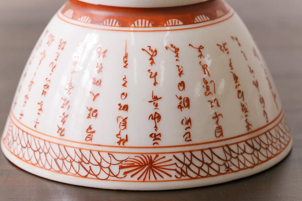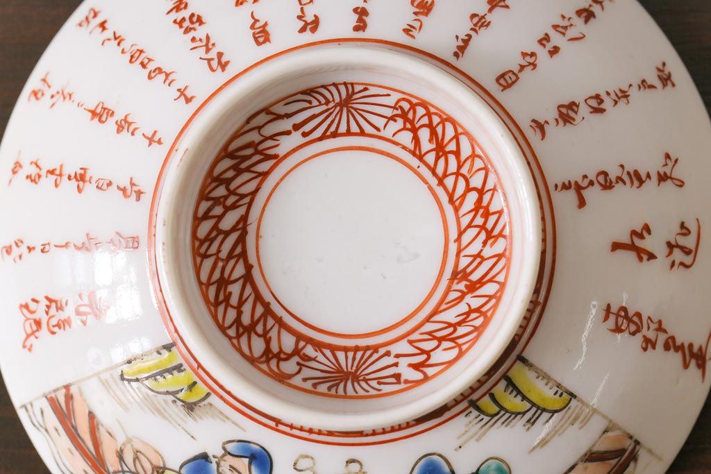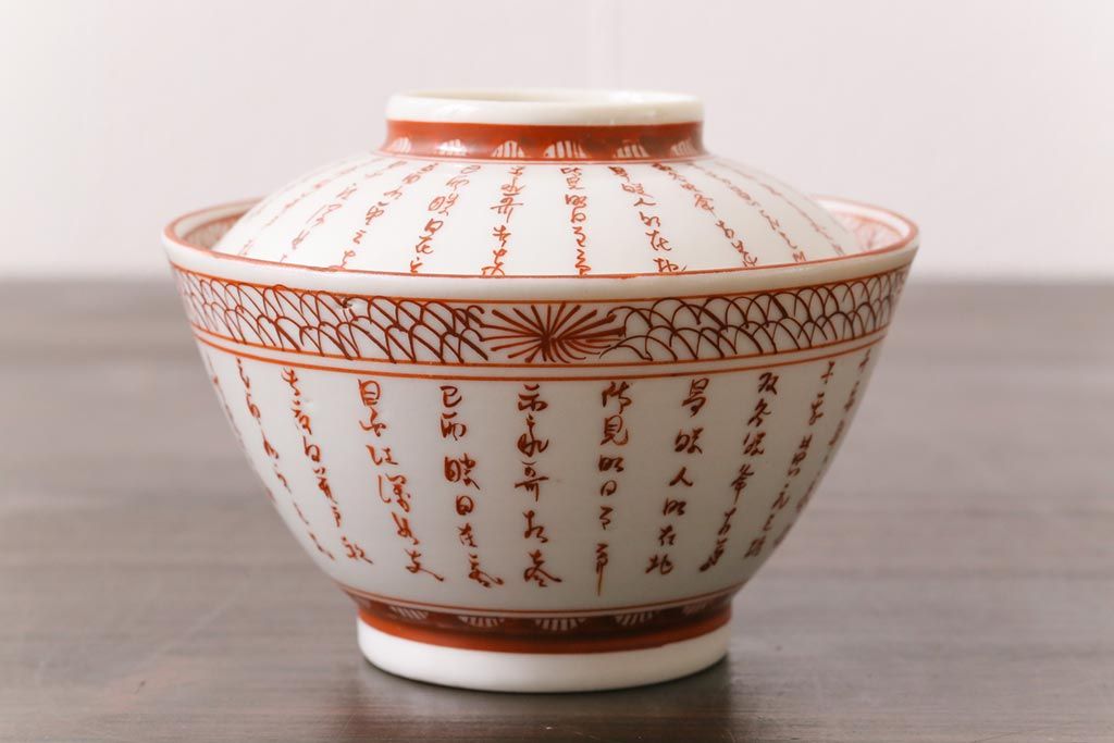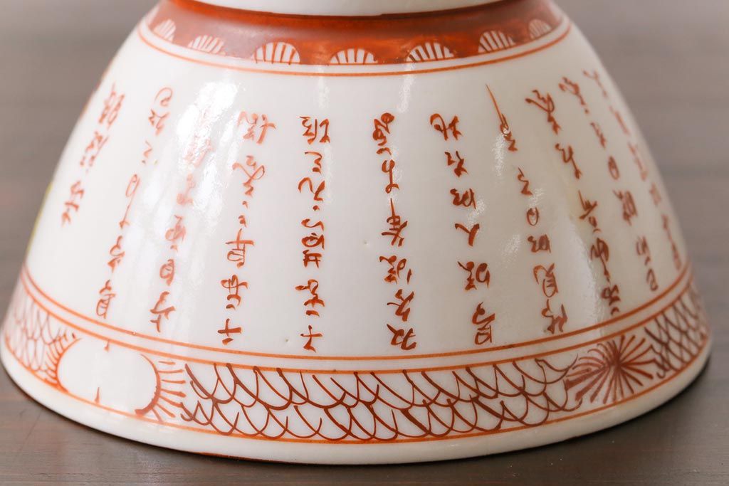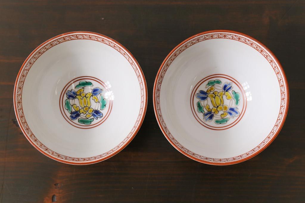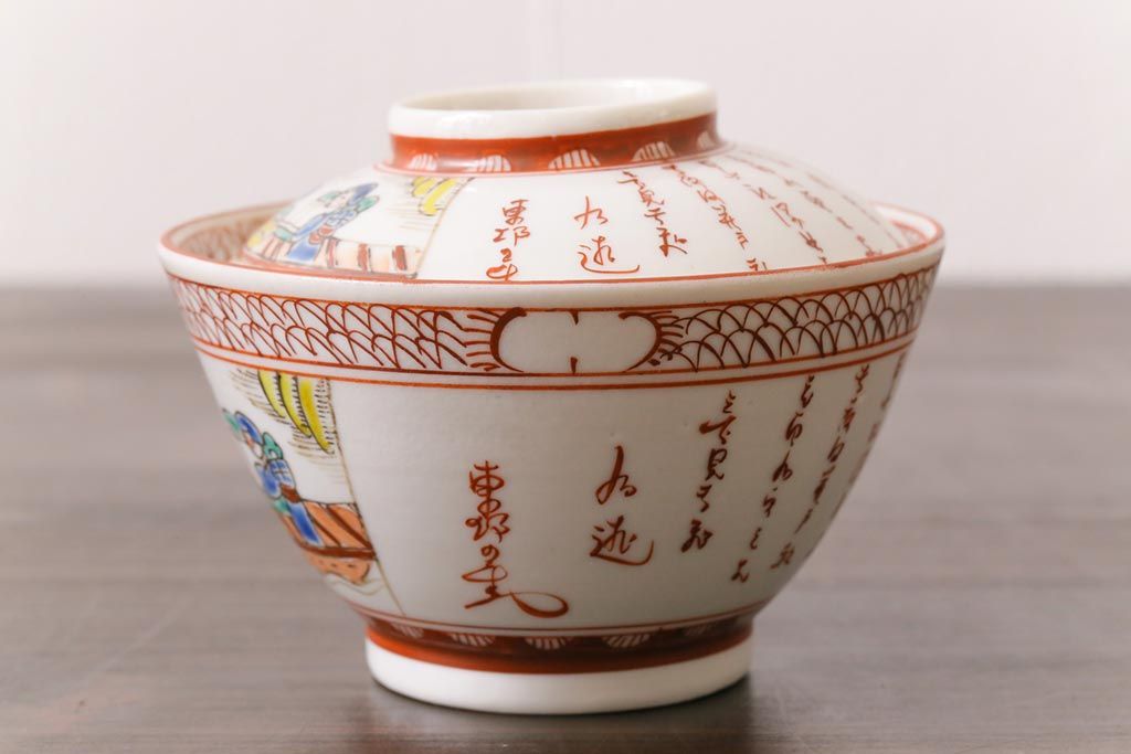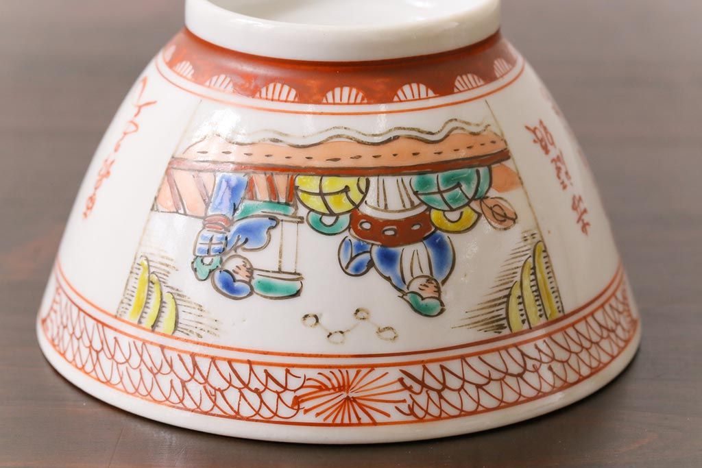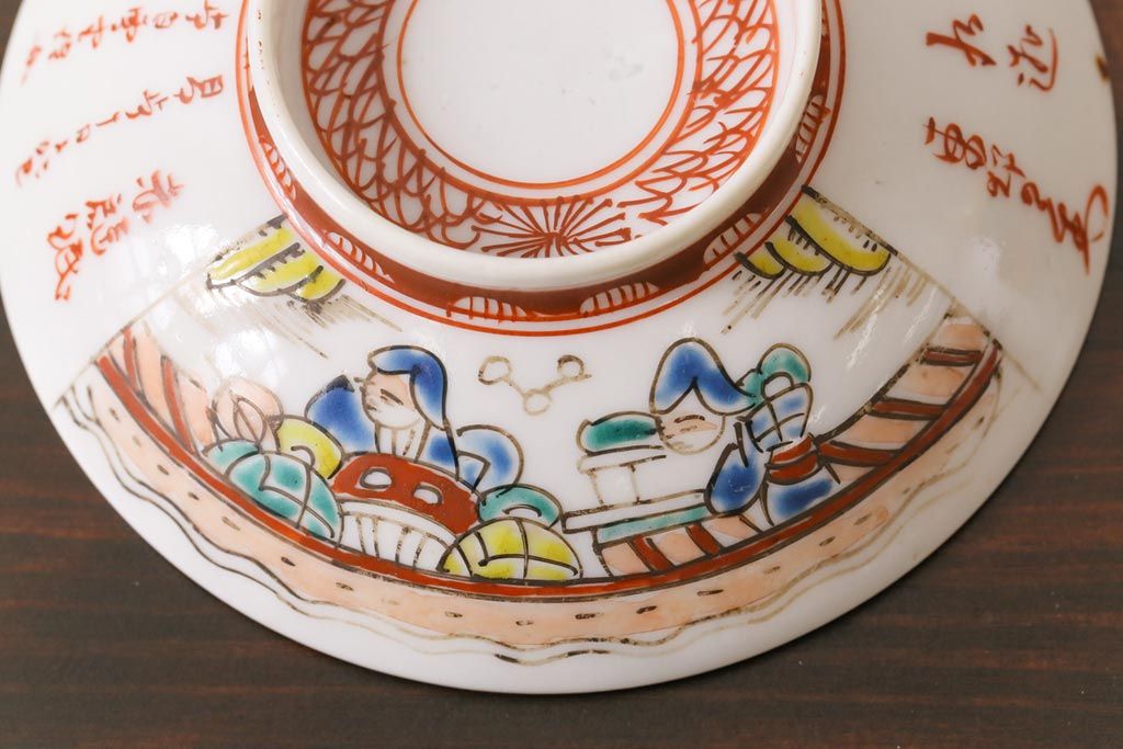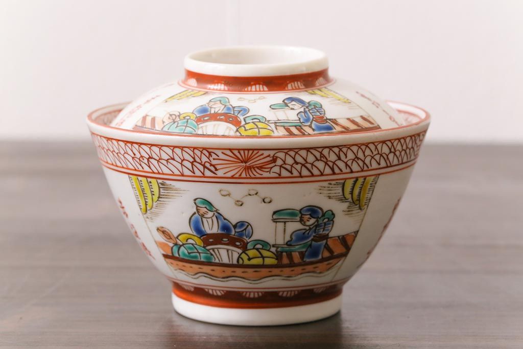幕末明治期 赤絵染付 味わいある絵柄の蓋茶碗2客セット(和食器)(2)