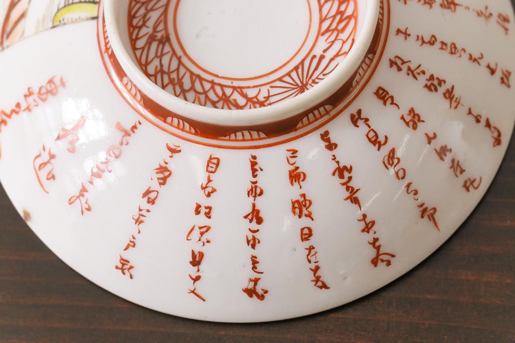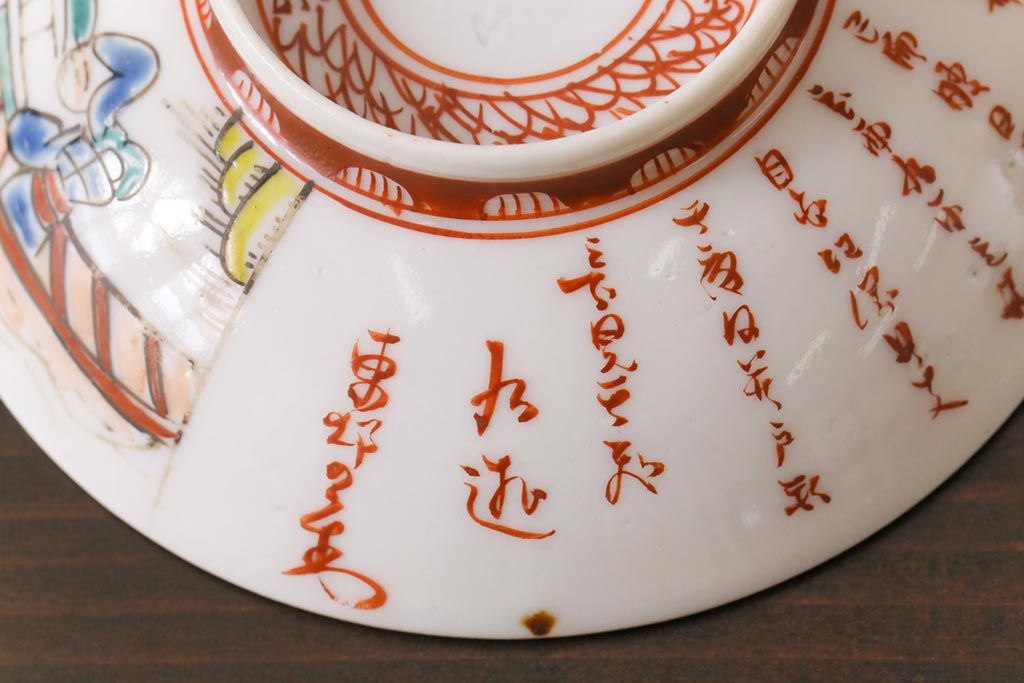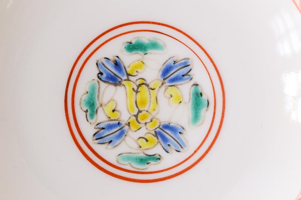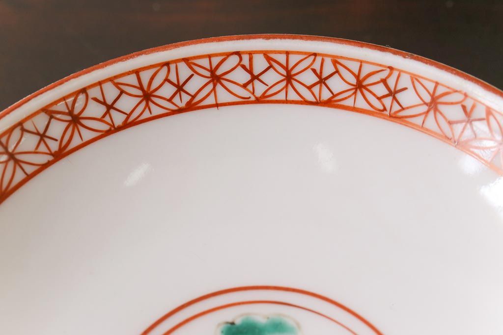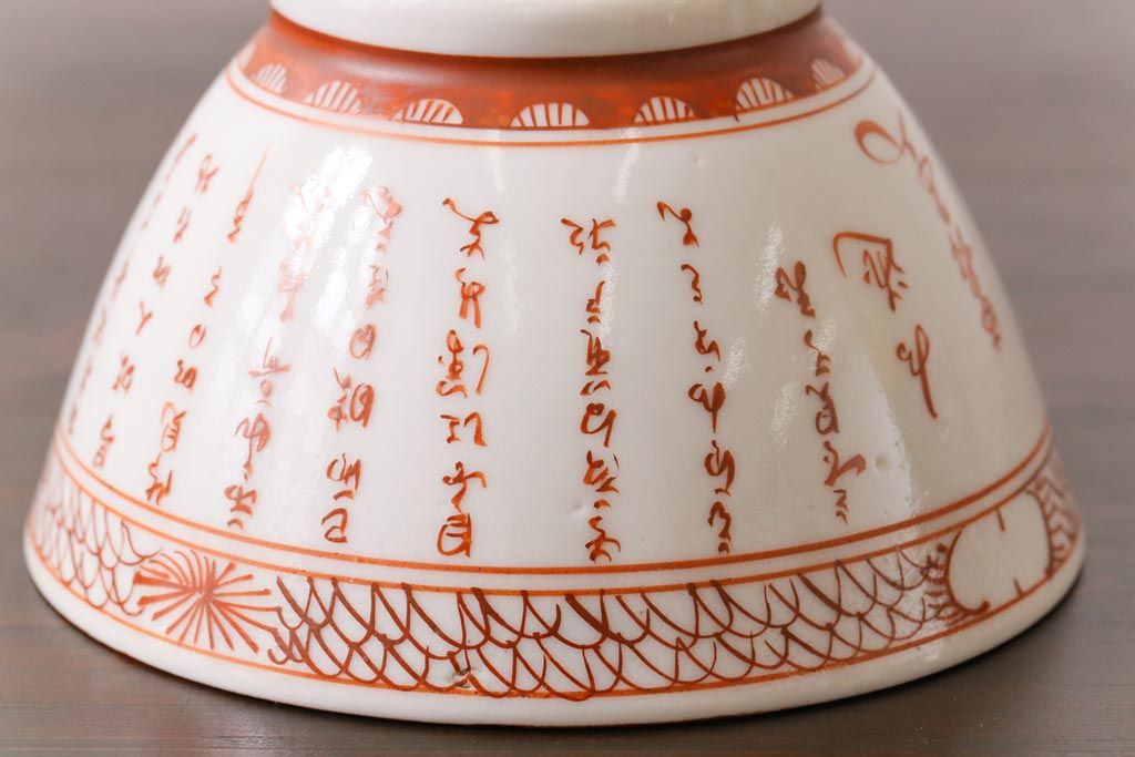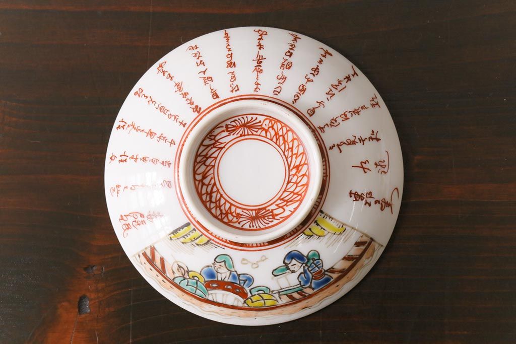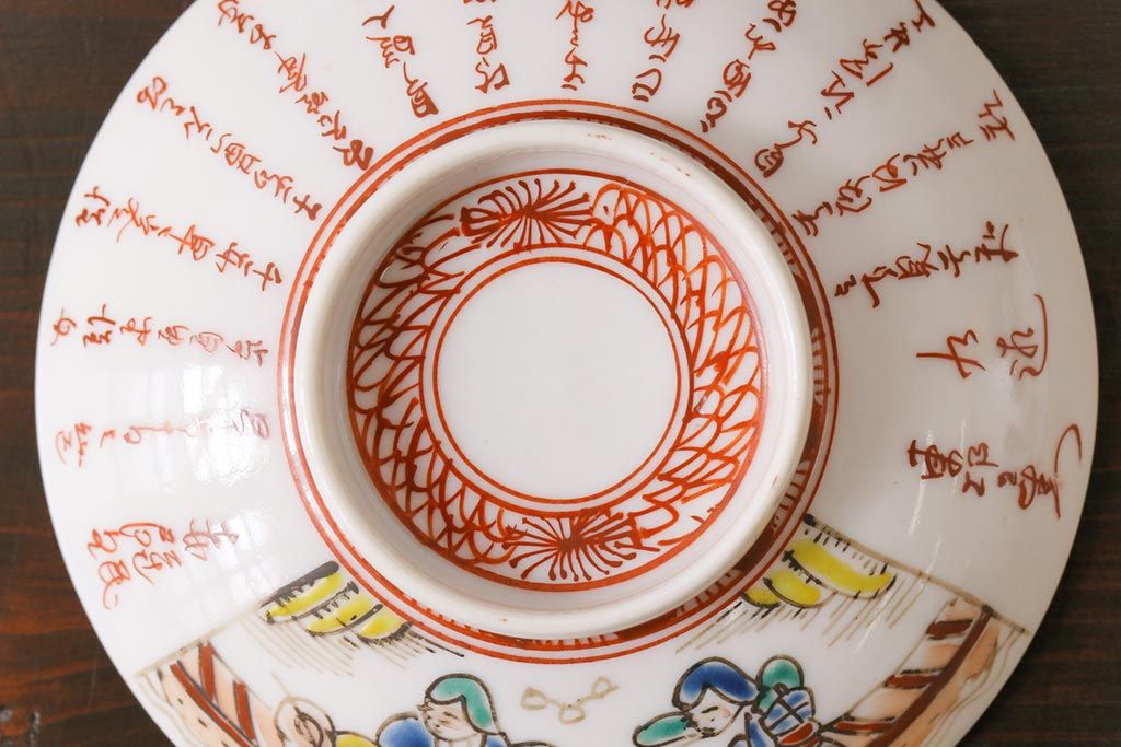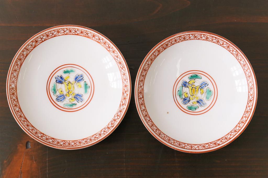 幕末明治期 赤絵染付 味わいある絵柄の蓋茶碗2客セット(和食器)(2)