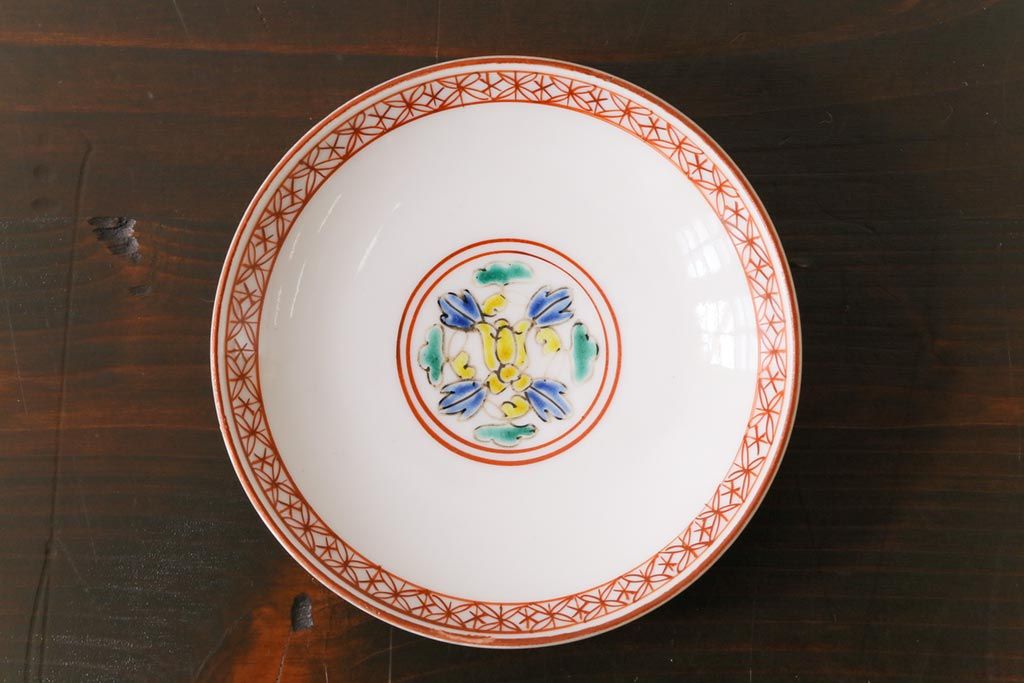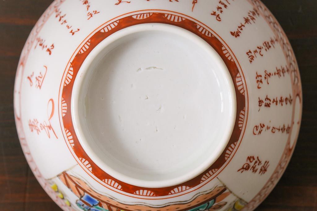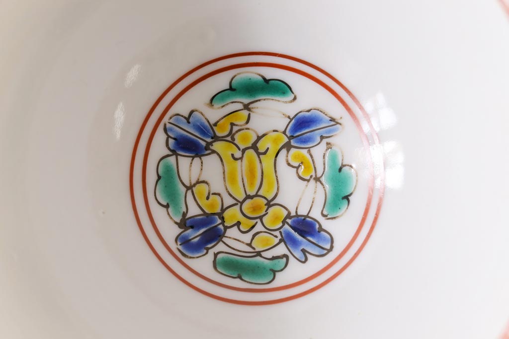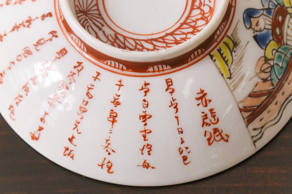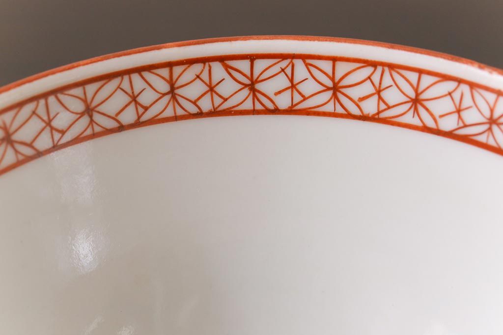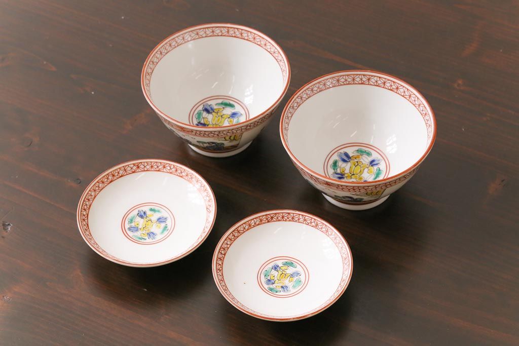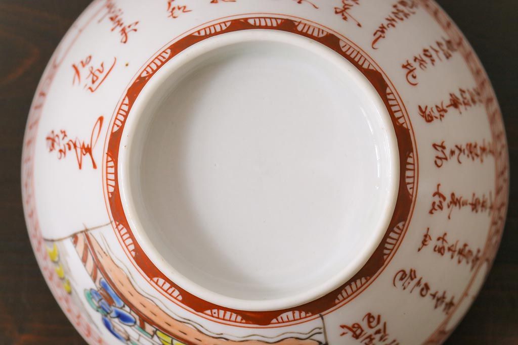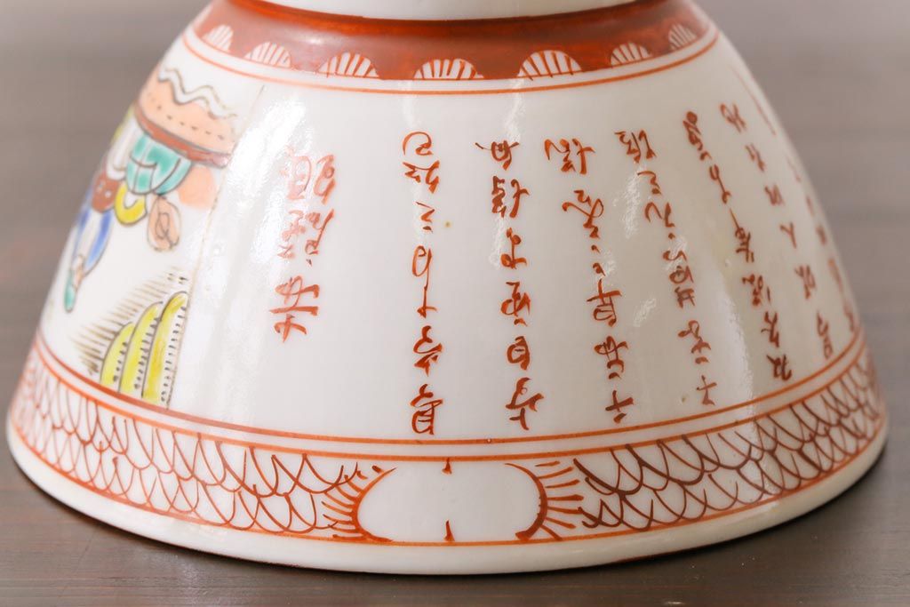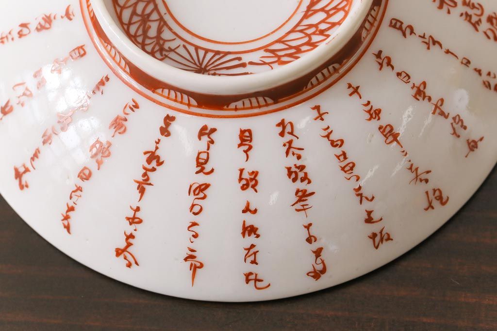 幕末明治期 赤絵染付 味わいある絵柄の蓋茶碗2客セット(和食器)(2)
