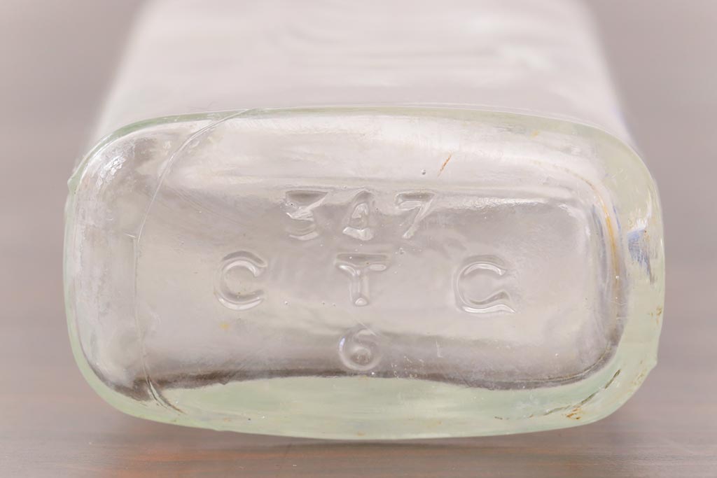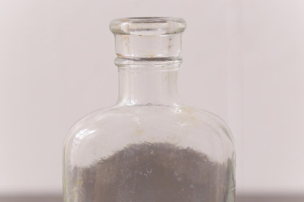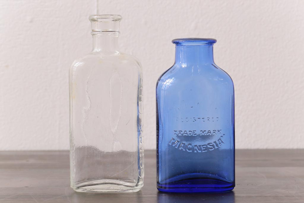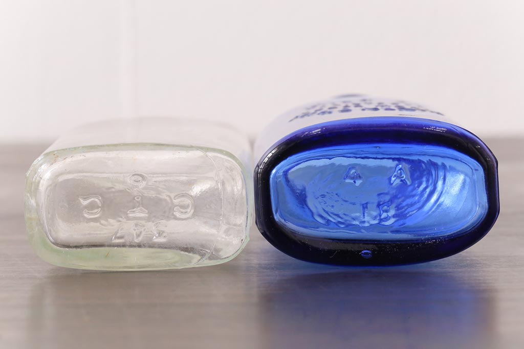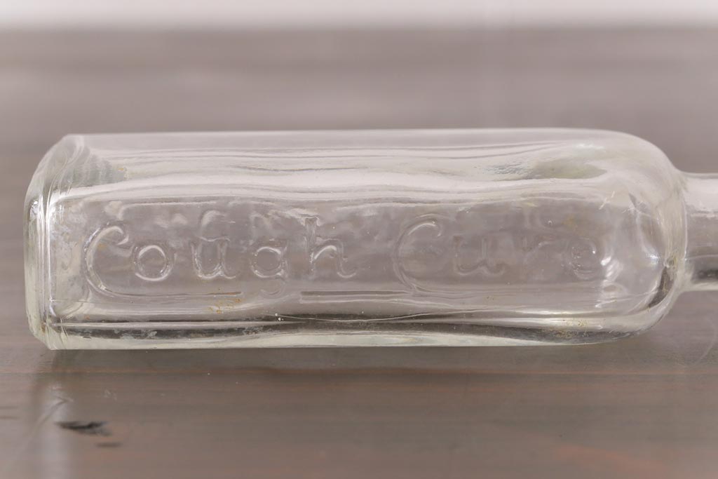 アンティーク雑貨 イギリスビンテージ レトロな雰囲気漂うエンボス入り薬瓶(ボトル、ガラスビン)2本セット