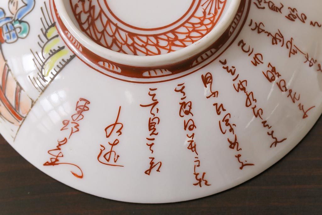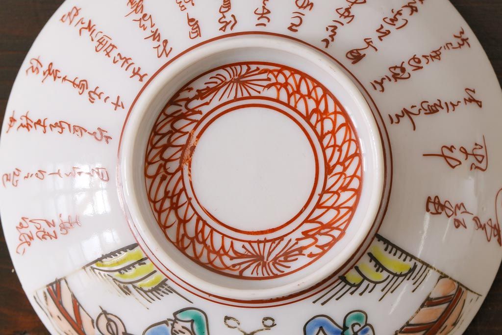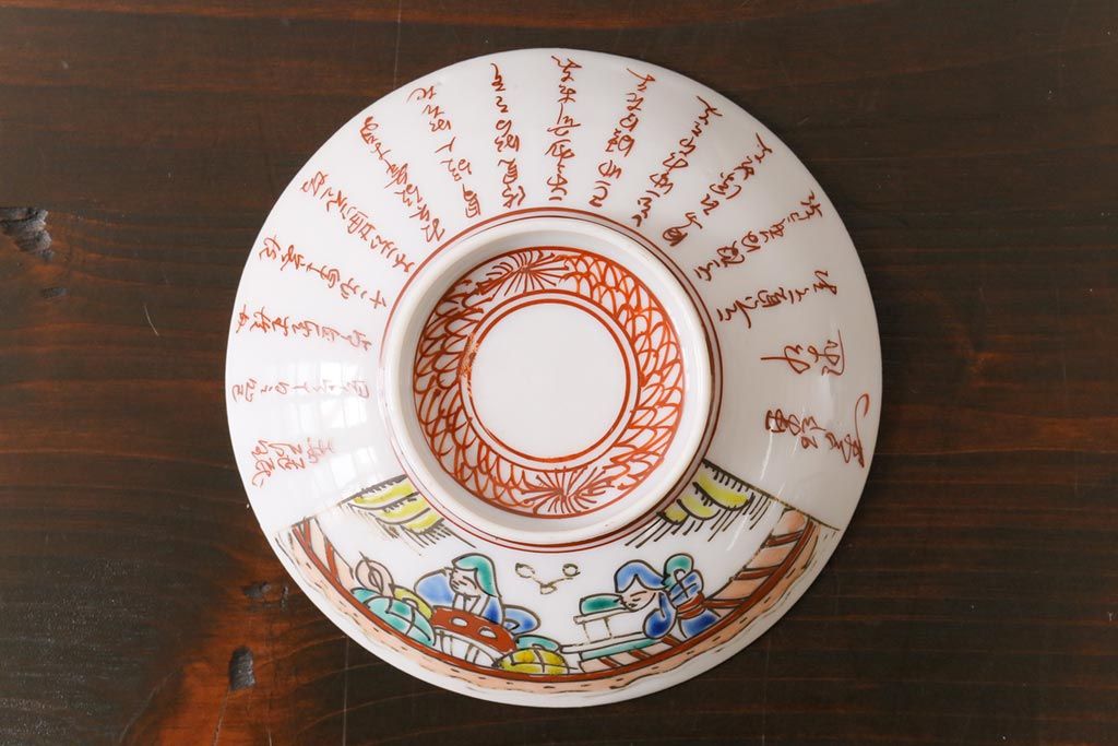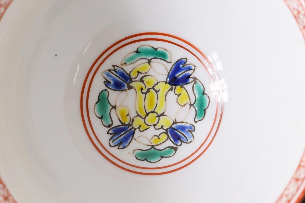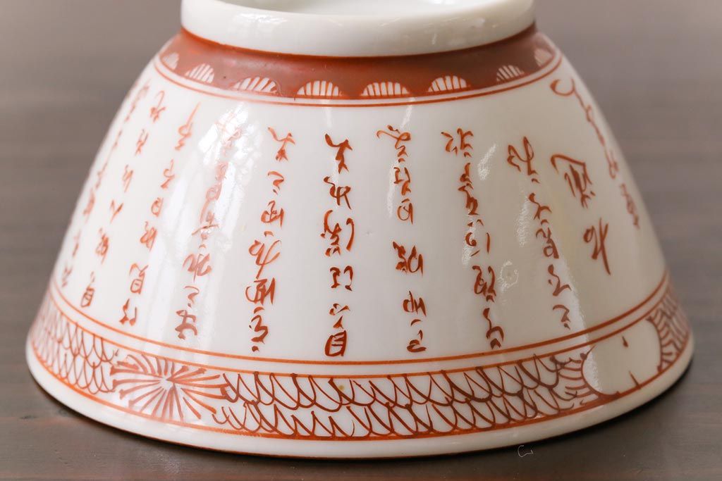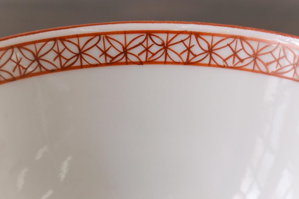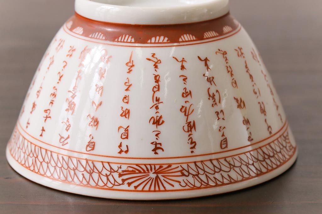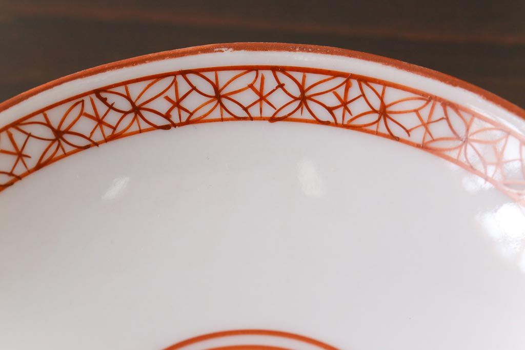 幕末明治期 赤絵染付 味わいある絵柄の蓋茶碗2客セット(和食器)(3)