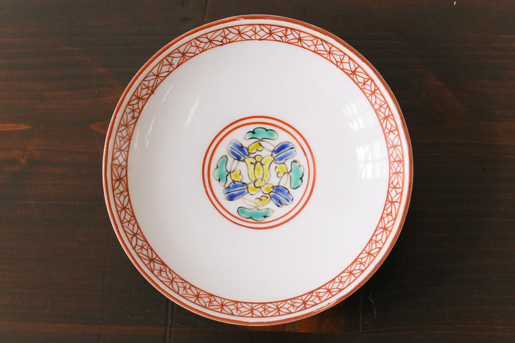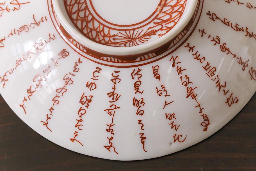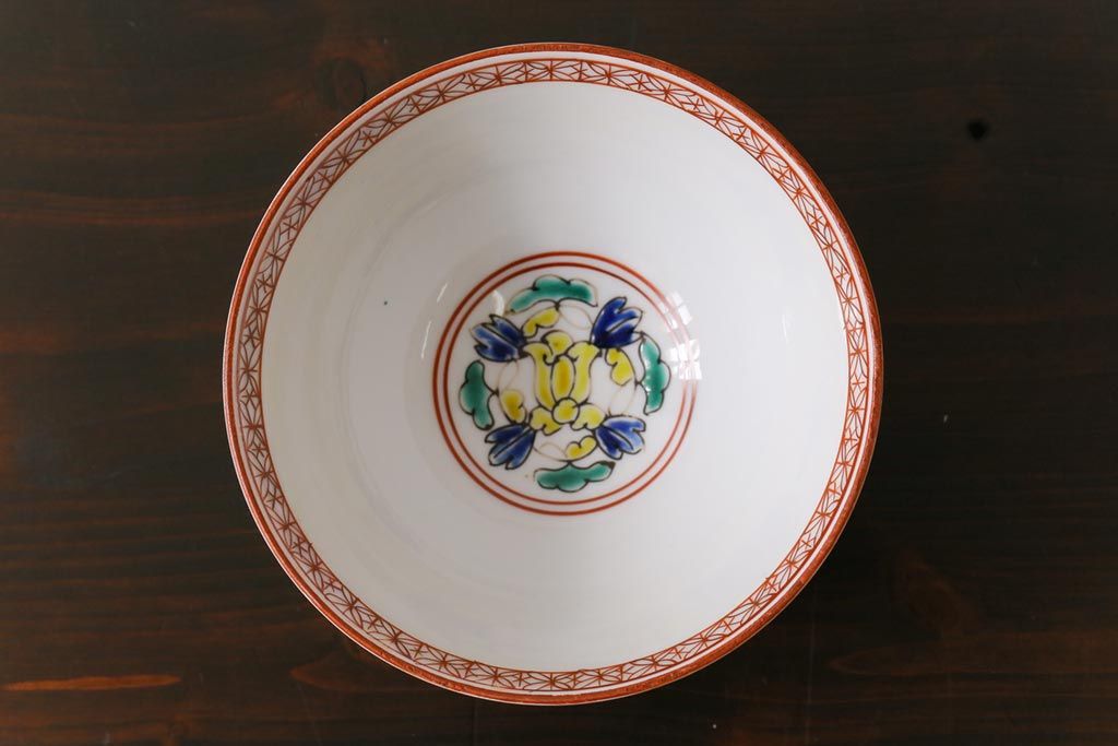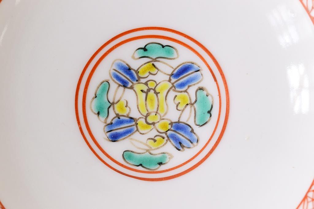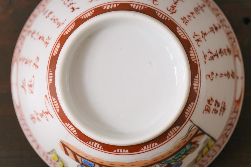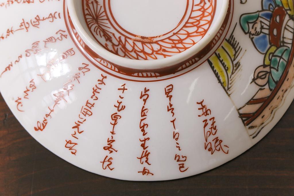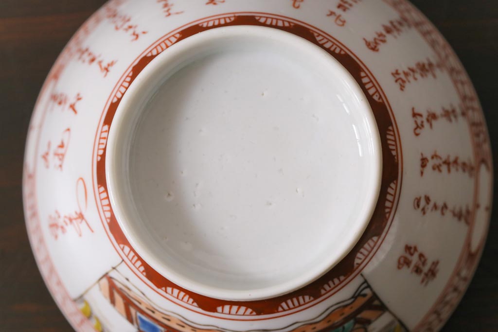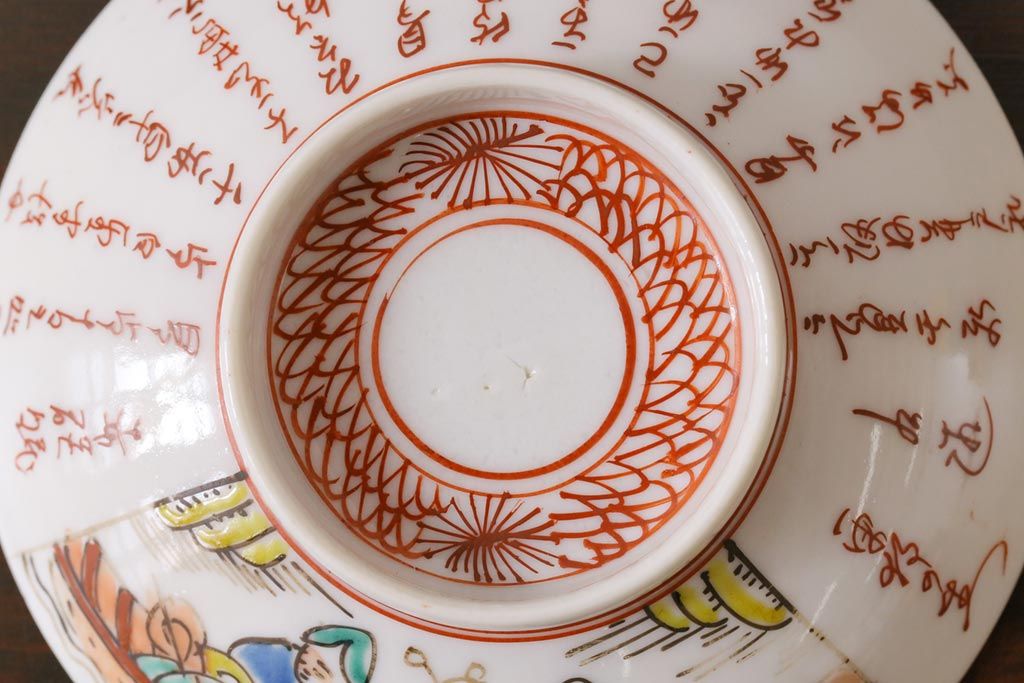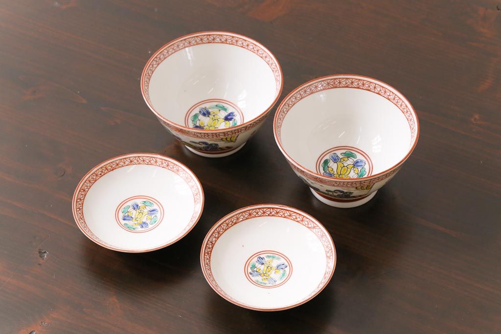 幕末明治期 赤絵染付 味わいある絵柄の蓋茶碗2客セット(和食器)(3)