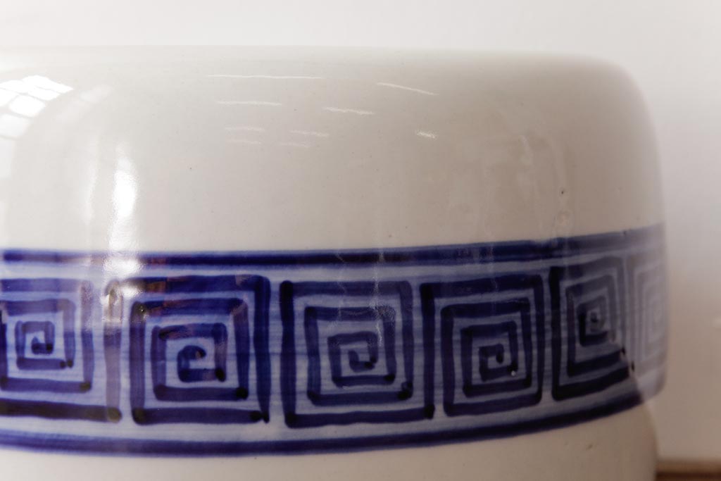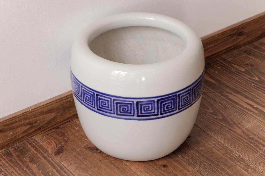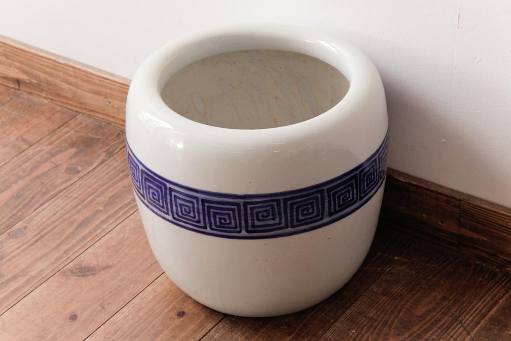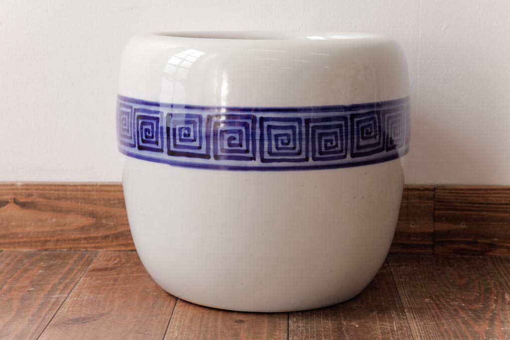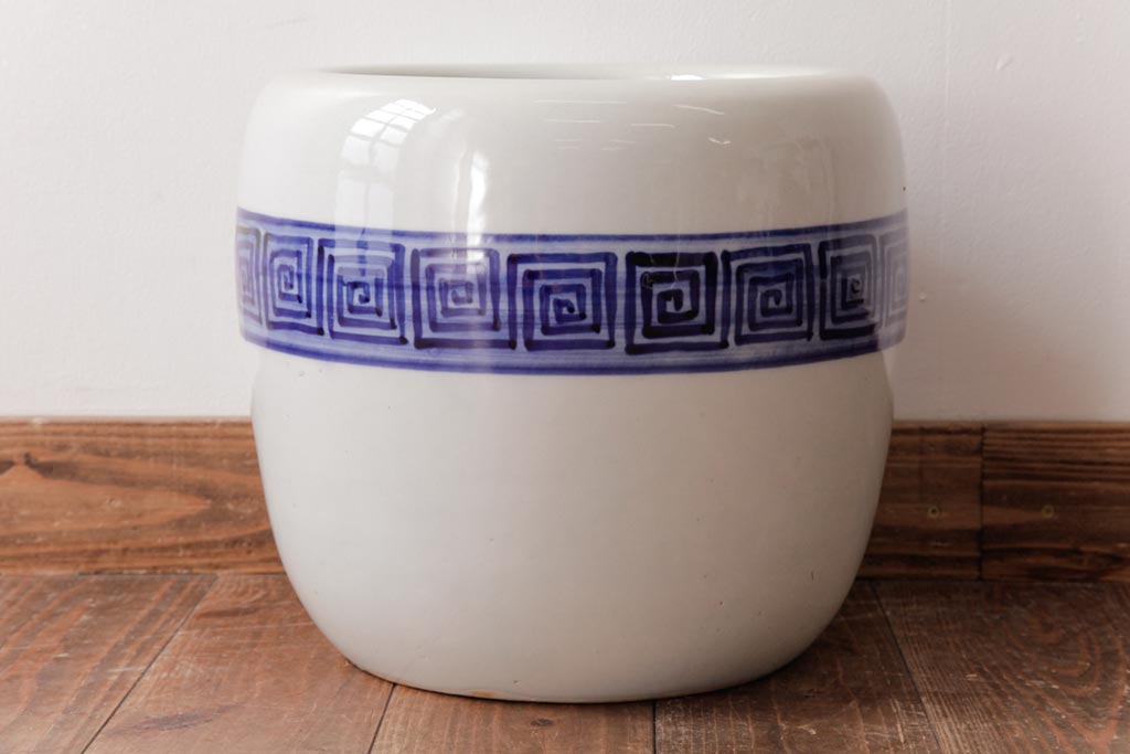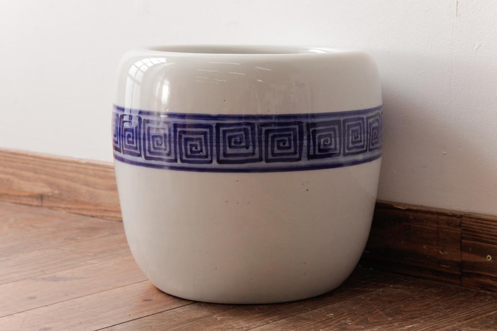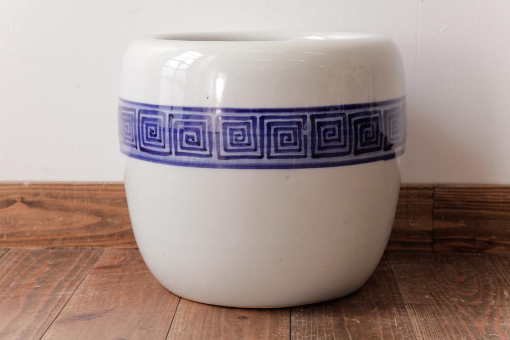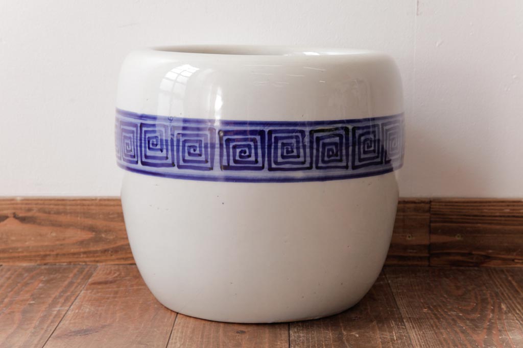 アンティーク雑貨 昭和初期 雷文模様 エキゾチックな雰囲気の瀬戸火鉢(鉢カバー)