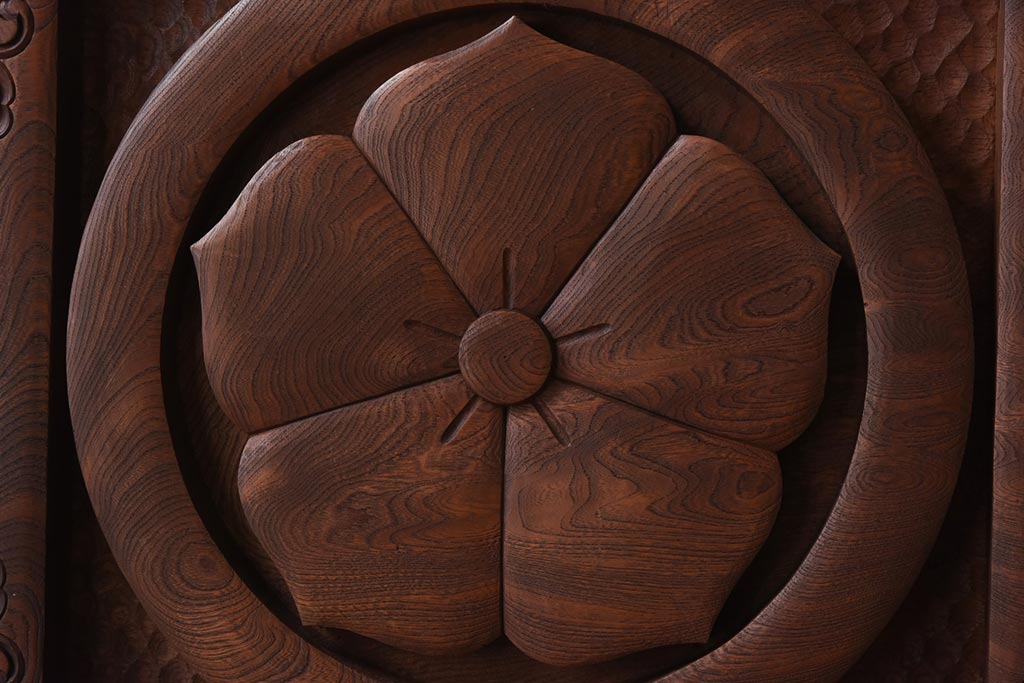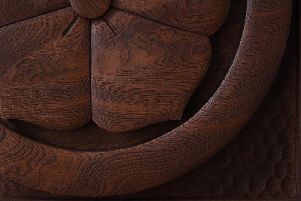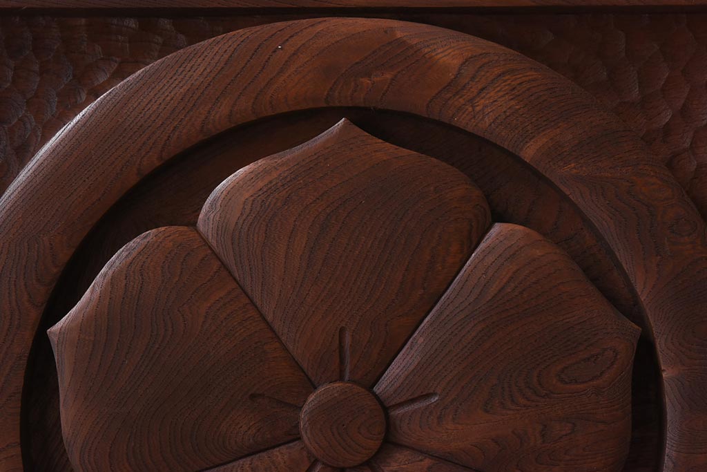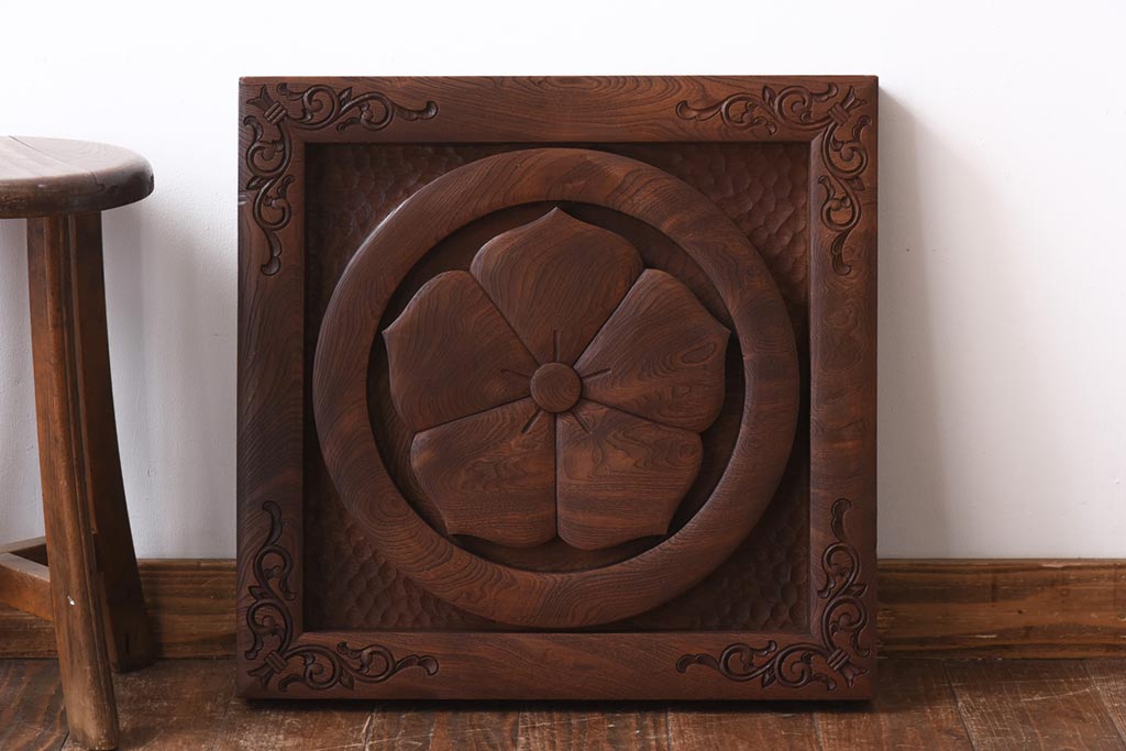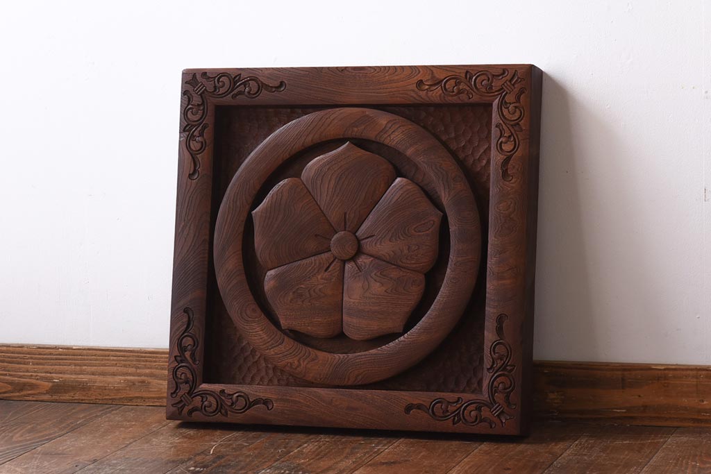 アンティーク雑貨 和製アンティーク 総ケヤキ材 特注品 彫刻 桔梗をモチーフにした家紋(飾り)
