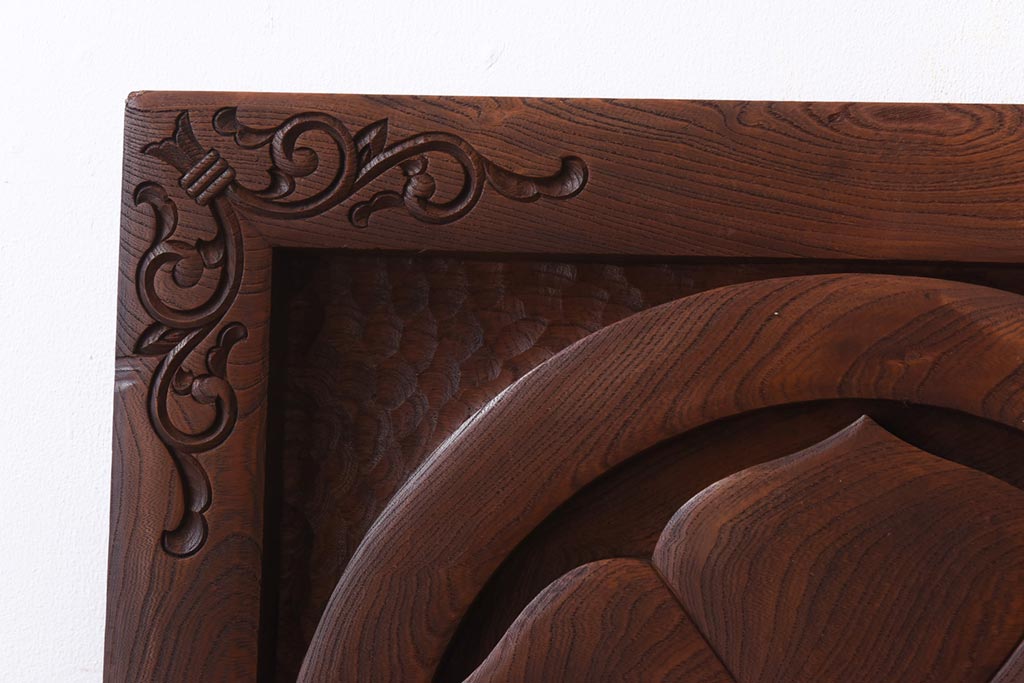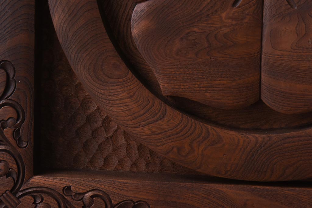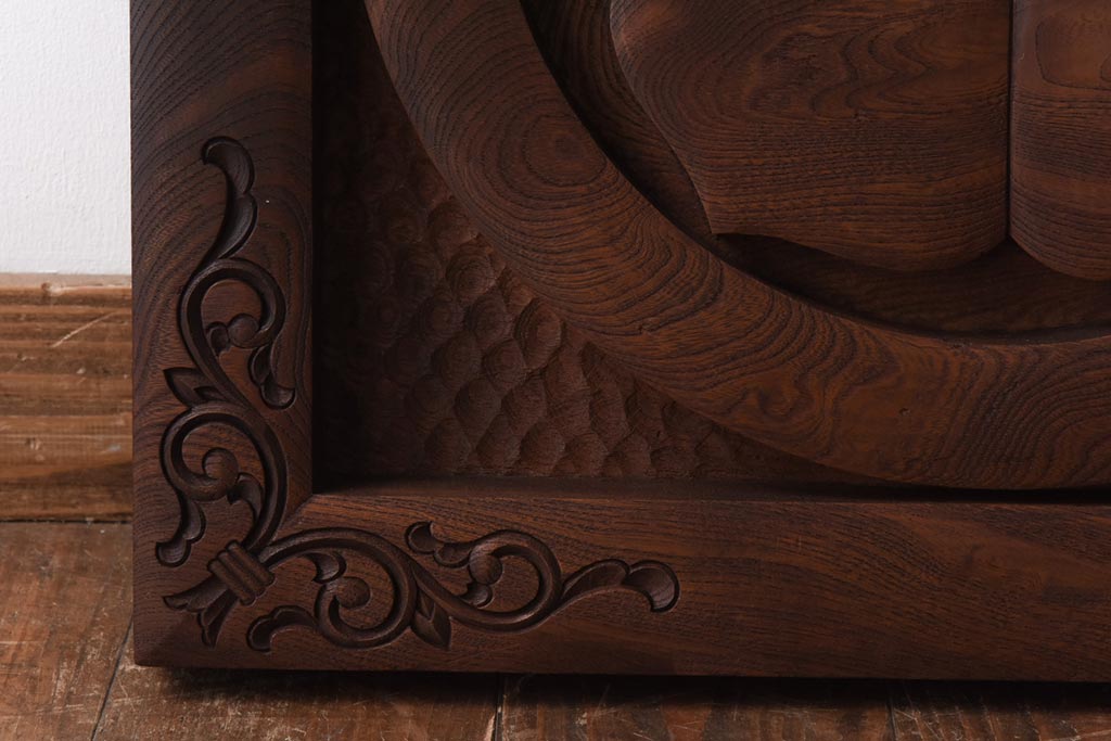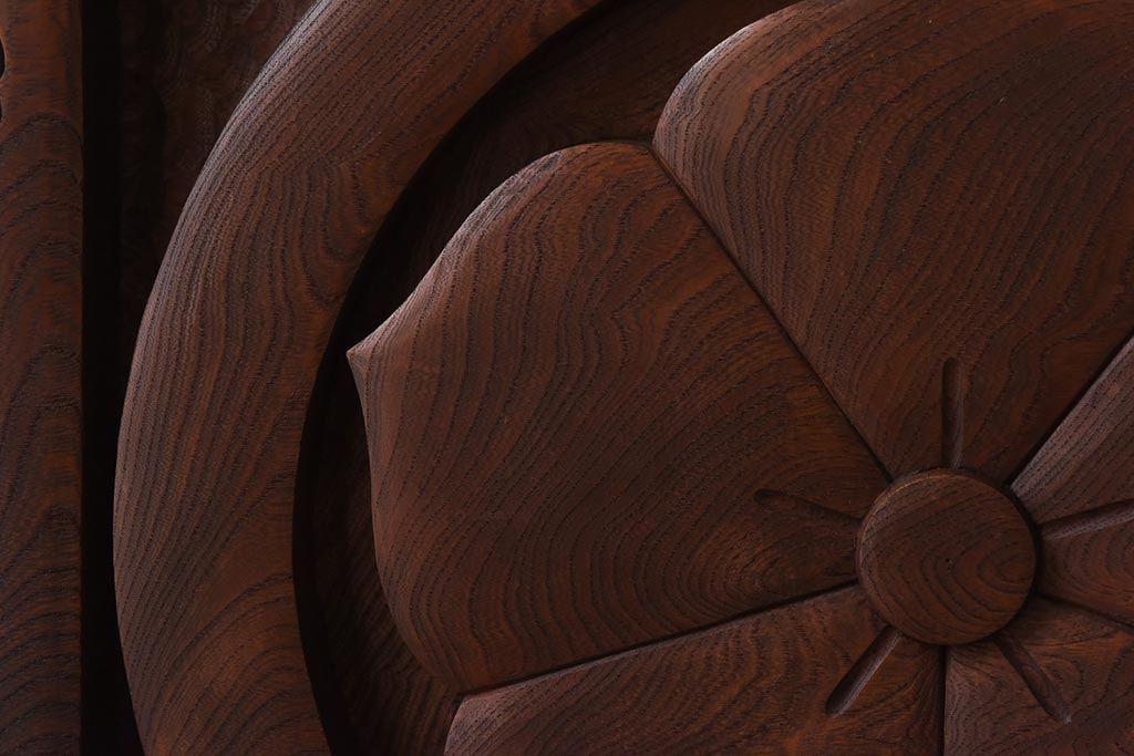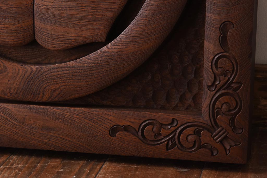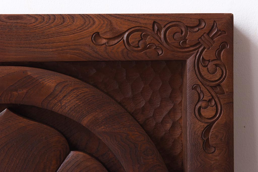 アンティーク雑貨 和製アンティーク 総ケヤキ材 特注品 彫刻 桔梗をモチーフにした家紋(飾り)