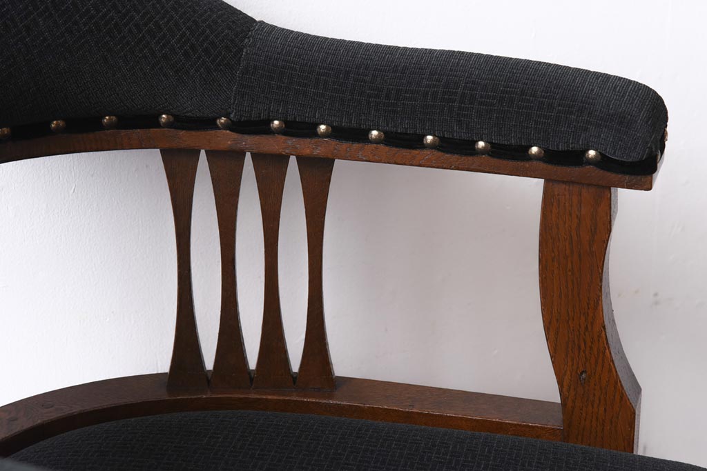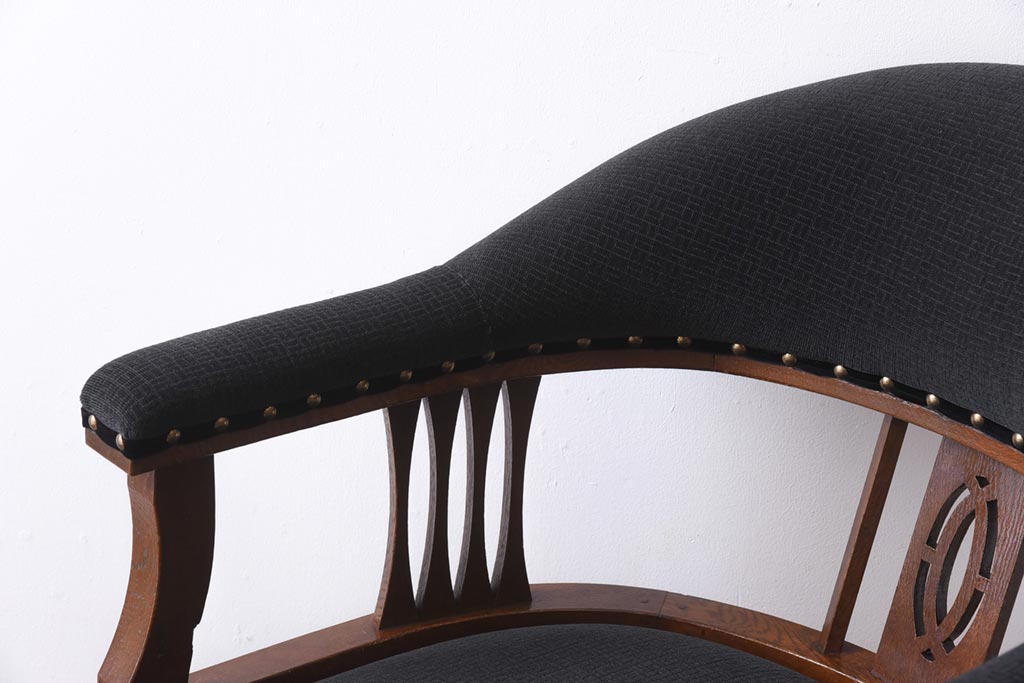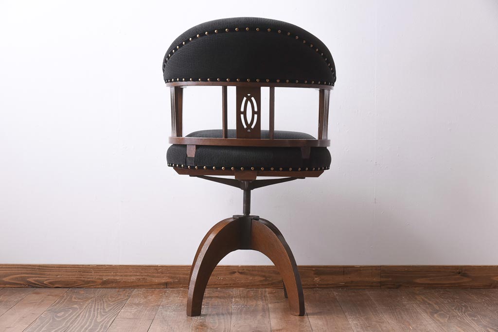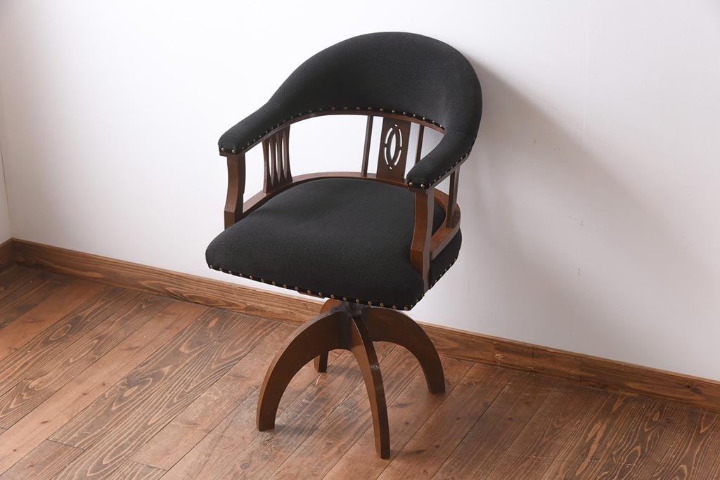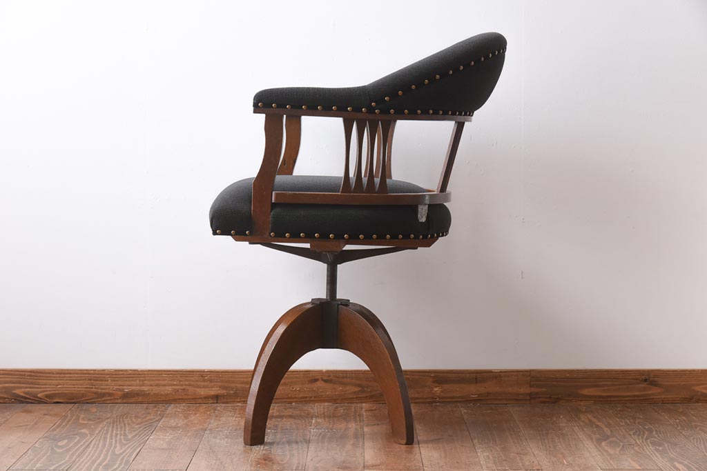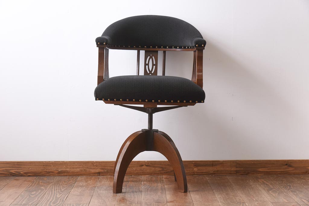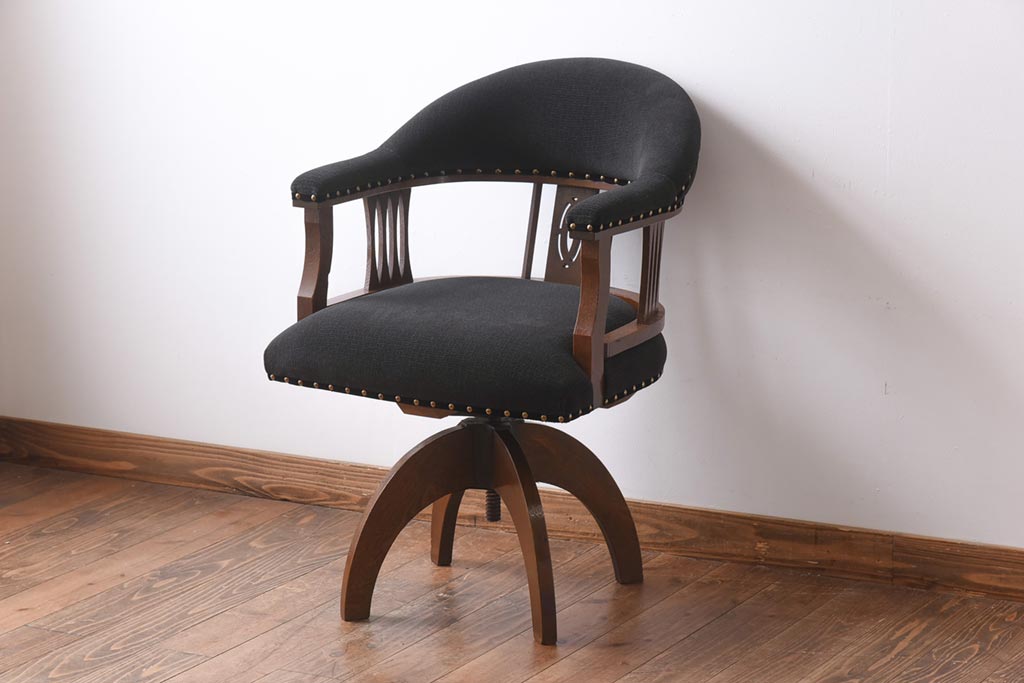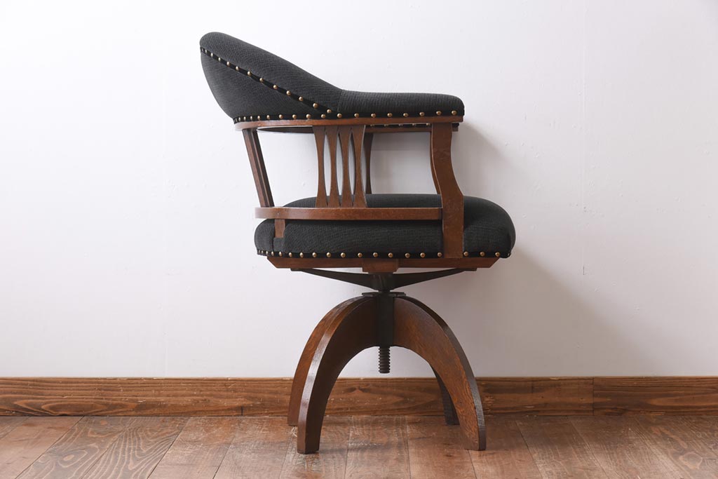 大正ロマン ナラ材 黒いファブリックがシックなドクターチェア(アームチェア、回転椅子)です。