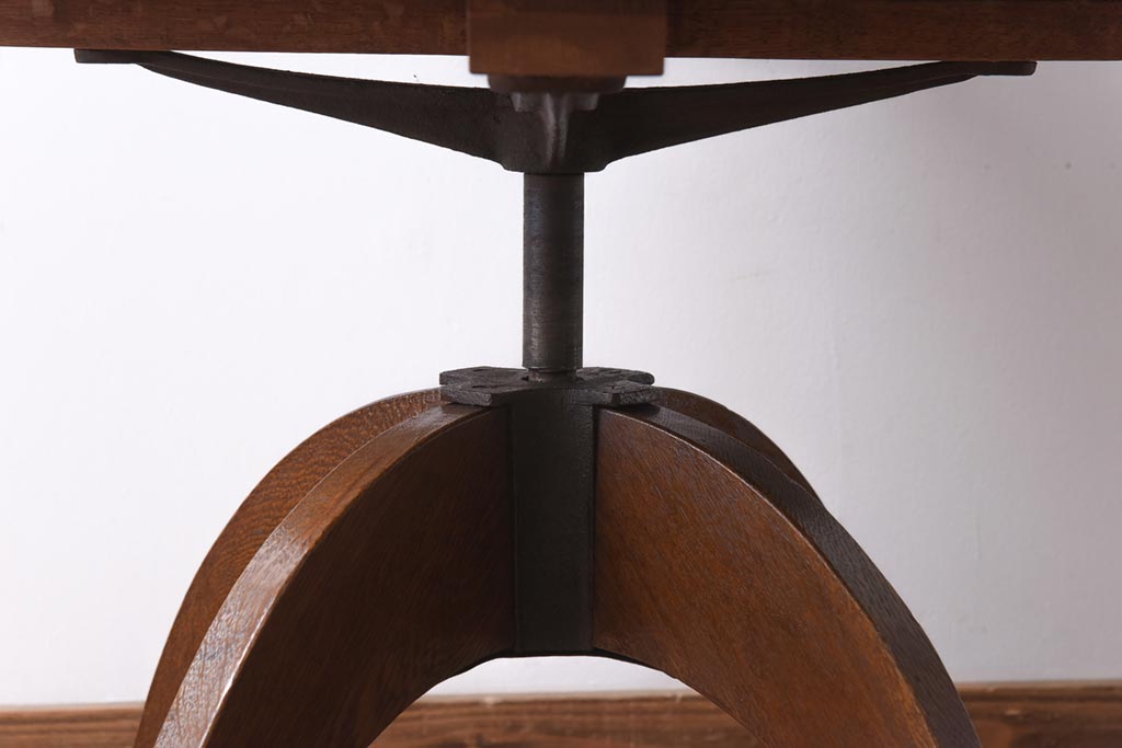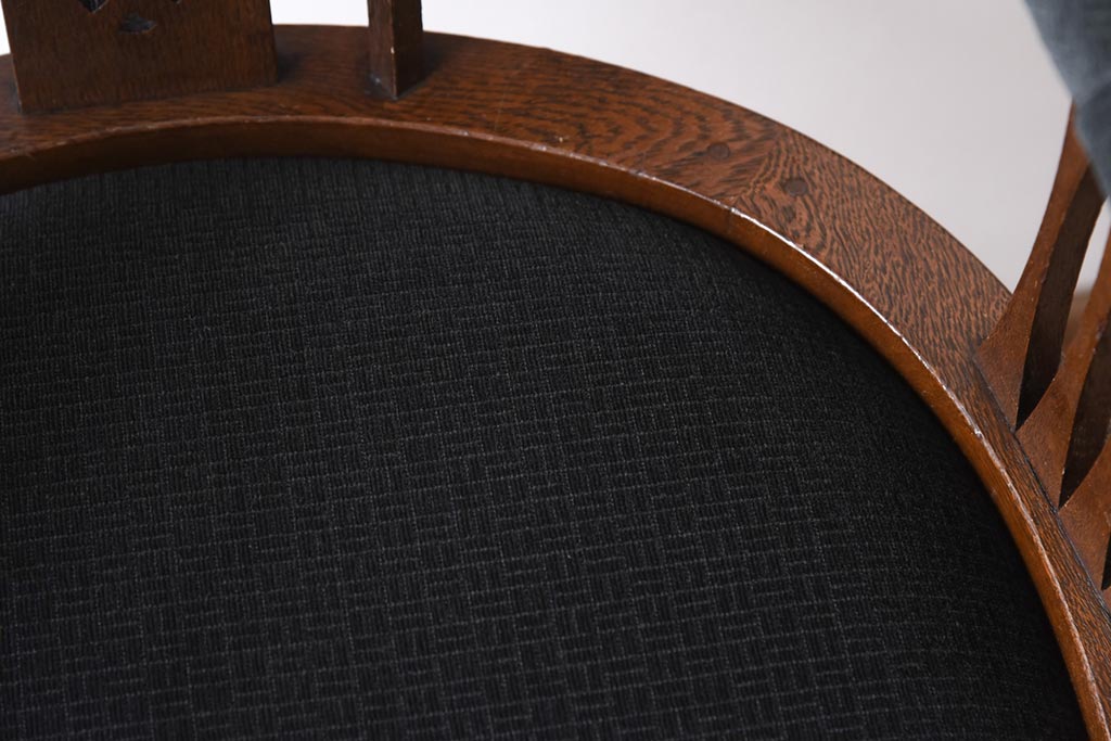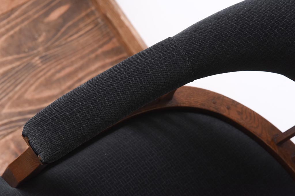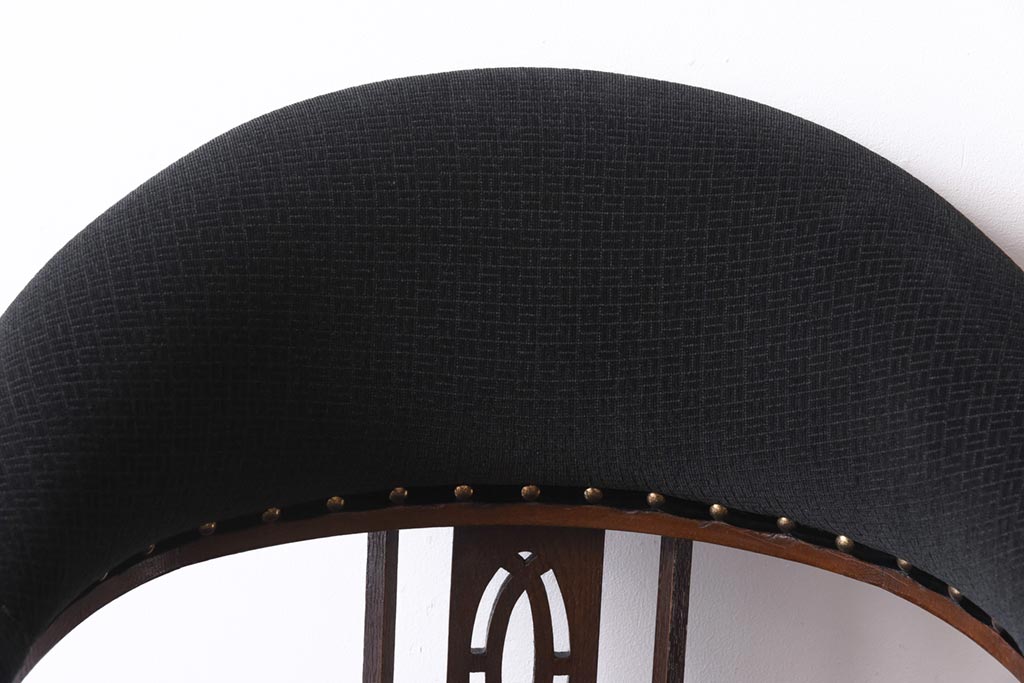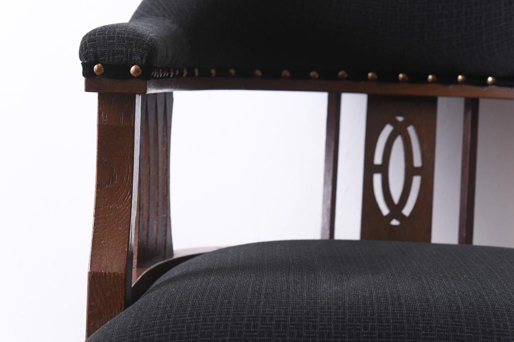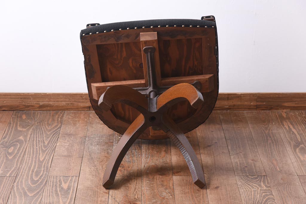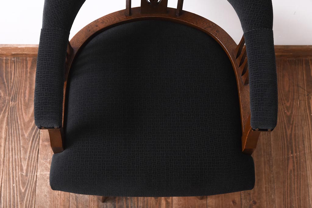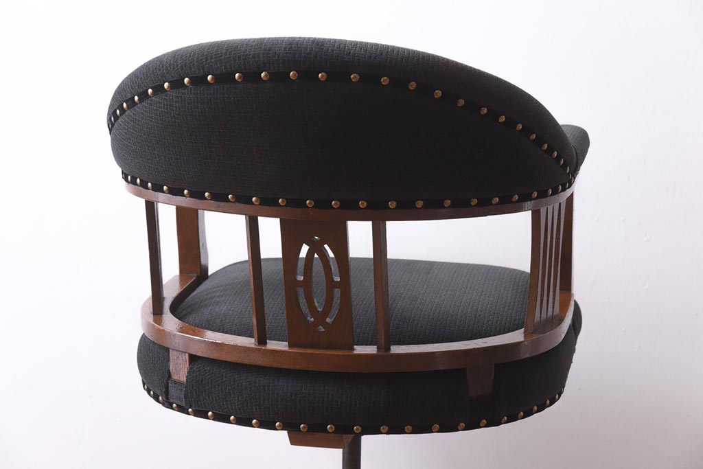 大正ロマン ナラ材 黒いファブリックがシックなドクターチェア(アームチェア、回転椅子)です。