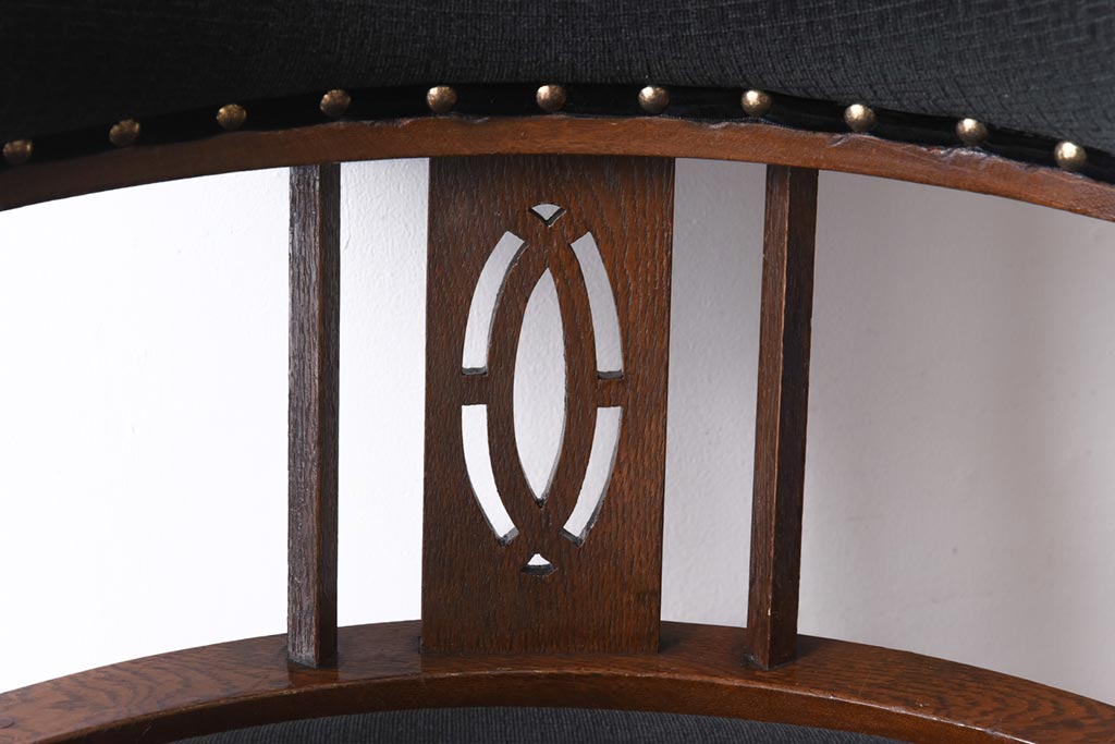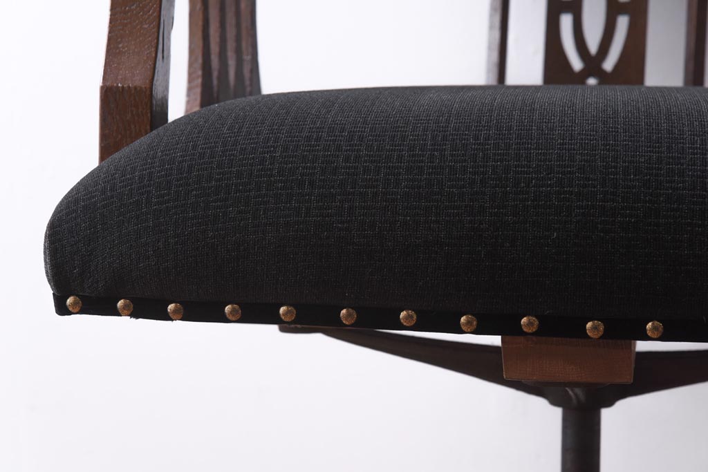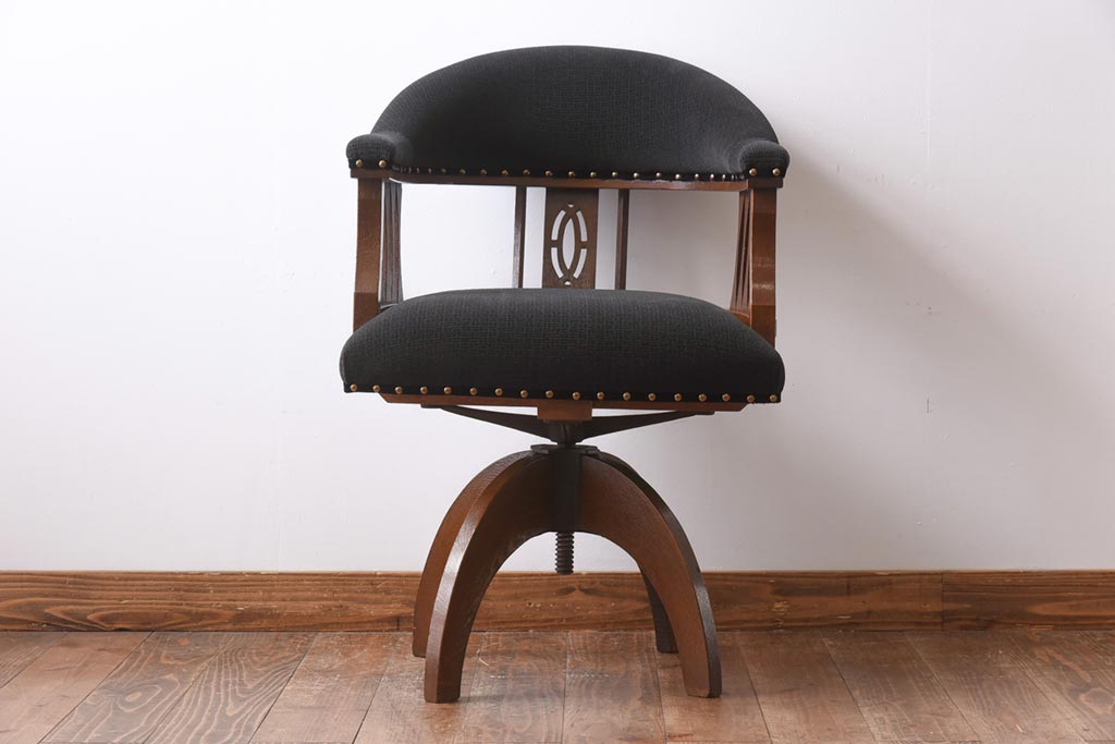 アンティーク家具 大正ロマン ナラ材 黒いファブリックがシックなドクターチェア(アームチェア、回転椅子)