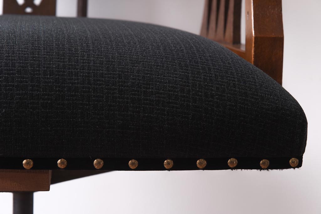 座面生地とクッション(座面内スポンジ)は当店にて張り替えておりますので、しっかりとしております。