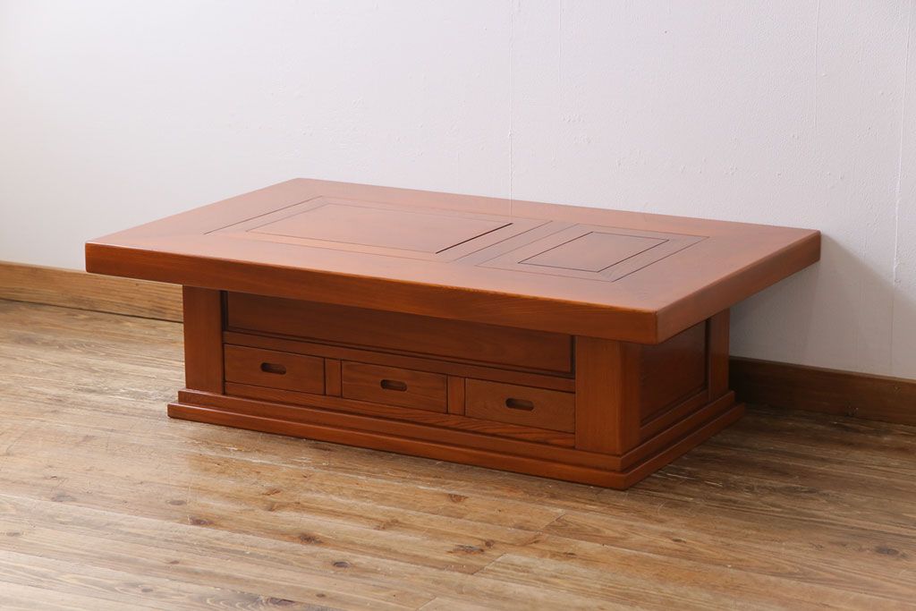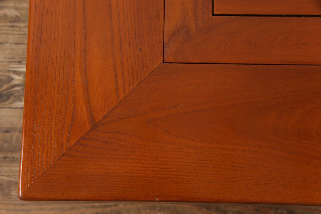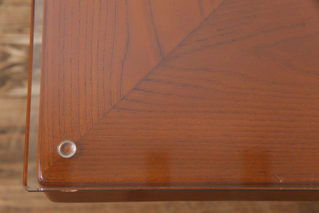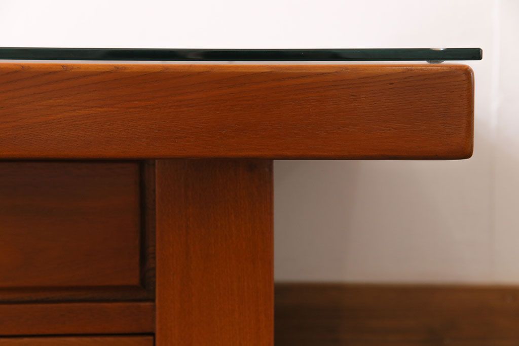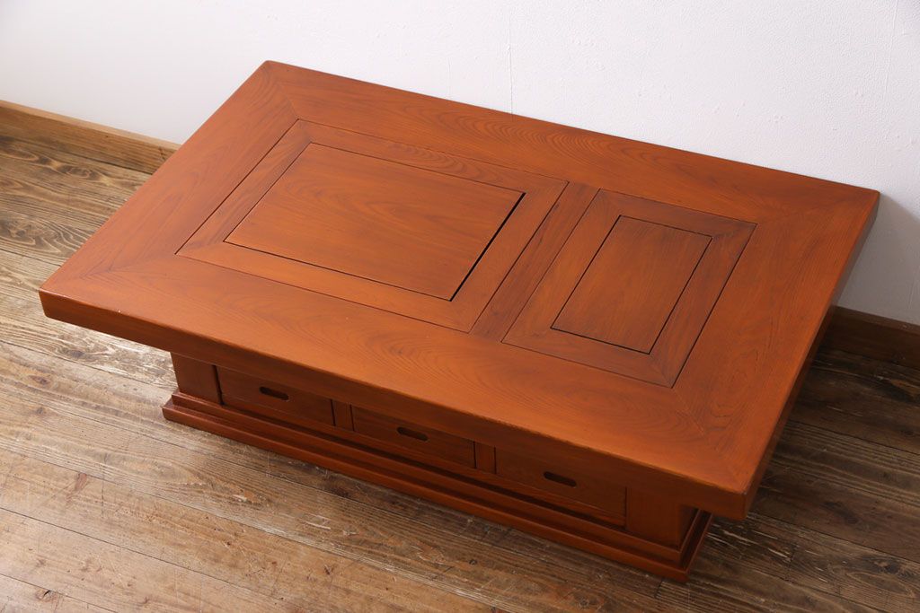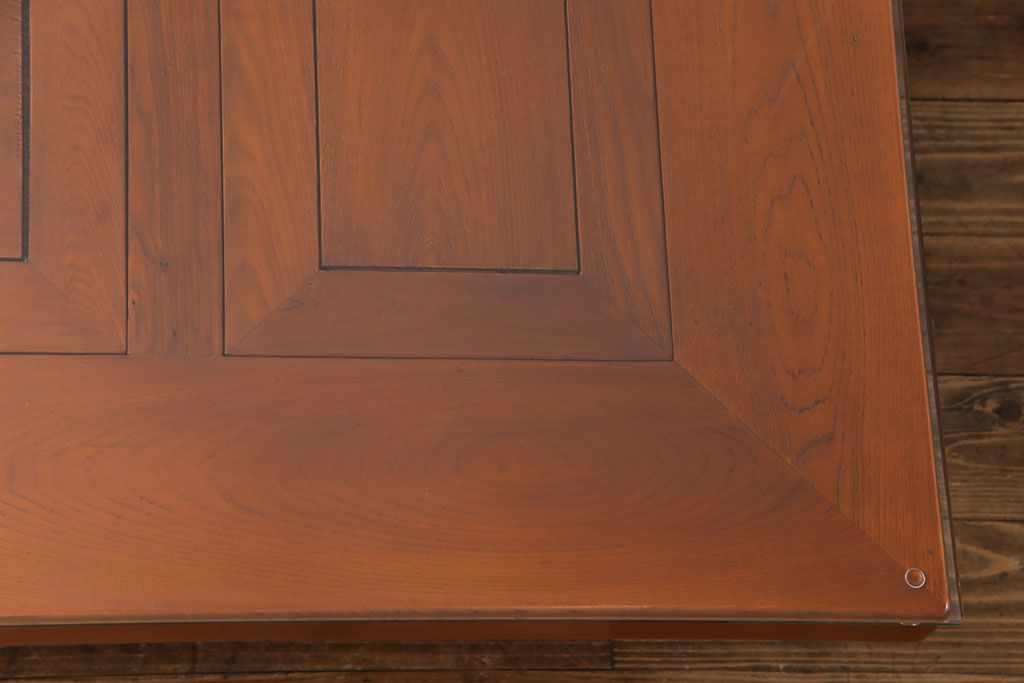 ラフジュ工房> テーブル> センターテーブル・ローテーブル > アンティーク雑貨 中古 総ケヤキ材 ガラス天板付き 四尺 杢目が美しい関西火鉢(長火鉢、囲炉裏、テーブル)(2)