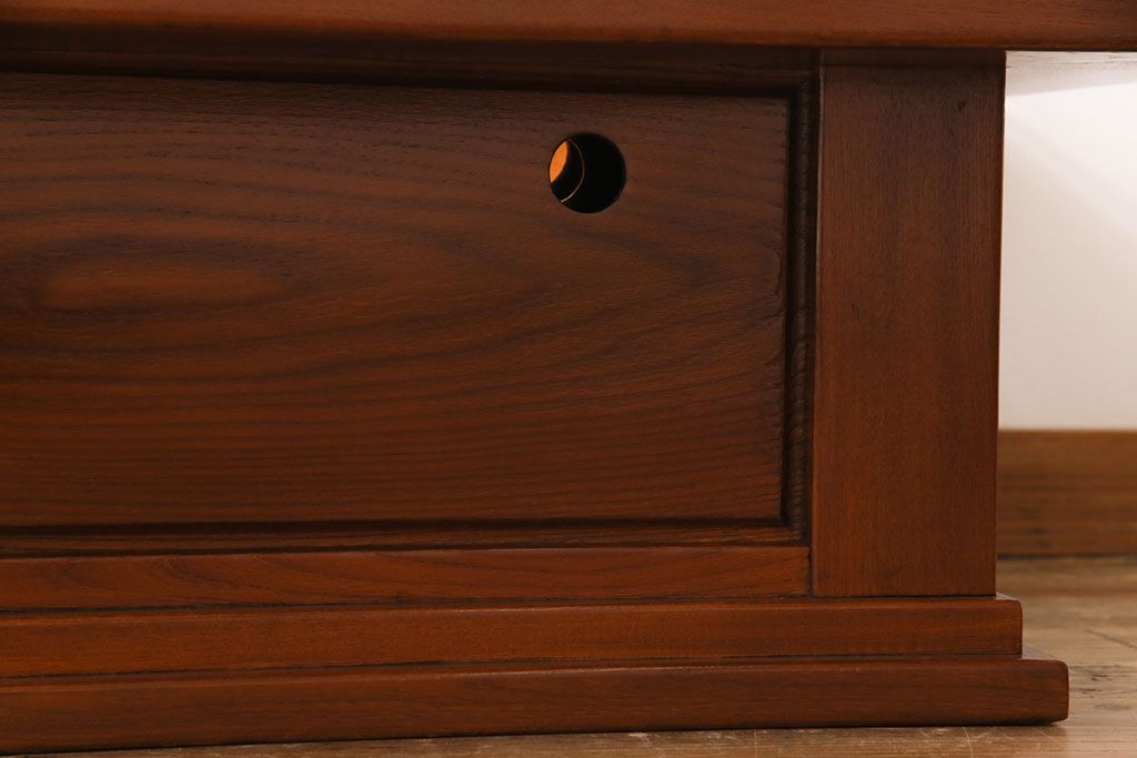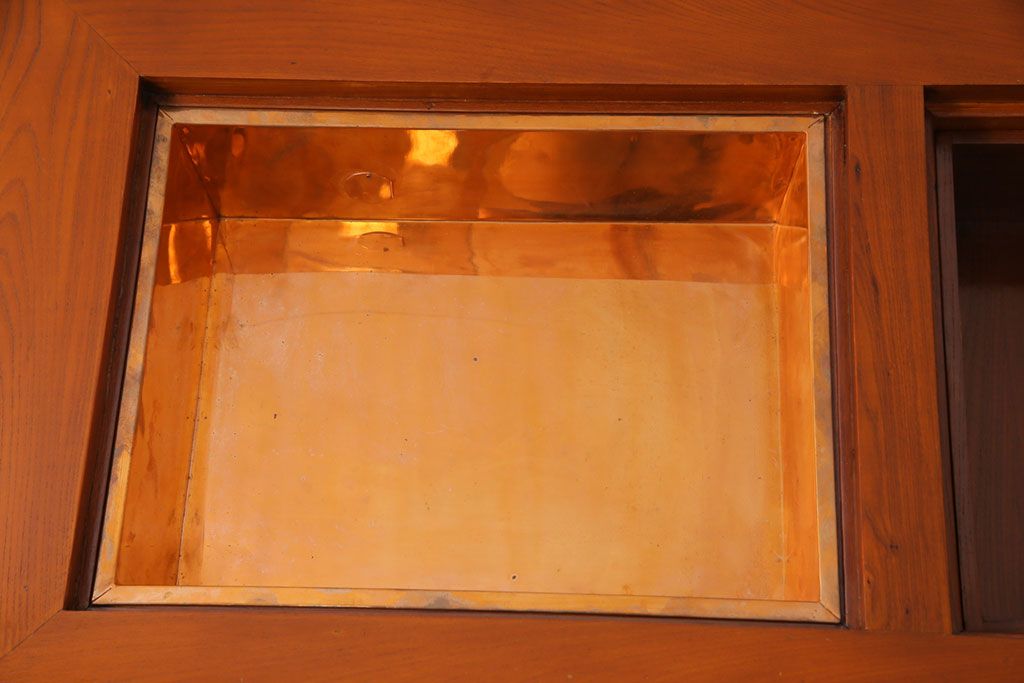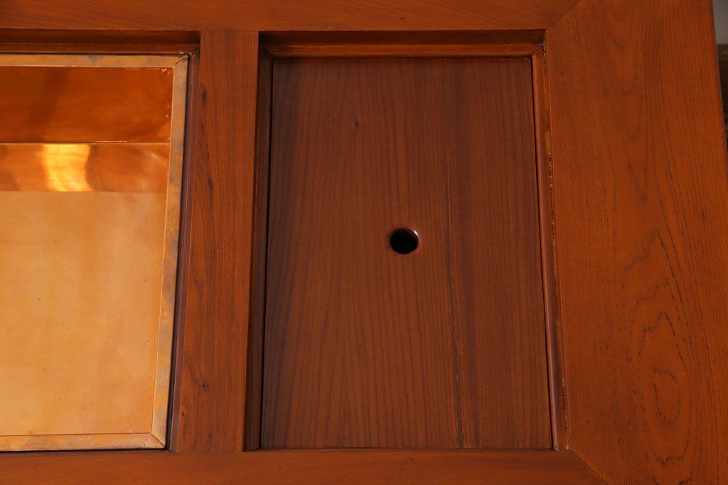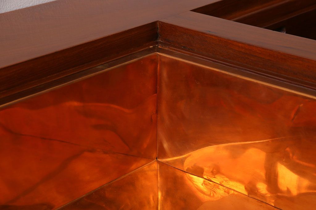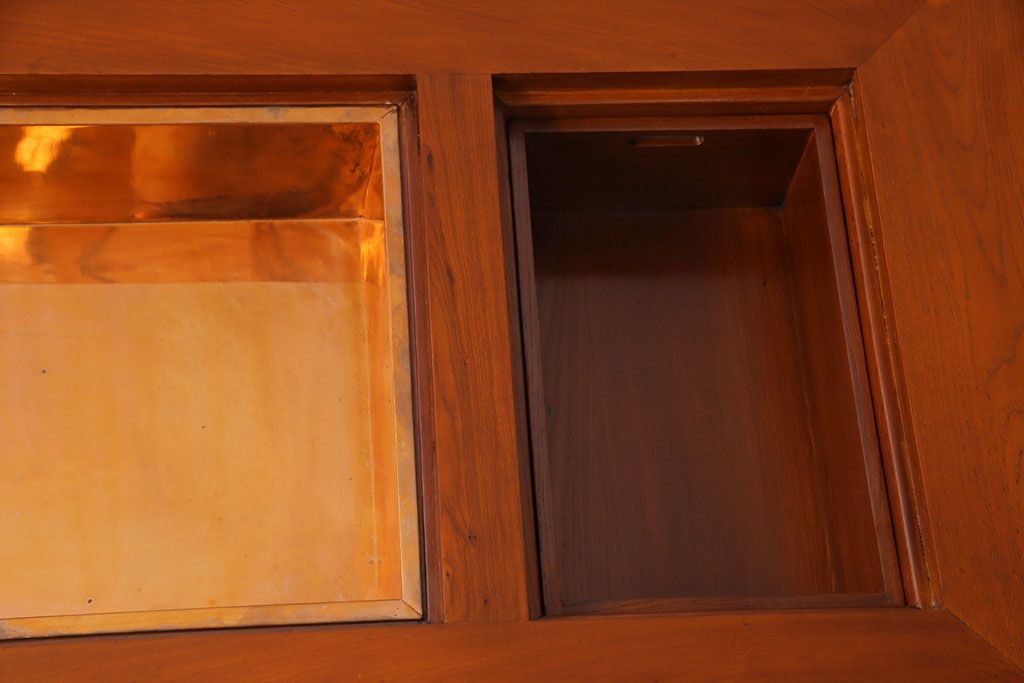 ラフジュ工房> 火鉢> 長火鉢 > アンティーク雑貨 中古 総ケヤキ材 ガラス天板付き 四尺 杢目が美しい関西火鉢(長火鉢、囲炉裏、テーブル)(2)