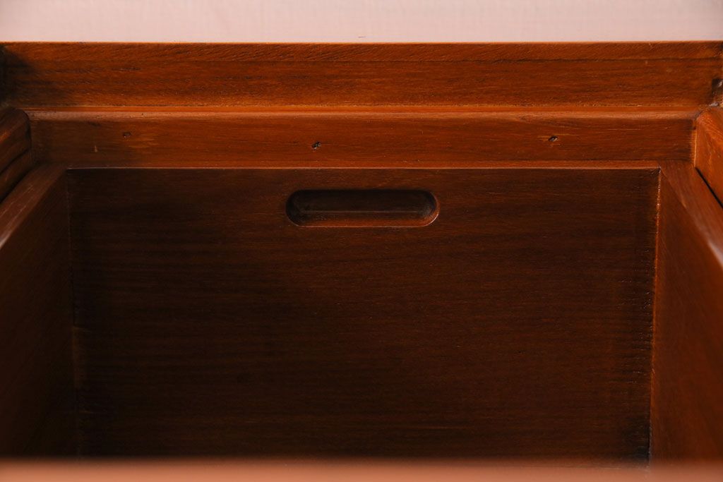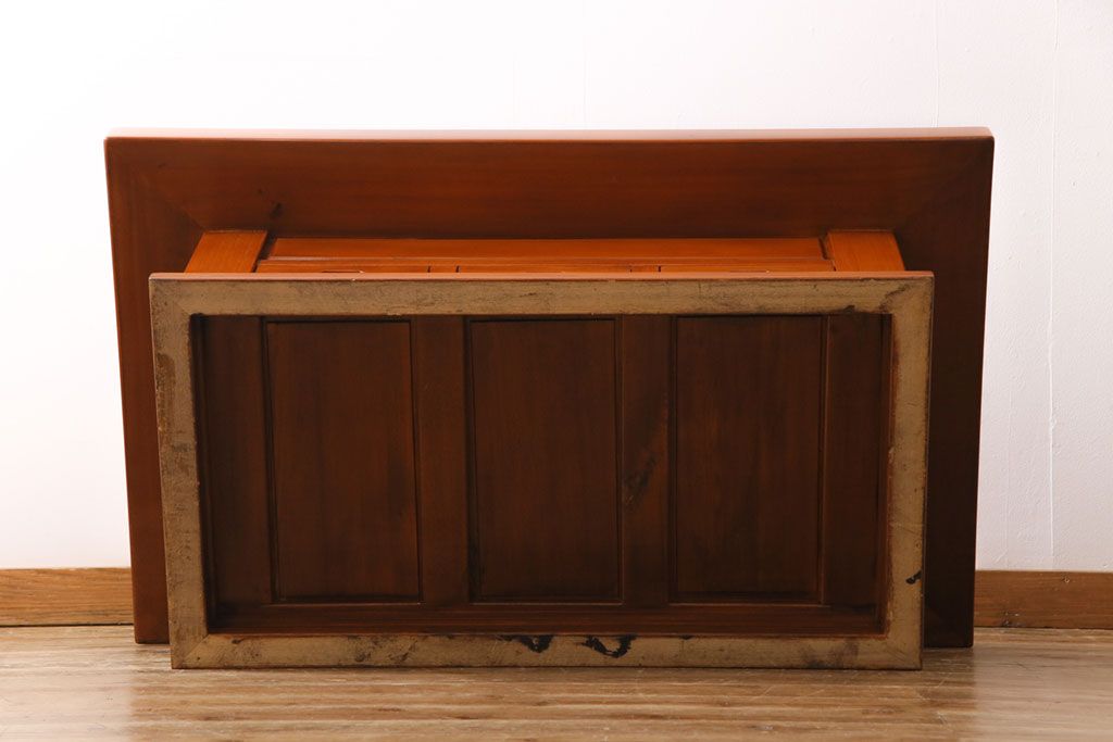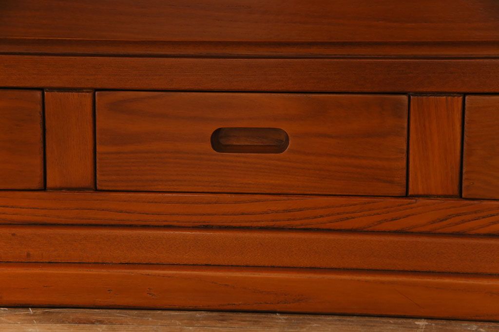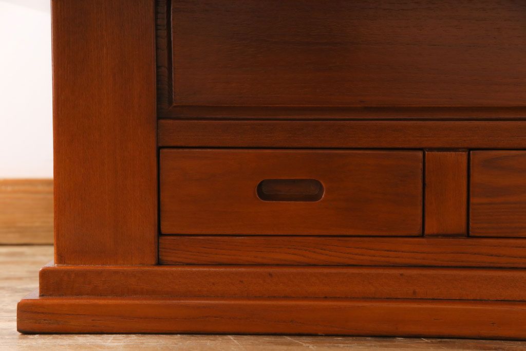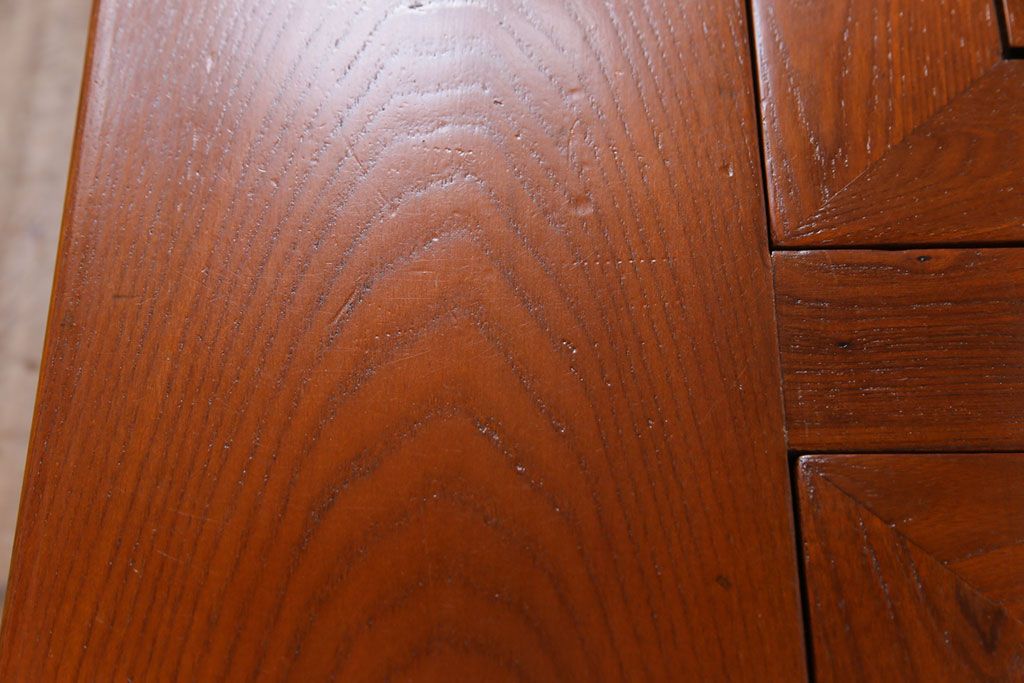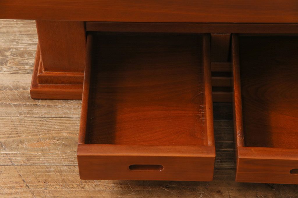 ラフジュ工房> 火鉢> 長火鉢 > アンティーク雑貨 中古 総ケヤキ材 ガラス天板付き 四尺 杢目が美しい関西火鉢(長火鉢、囲炉裏、テーブル)(2)