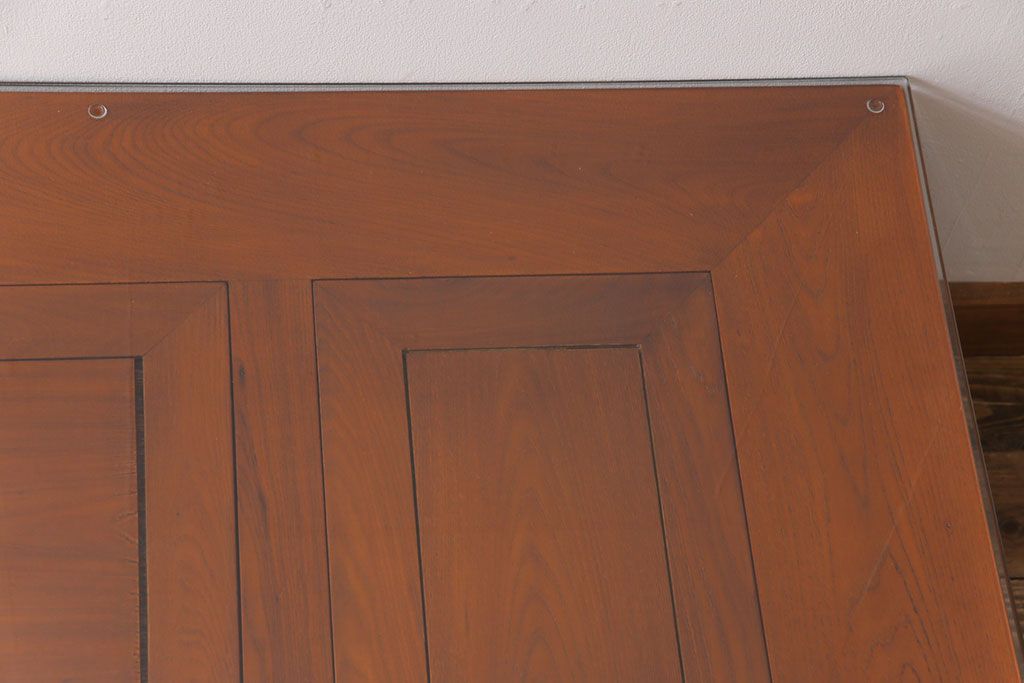 アンティーク雑貨 中古 総ケヤキ材 ガラス天板付き 四尺 杢目が美しい関西火鉢(長火鉢、囲炉裏、テーブル)(2)
