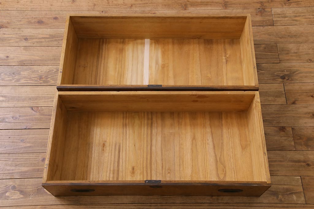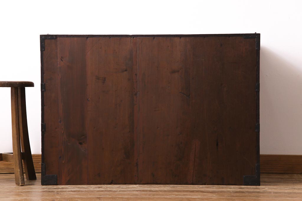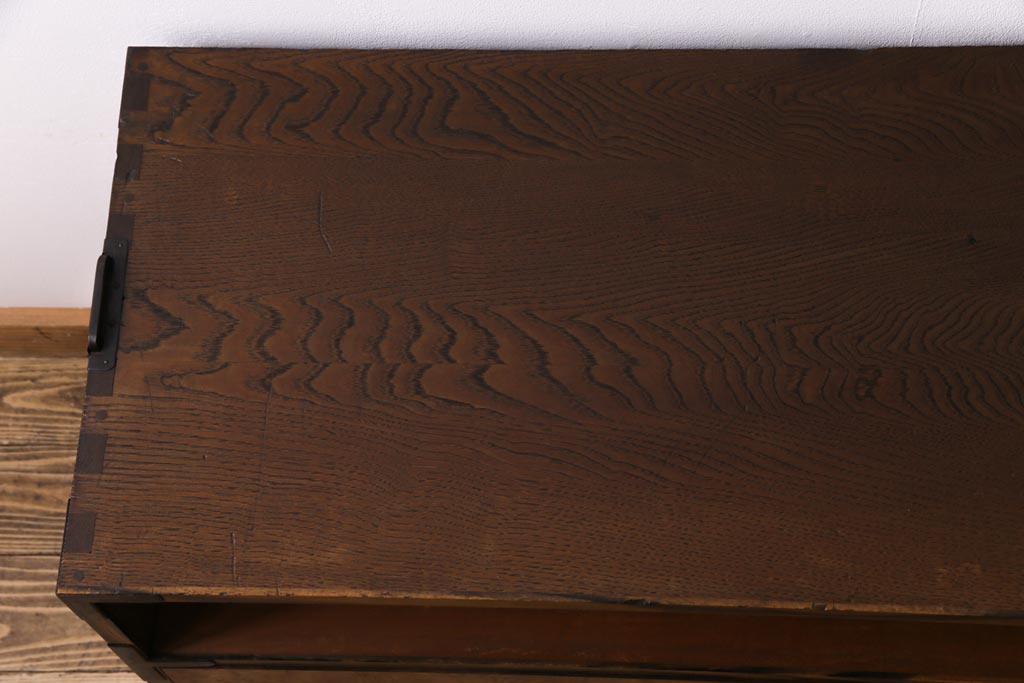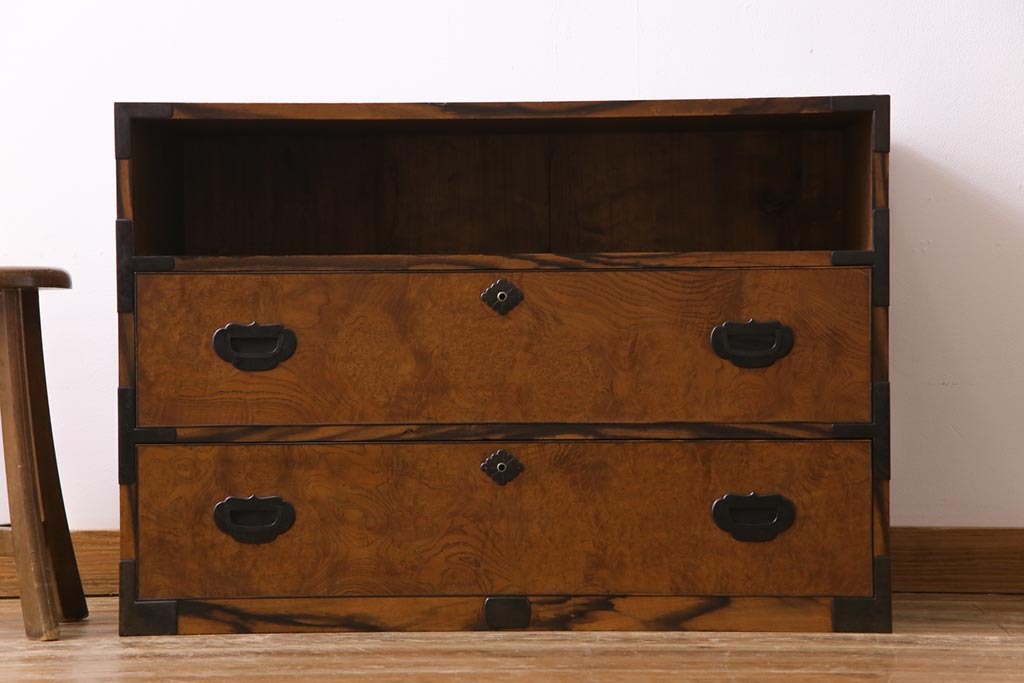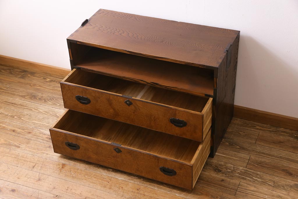 ラフジュ工房> 和箪笥> 衣装箪笥 > アンティーク家具 和製アンティーク 前面栗材鳥眼杢 リメイク 黒柿の縁が魅力的なサイドチェスト(サイドボード、収納棚、引き出し)