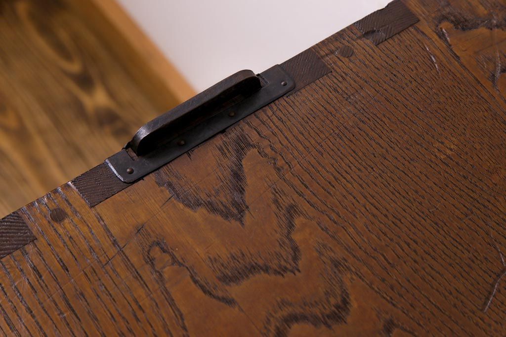 ラフジュ工房> チェスト・引き出し> ローチェスト > アンティーク家具 和製アンティーク 前面栗材鳥眼杢 リメイク 黒柿の縁が魅力的なサイドチェスト(サイドボード、収納棚、引き出し)