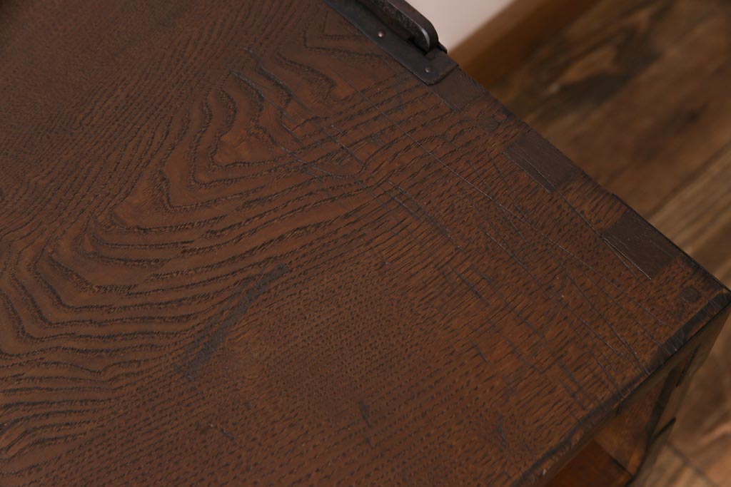 ラフジュ工房> 和箪笥 > アンティーク家具 和製アンティーク 前面栗材鳥眼杢 リメイク 黒柿の縁が魅力的なサイドチェスト(サイドボード、収納棚、引き出し)