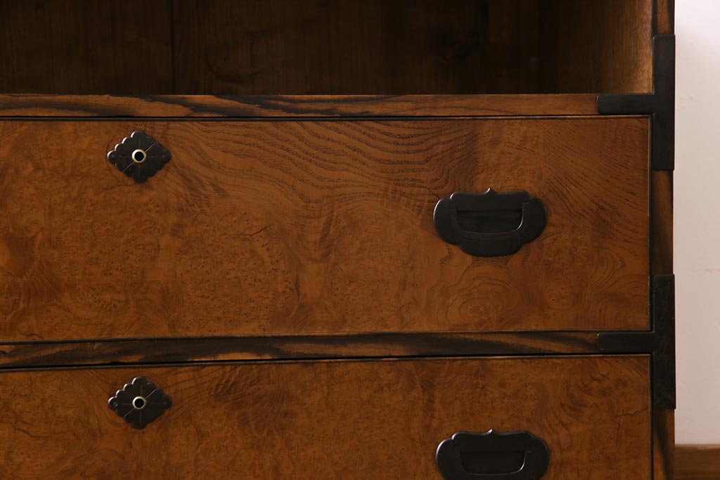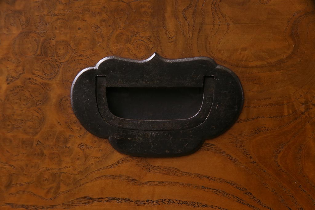 アンティーク家具 和製アンティーク 前面栗材鳥眼杢 リメイク 黒柿の縁が魅力的なサイドチェスト(サイドボード、収納棚、引き出し)
