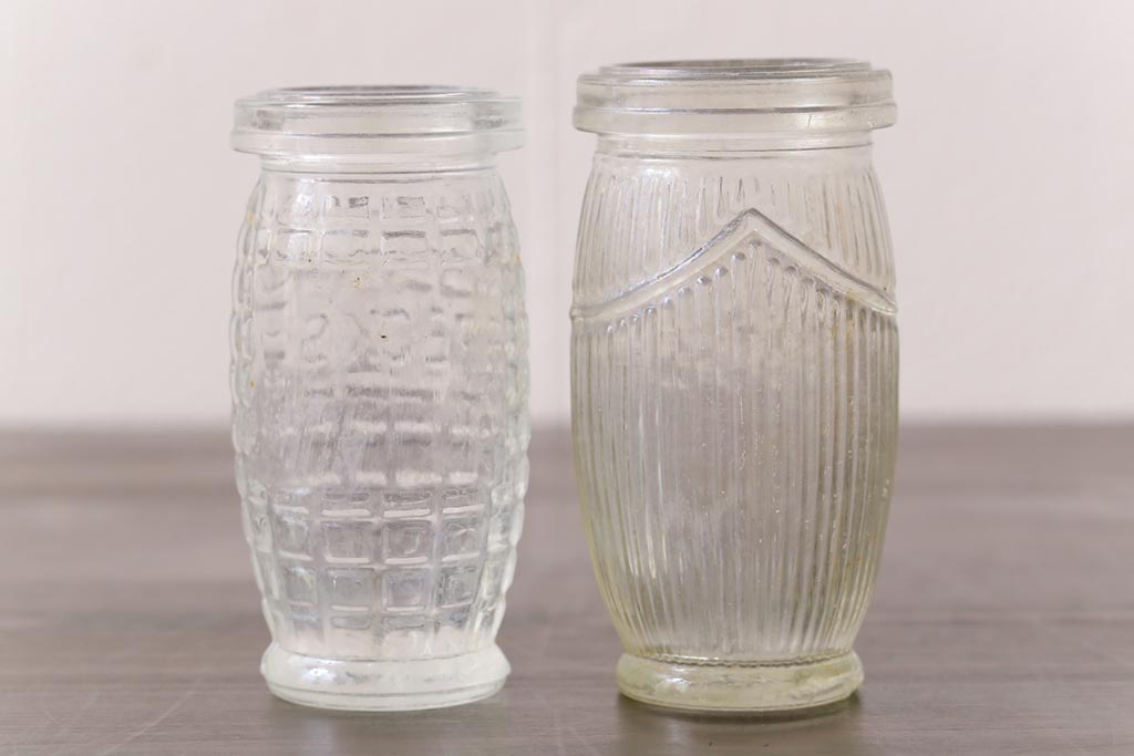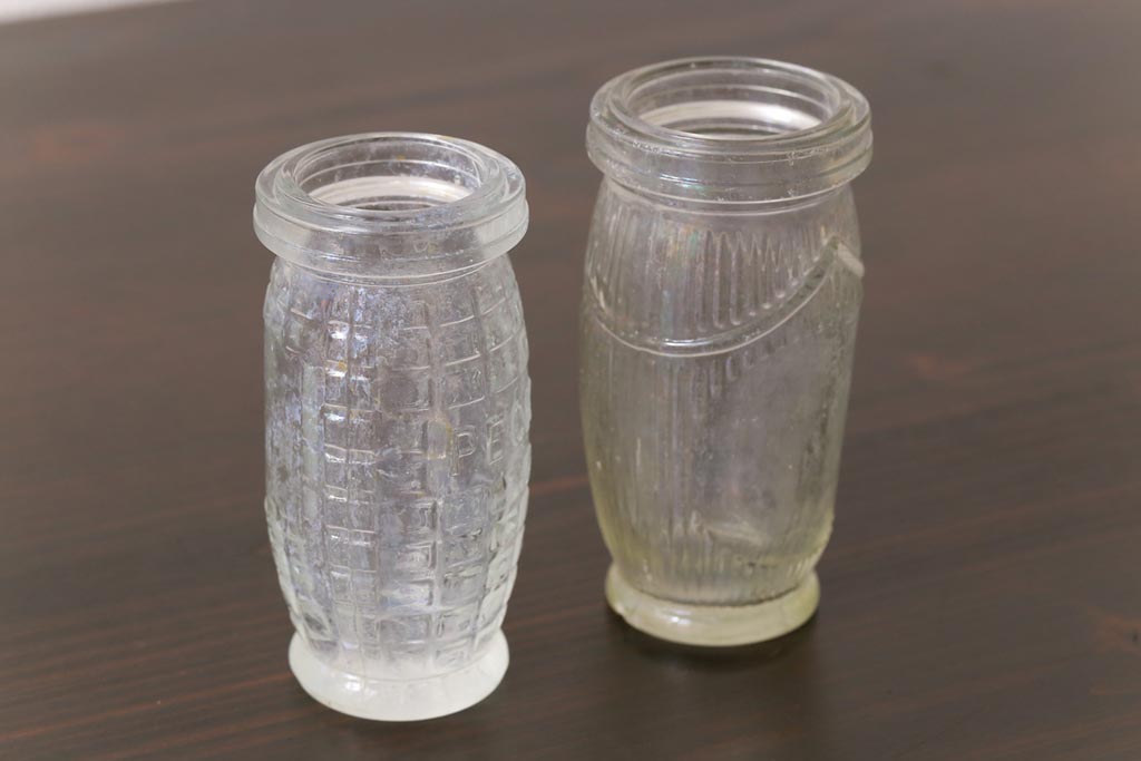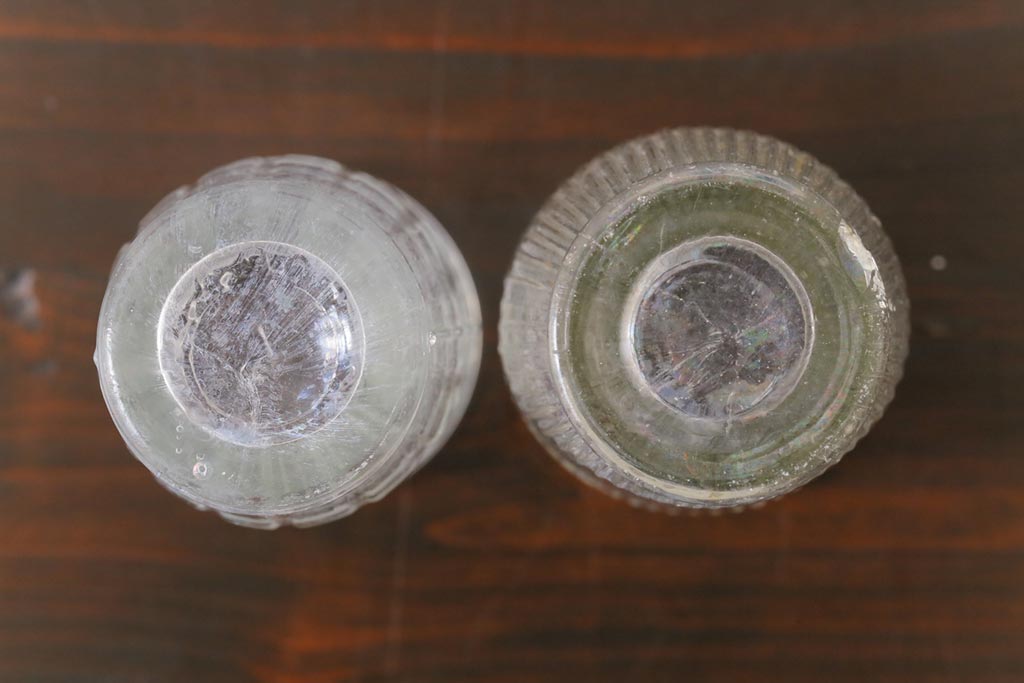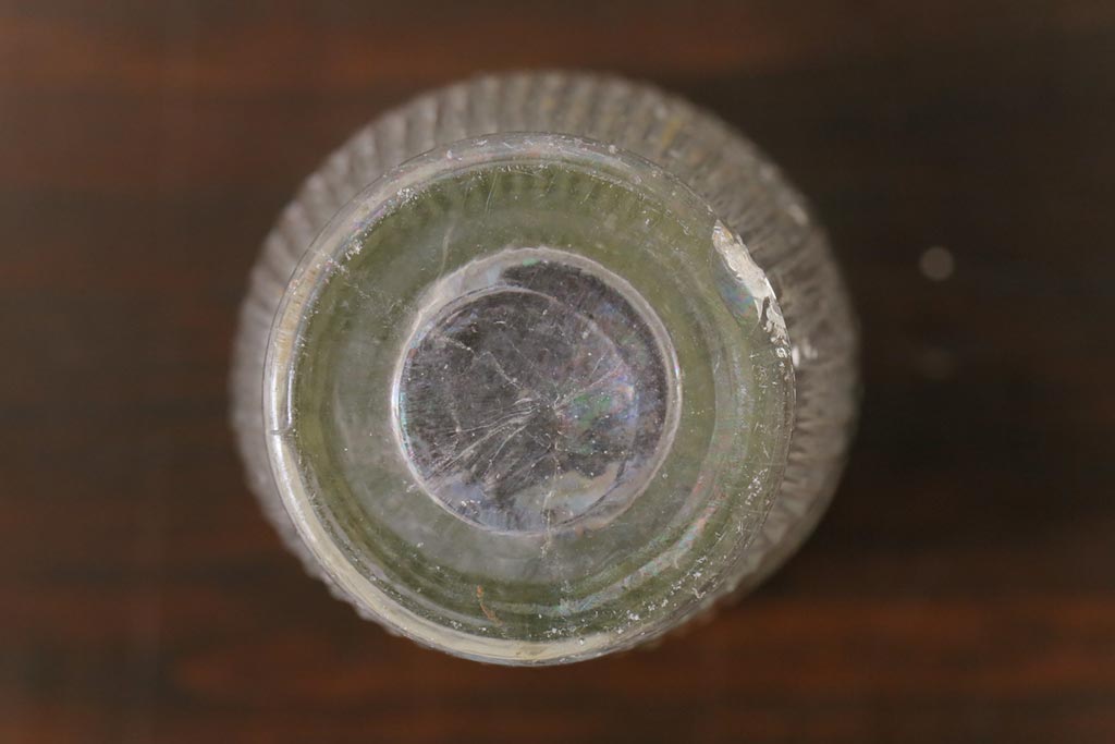 アンティーク雑貨 イギリスビンテージ 凹凸のあるデザインが可愛らしいエンボス入り小瓶(ガラスビン、ミニボトル)2個セット
