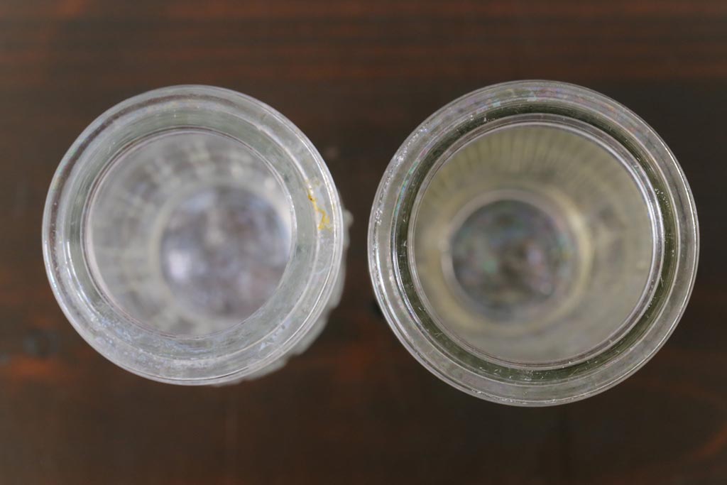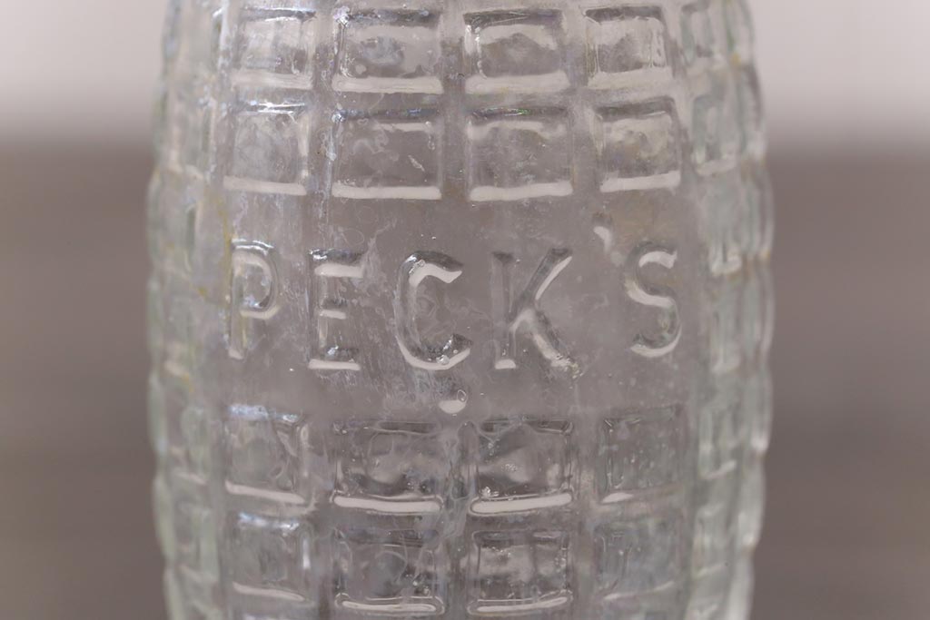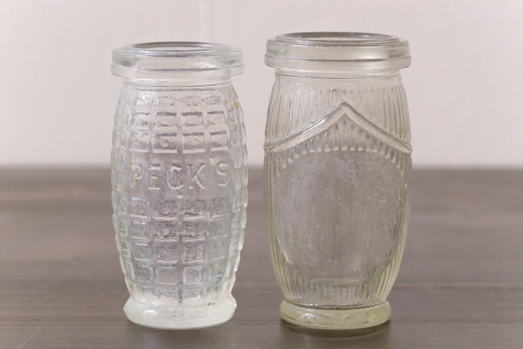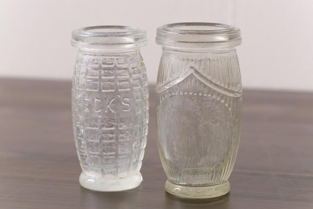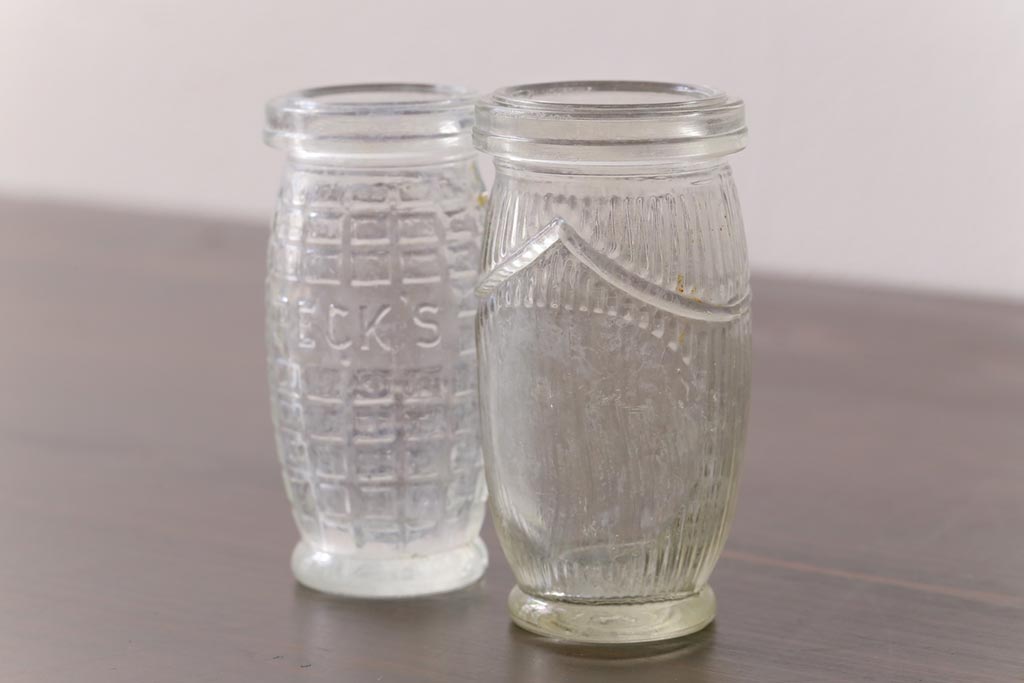 アンティーク雑貨 イギリスビンテージ 凹凸のあるデザインが可愛らしいエンボス入り小瓶(ガラスビン、ミニボトル)2個セット
