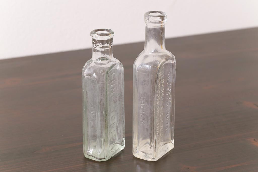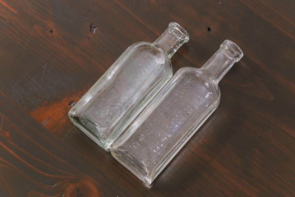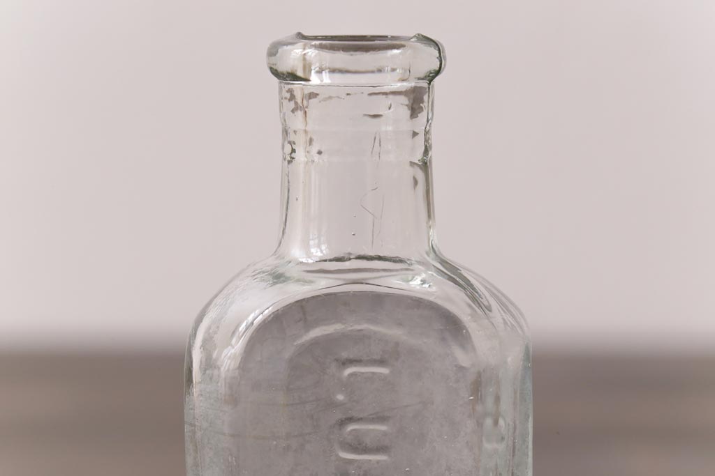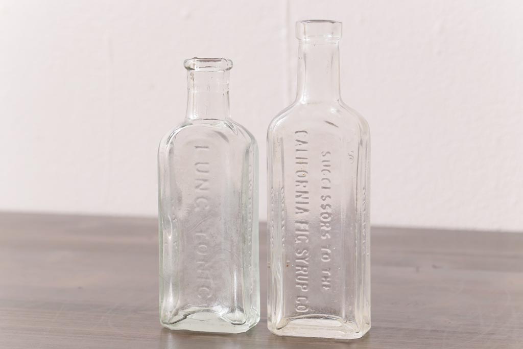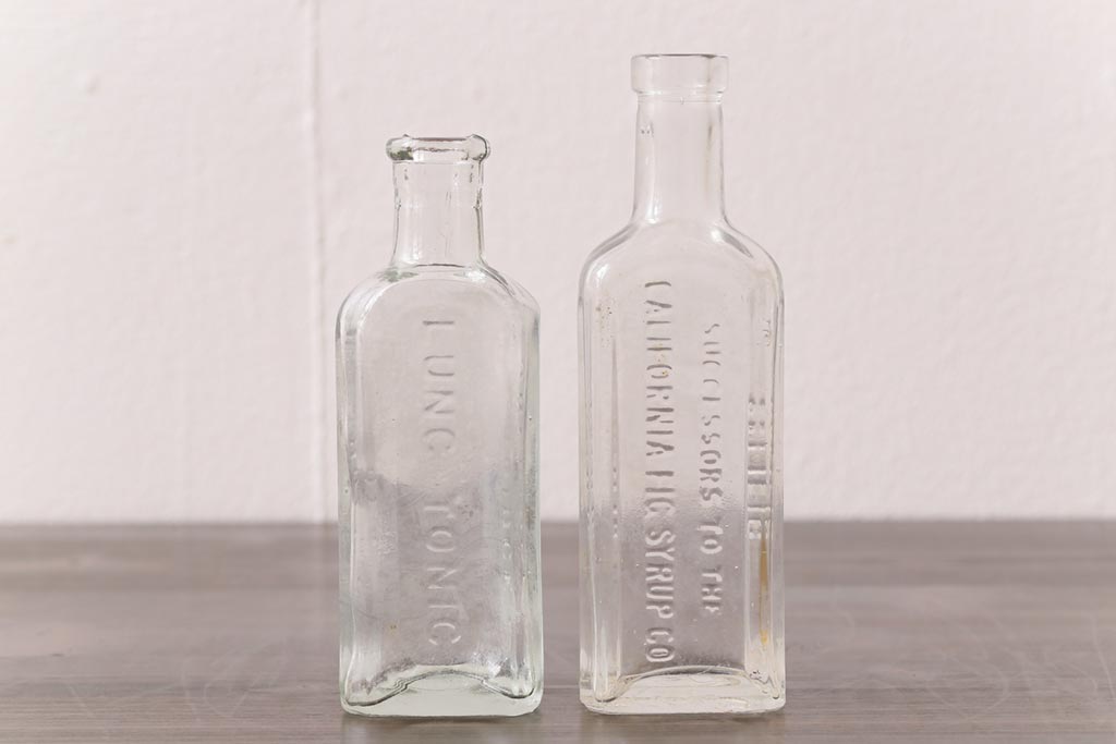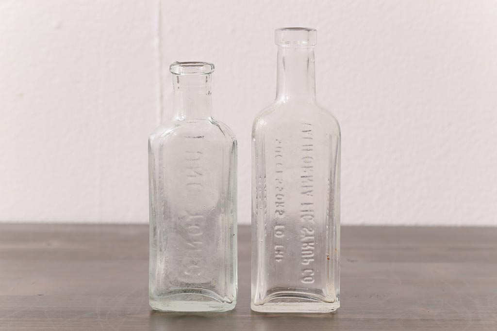 アンティーク雑貨 アメリカビンテージ シャビーな空間におすすめのエンボス入りガラスビン(ボトル、硝子瓶)