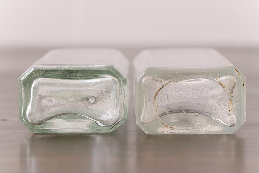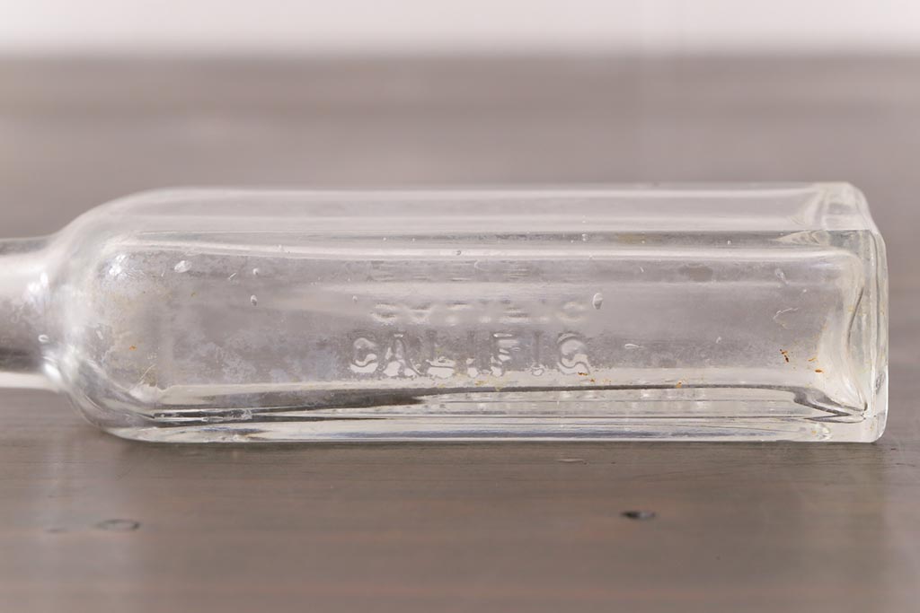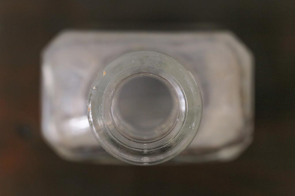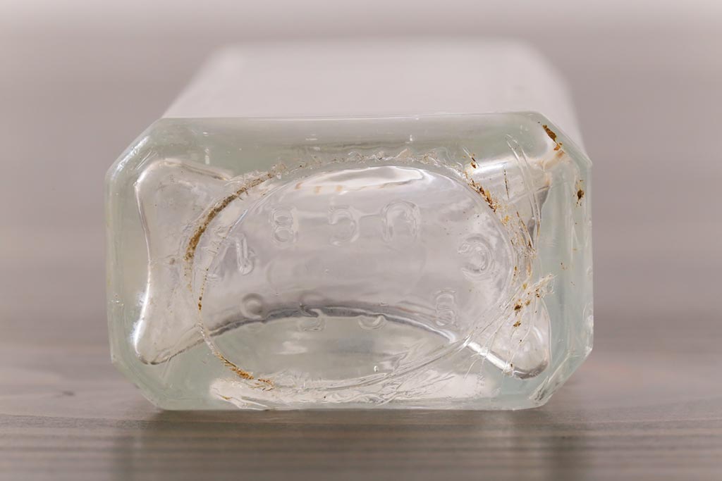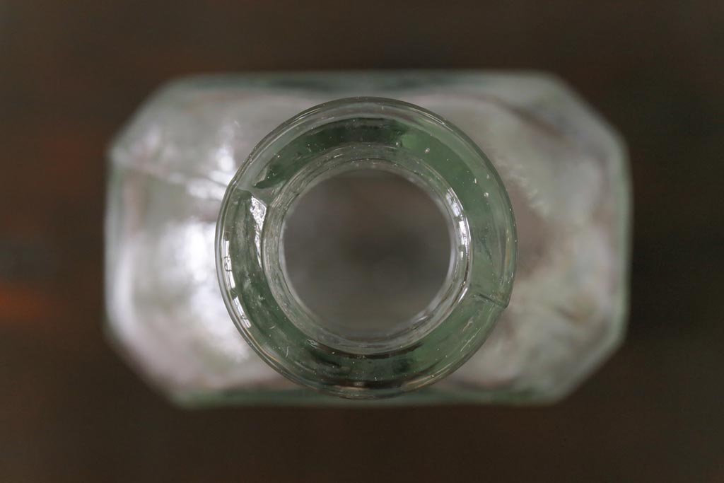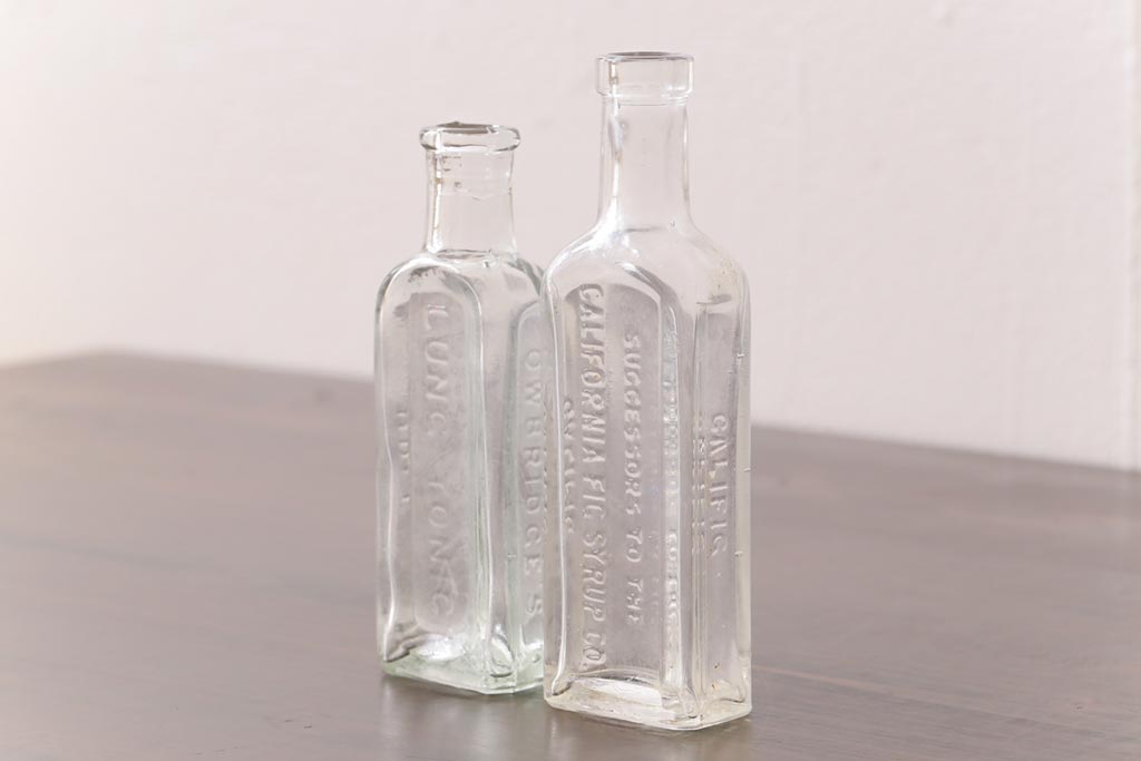 アンティーク雑貨 アメリカビンテージ シャビーな空間におすすめのエンボス入りガラスビン(ボトル、硝子瓶)
