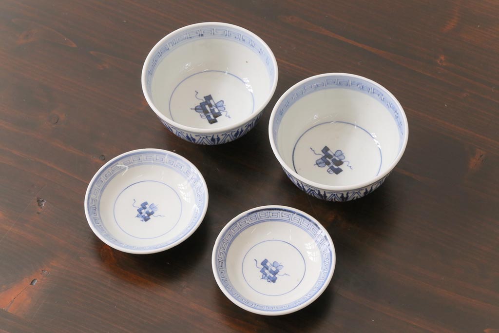 ラフジュ工房> 和食器・茶道具> お椀・茶碗 > 古民具・骨董 幕末明治期 味のある絵柄のアンティーク蓋付茶碗2客セット(和食器)(3)