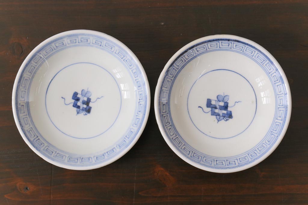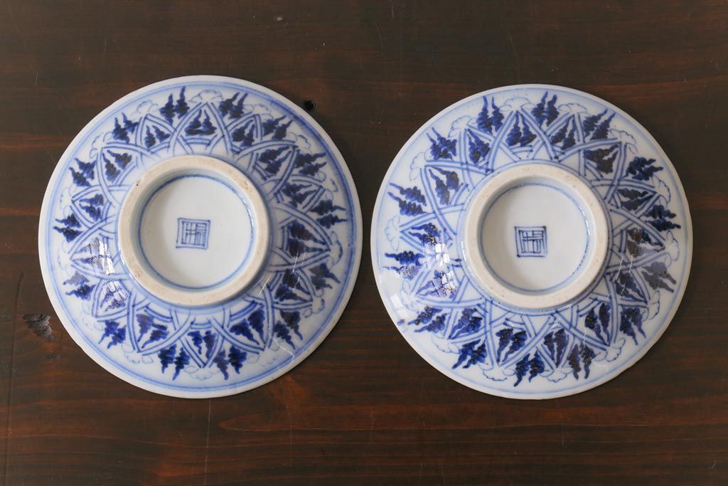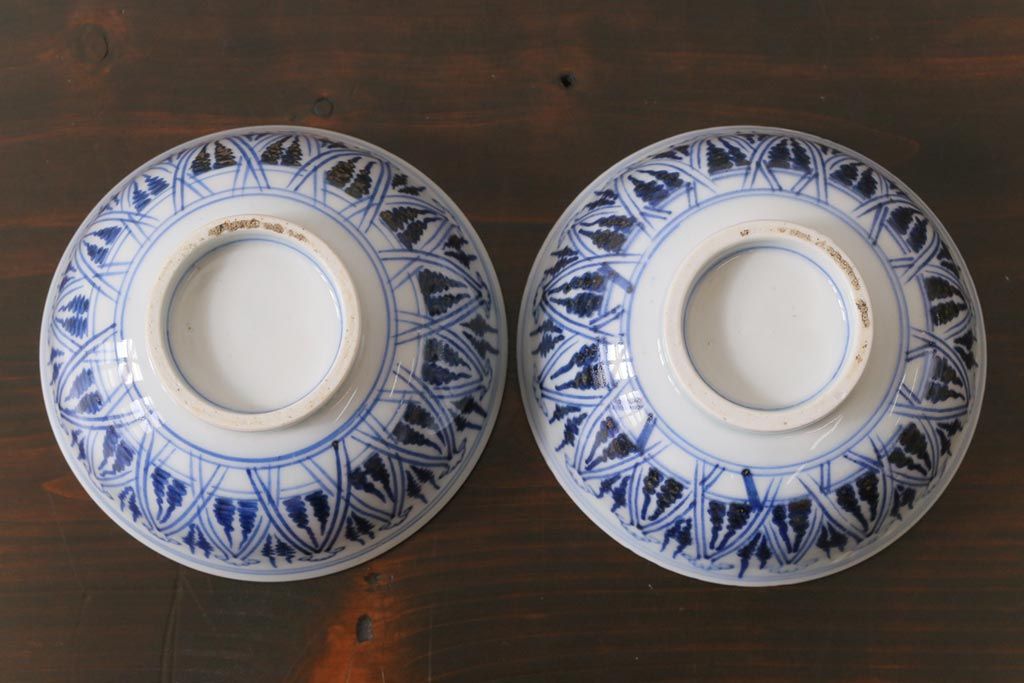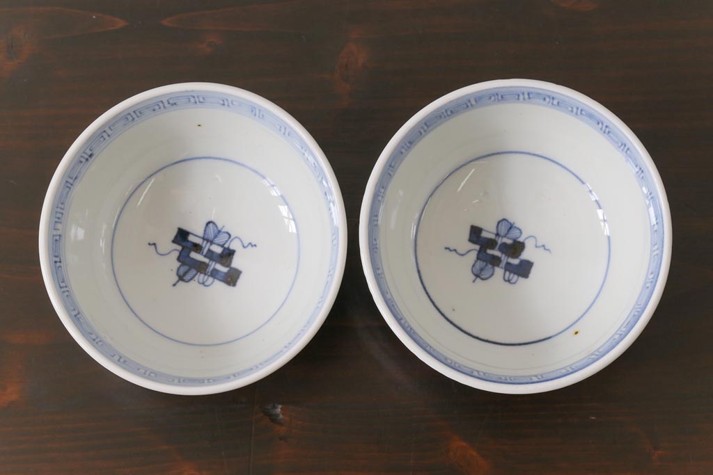 ラフジュ工房> 和食器・茶道具 > 古民具・骨董 幕末明治期 味のある絵柄のアンティーク蓋付茶碗2客セット(和食器)(3)