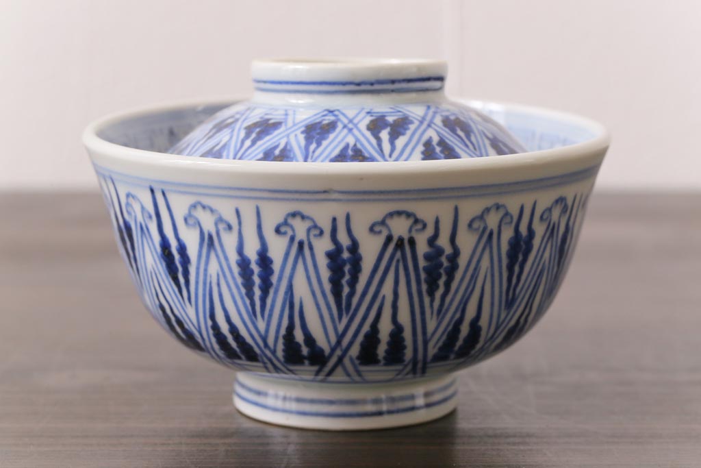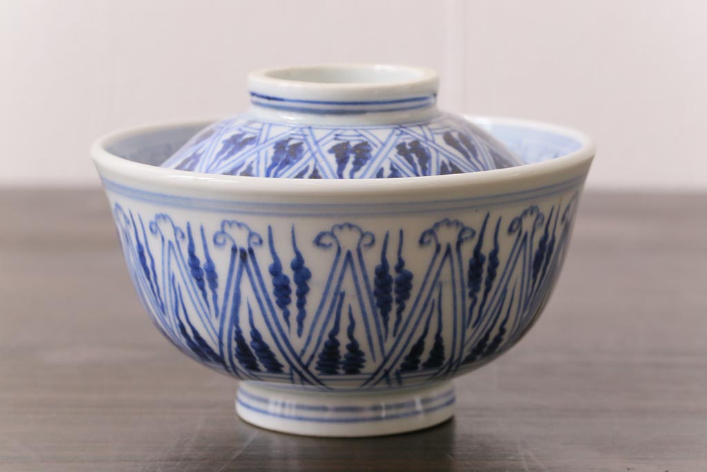 ラフジュ工房> 骨董・美術品 > 古民具・骨董 幕末明治期 味のある絵柄のアンティーク蓋付茶碗2客セット(和食器)(3)