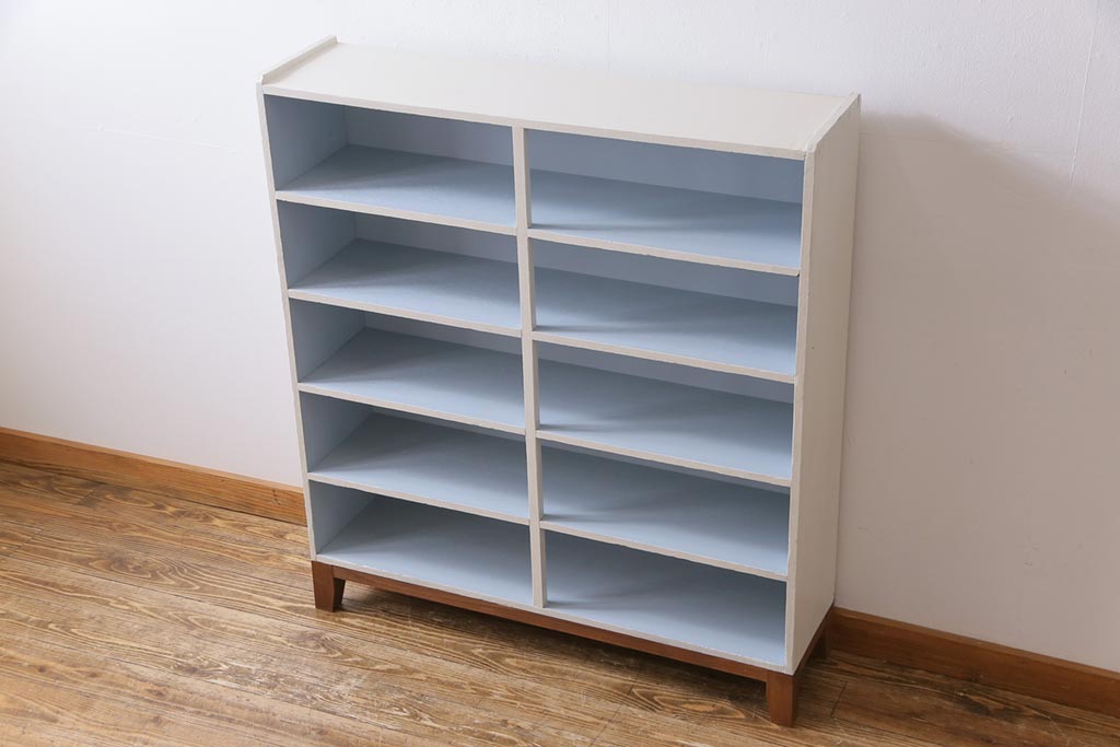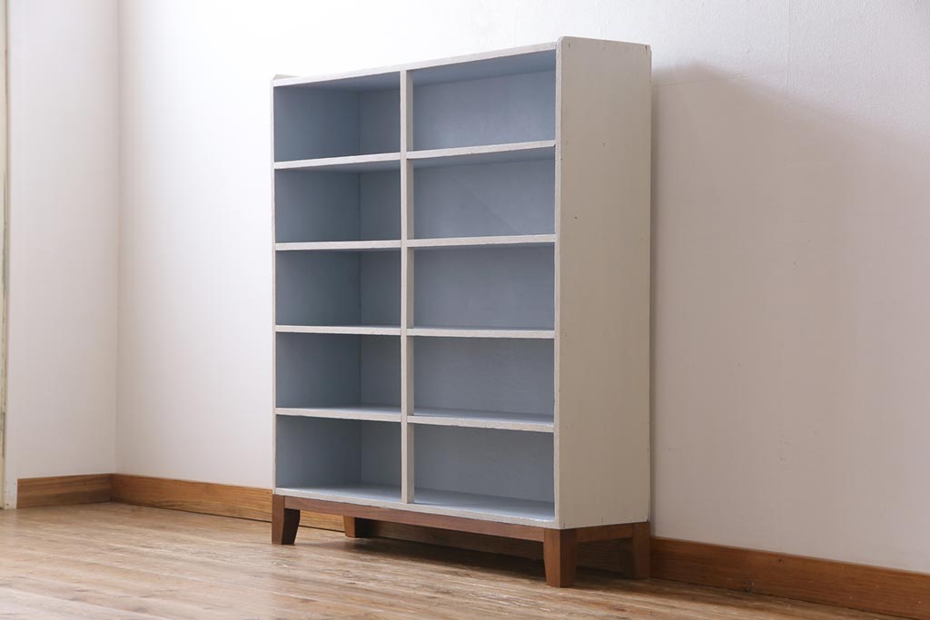 ラフジュ工房> オープンラック・シェルフ> ディスプレイラック > ペイント家具 5段 爽やかなバイカラーの薄型オープンラック(飾り棚、収納棚)