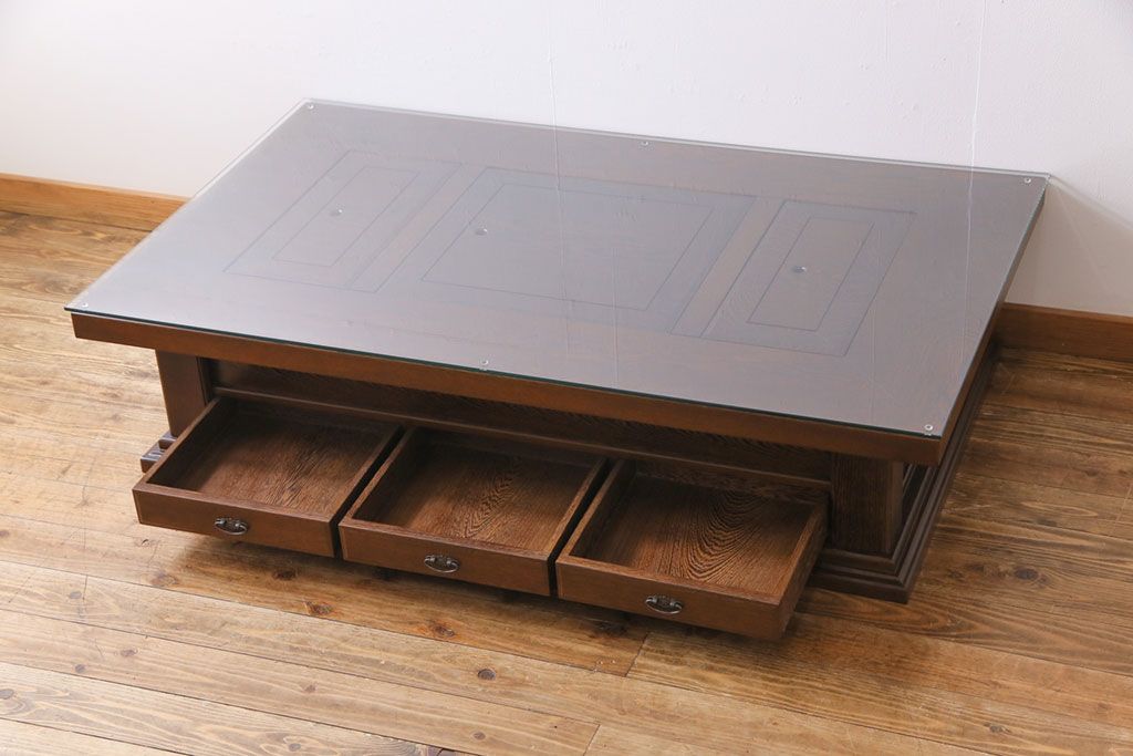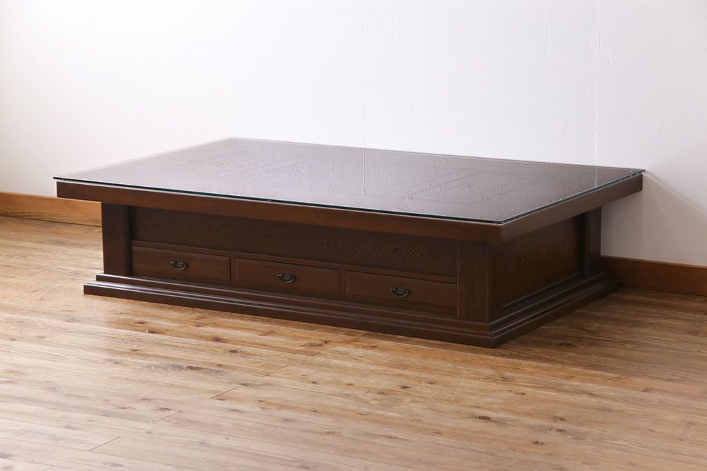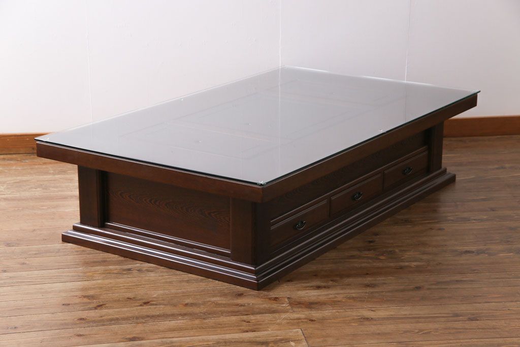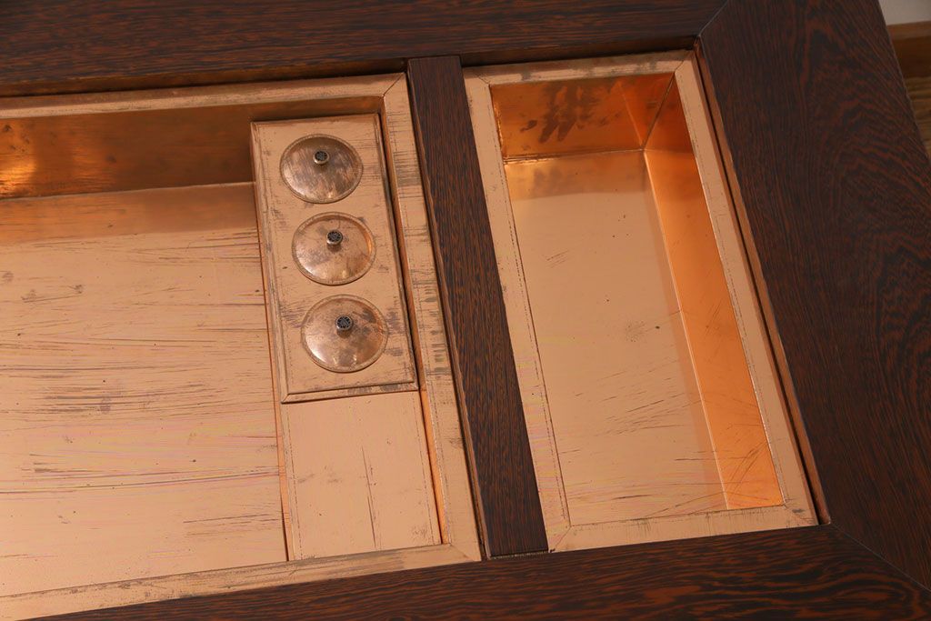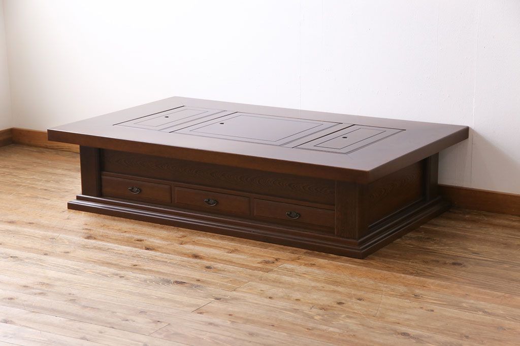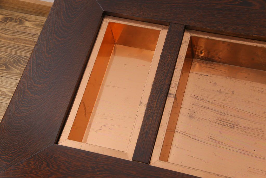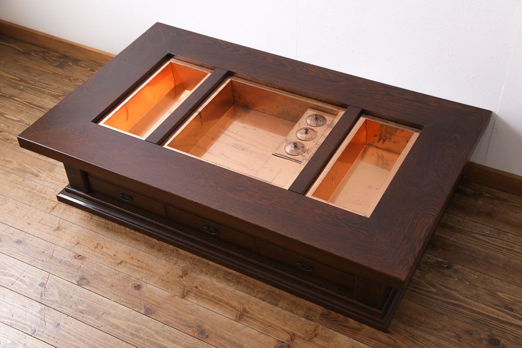 ラフジュ工房> テーブル> センターテーブル・ローテーブル > アンティーク雑貨 最高級品 特大! 鉄刀木(タガヤサン)無垢材を贅沢に使用した関西長火鉢のローテーブル(長火鉢、囲炉裏、座卓、リビングテーブル)