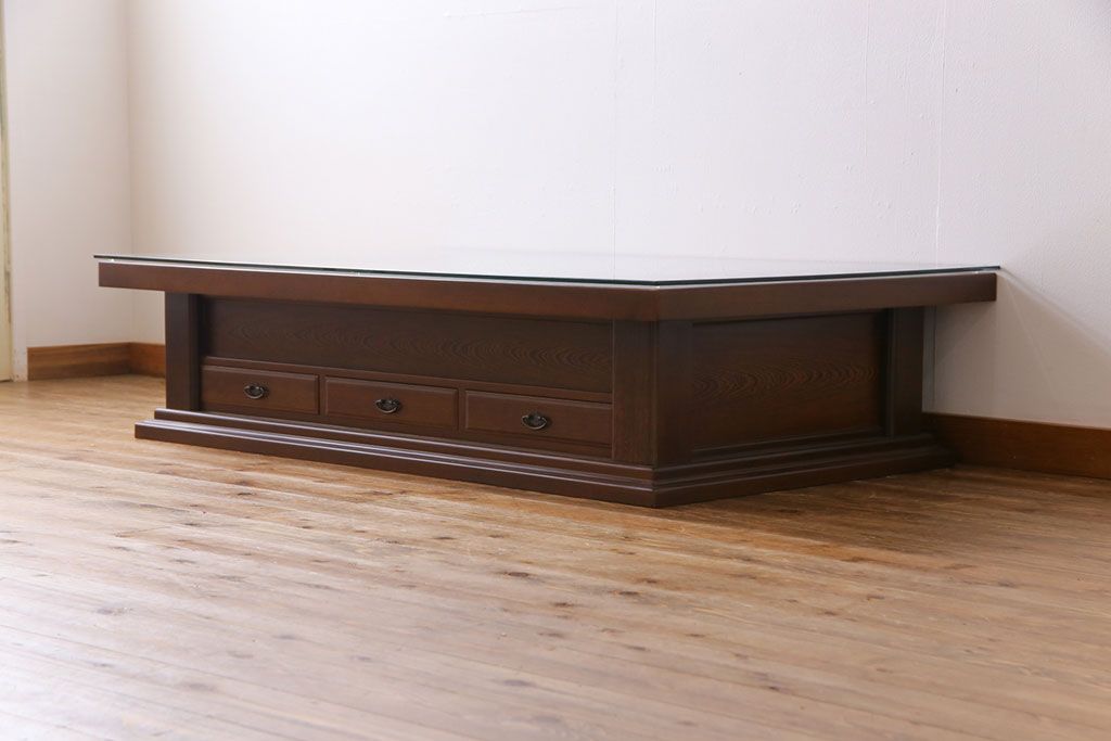 ラフジュ工房> 火鉢> 長火鉢 > アンティーク雑貨 最高級品 特大! 鉄刀木(タガヤサン)無垢材を贅沢に使用した関西長火鉢のローテーブル(長火鉢、囲炉裏、座卓、リビングテーブル)