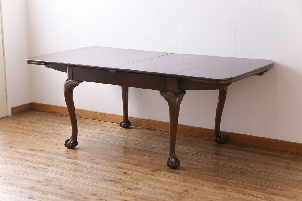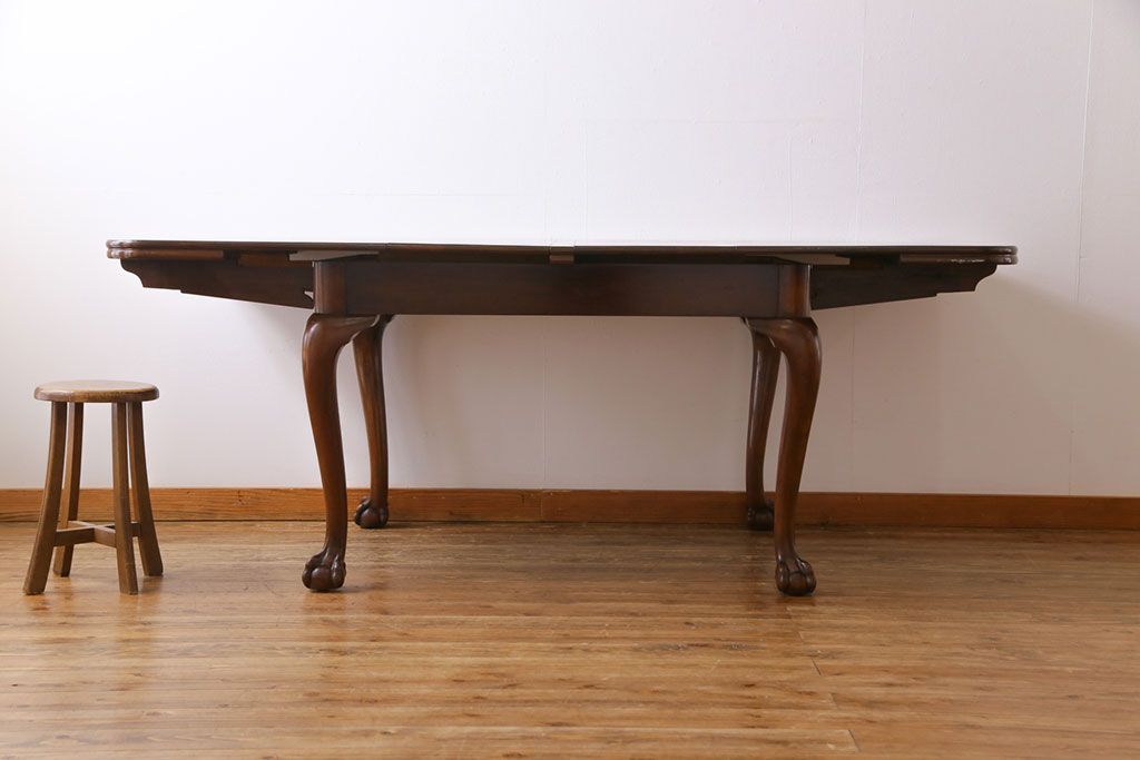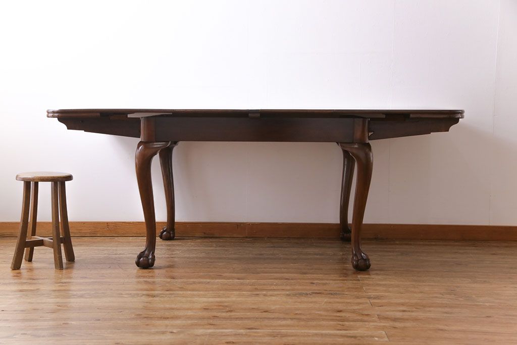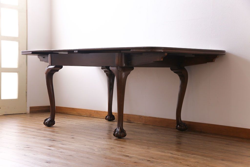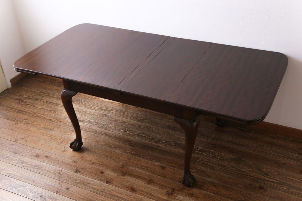 ラフジュ工房> テーブル> 6人用ダイニングテーブル > アンティーク家具 イギリスアンティーク バーチ(樺)材 シンプルで上品なデザインのエクステンションテーブル(ダイニングテーブル、ドローリーフテーブル)