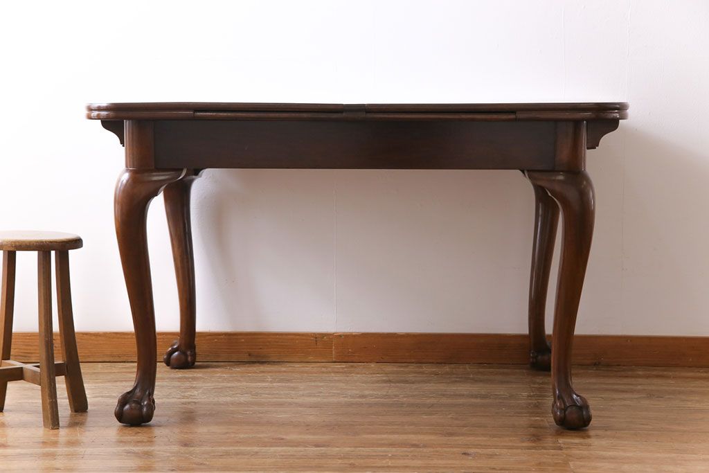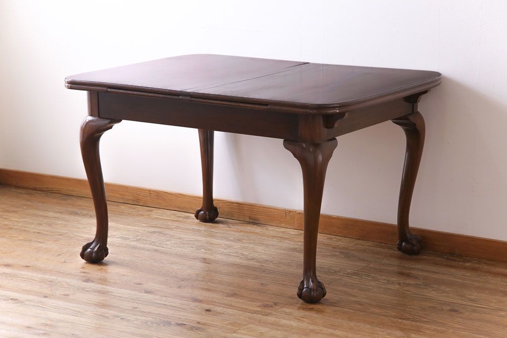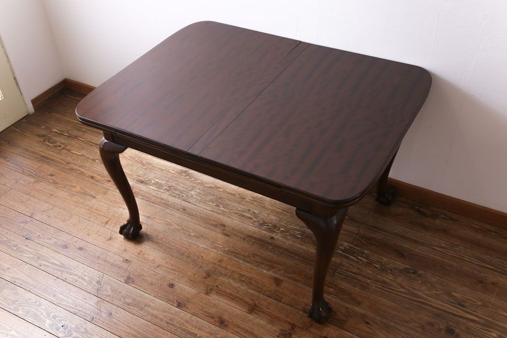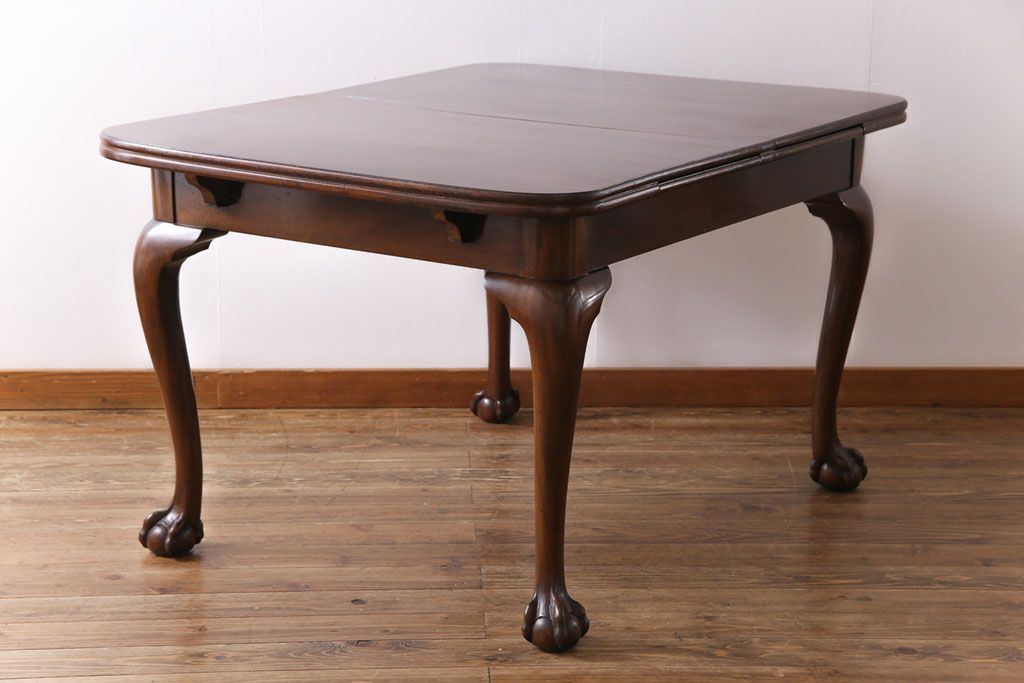 ラフジュ工房> テーブル> 4人用ダイニングテーブル > アンティーク家具 イギリスアンティーク バーチ(樺)材 シンプルで上品なデザインのエクステンションテーブル(ダイニングテーブル、ドローリーフテーブル)